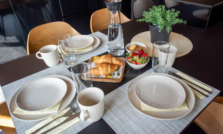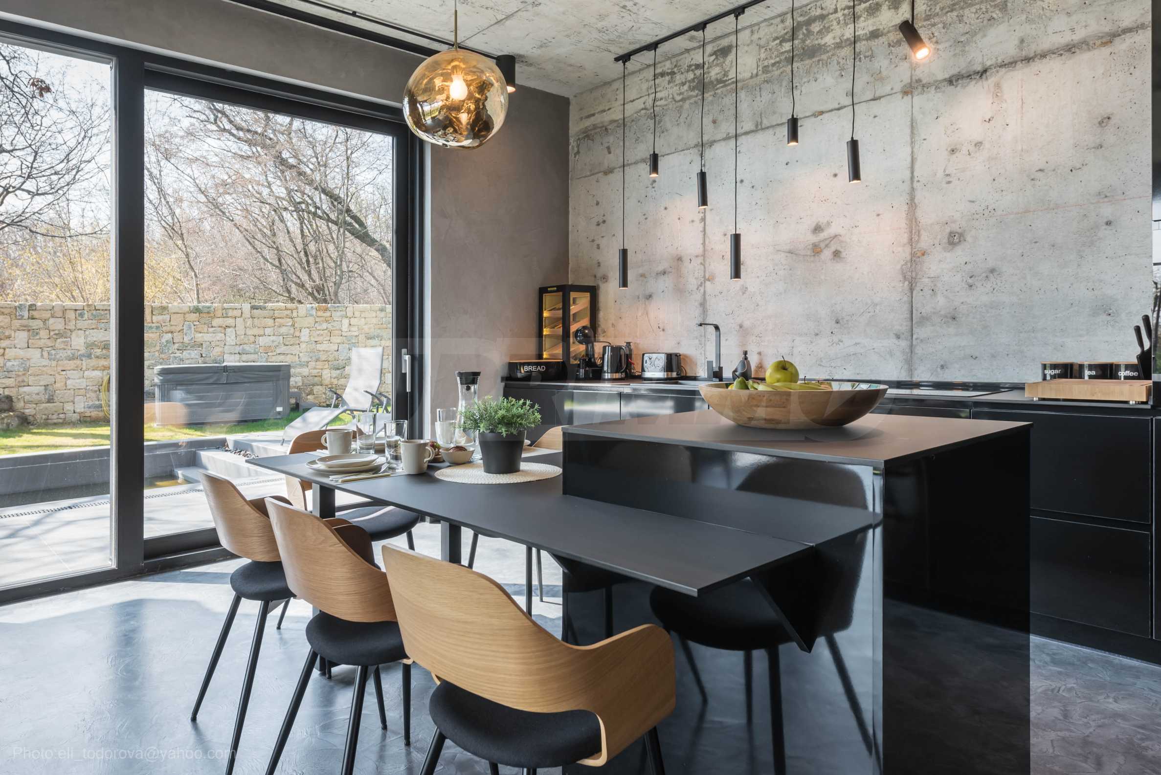 Напълно оборудваната кухня Ви дава възможност сами да приготвите закуската или вечерята си и да им се насладите на масата на двора край басейна.