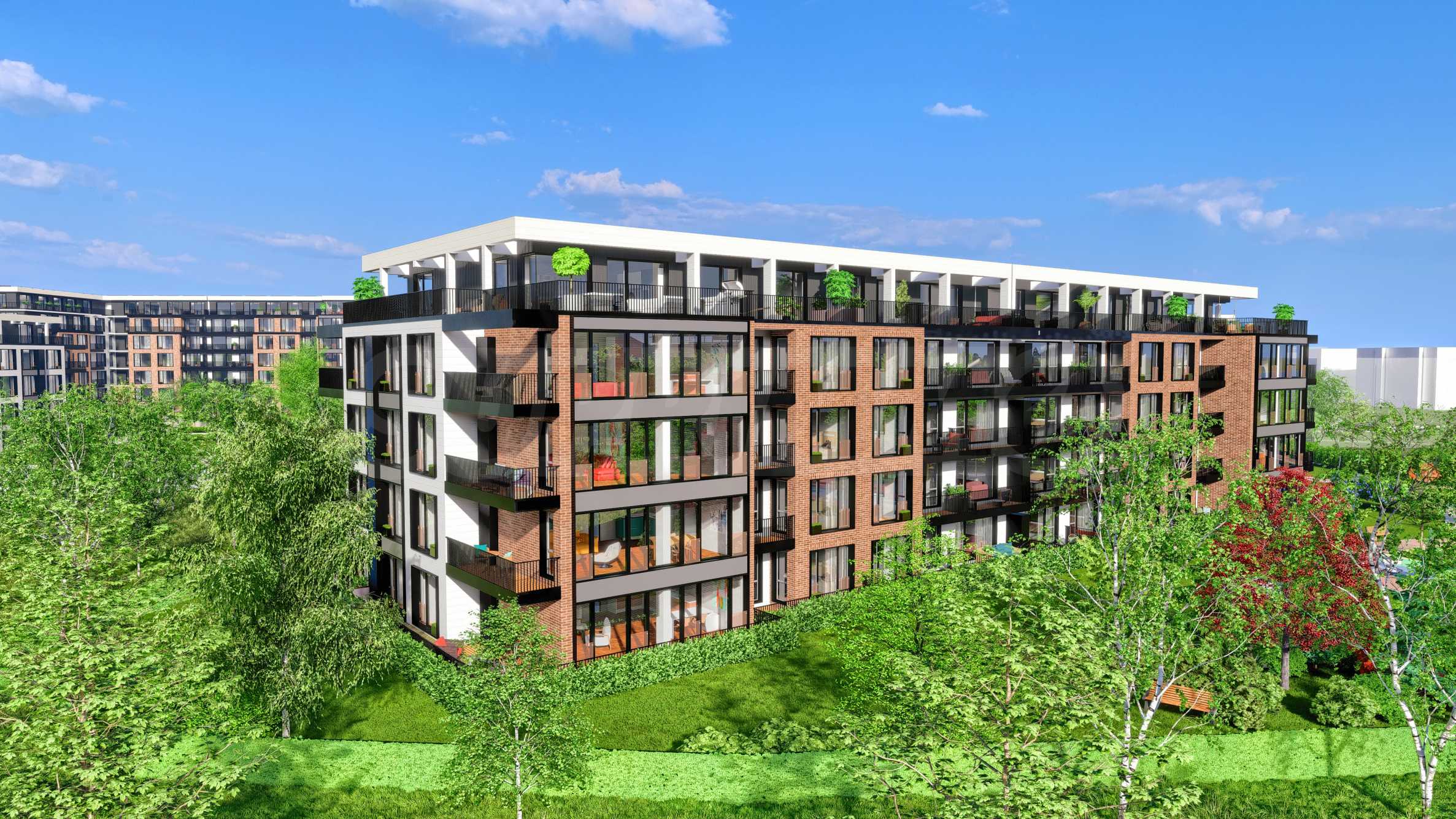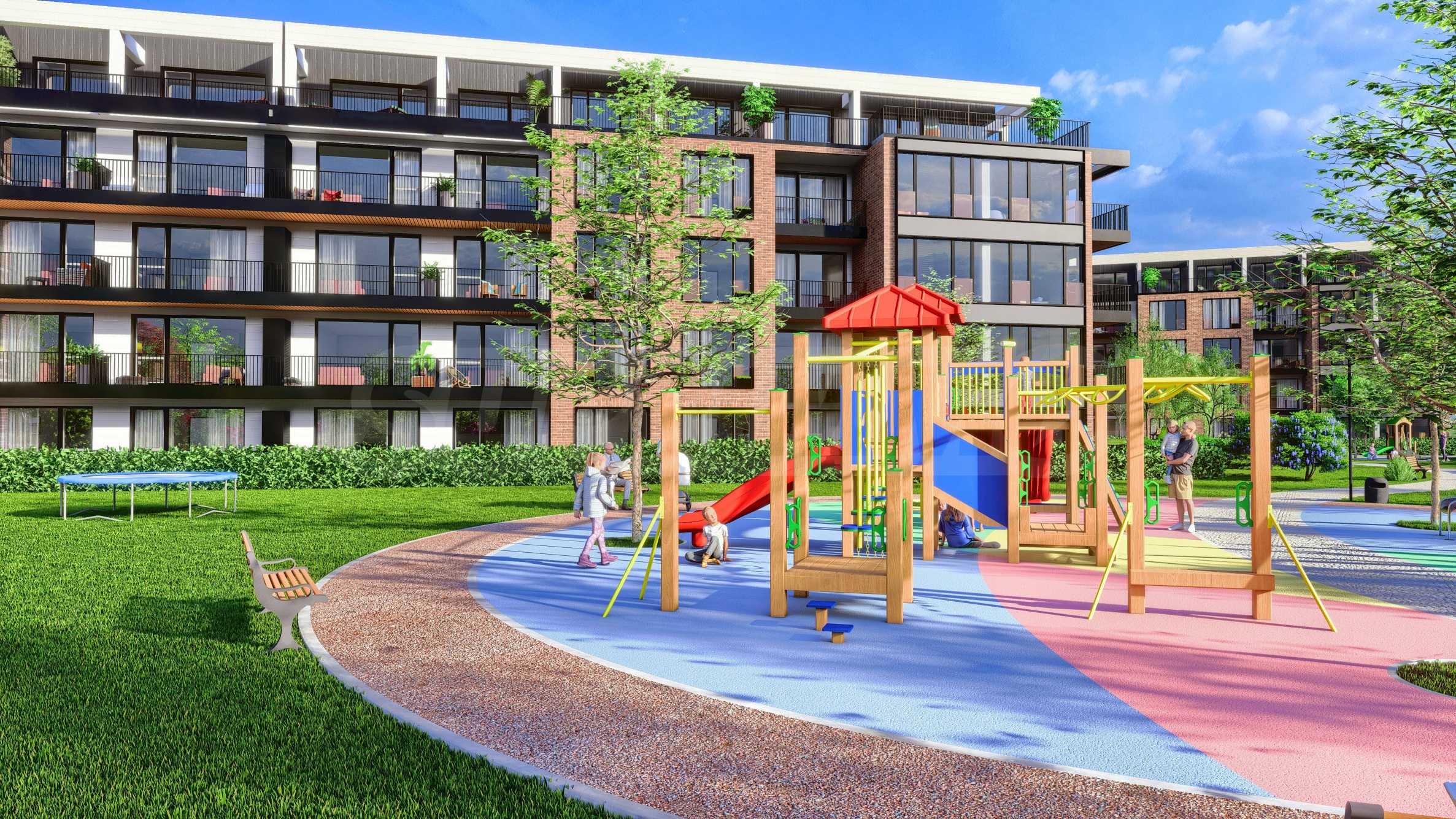 Проектът се състои от 2 сгради и четири жилищни секции - нискоетажно застрояване с кота корниз 10 м. Жилищните секции са типизирани - огледални и повтаряеми. Предлага двустайни, тристайни, четиристайни апартаменти, гаражни клетки и паркоместа, реализирани изцяло в подземен гараж, паркова среда с два детски къта - 5500 кв.м, фитнес на открито и водно огледало.