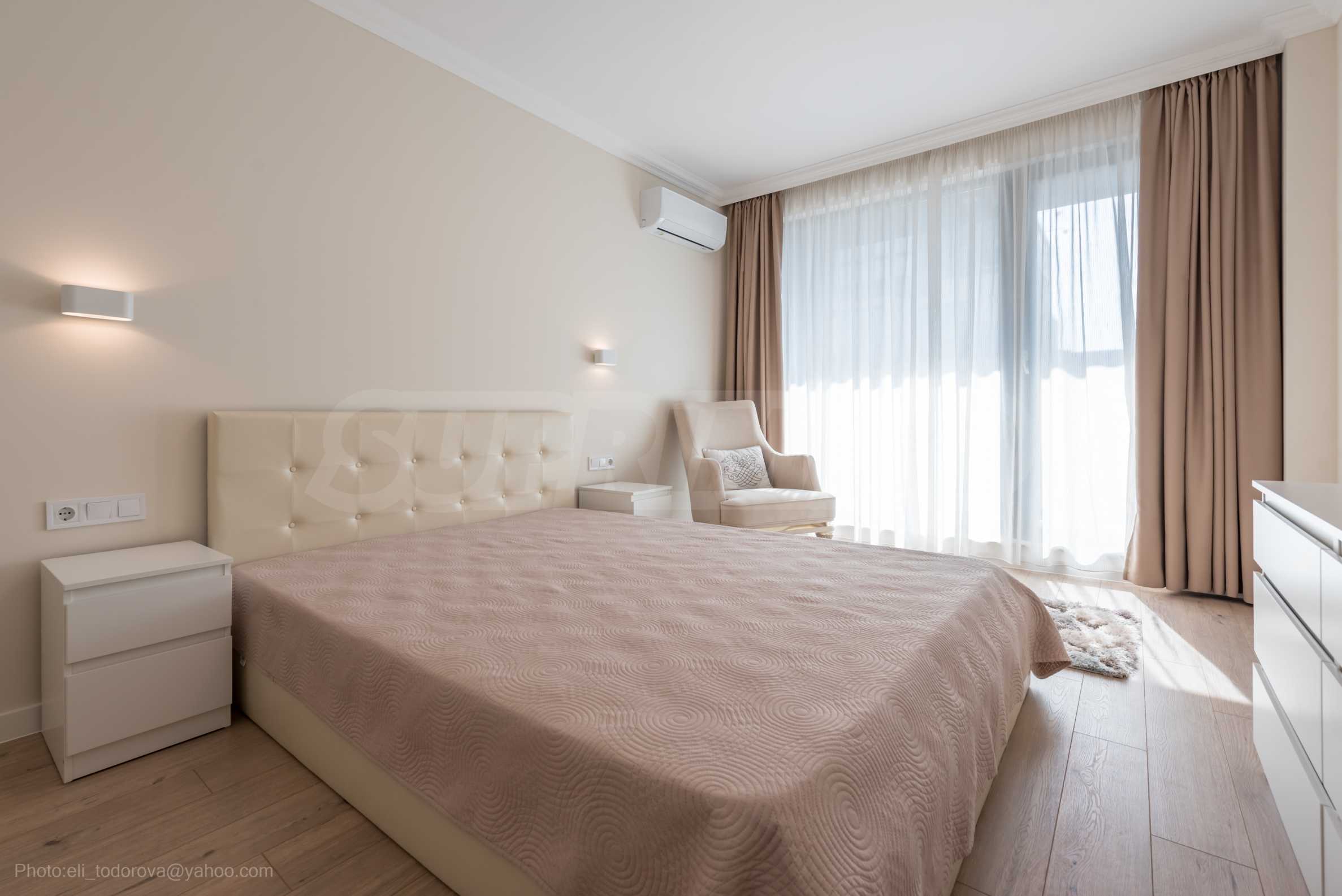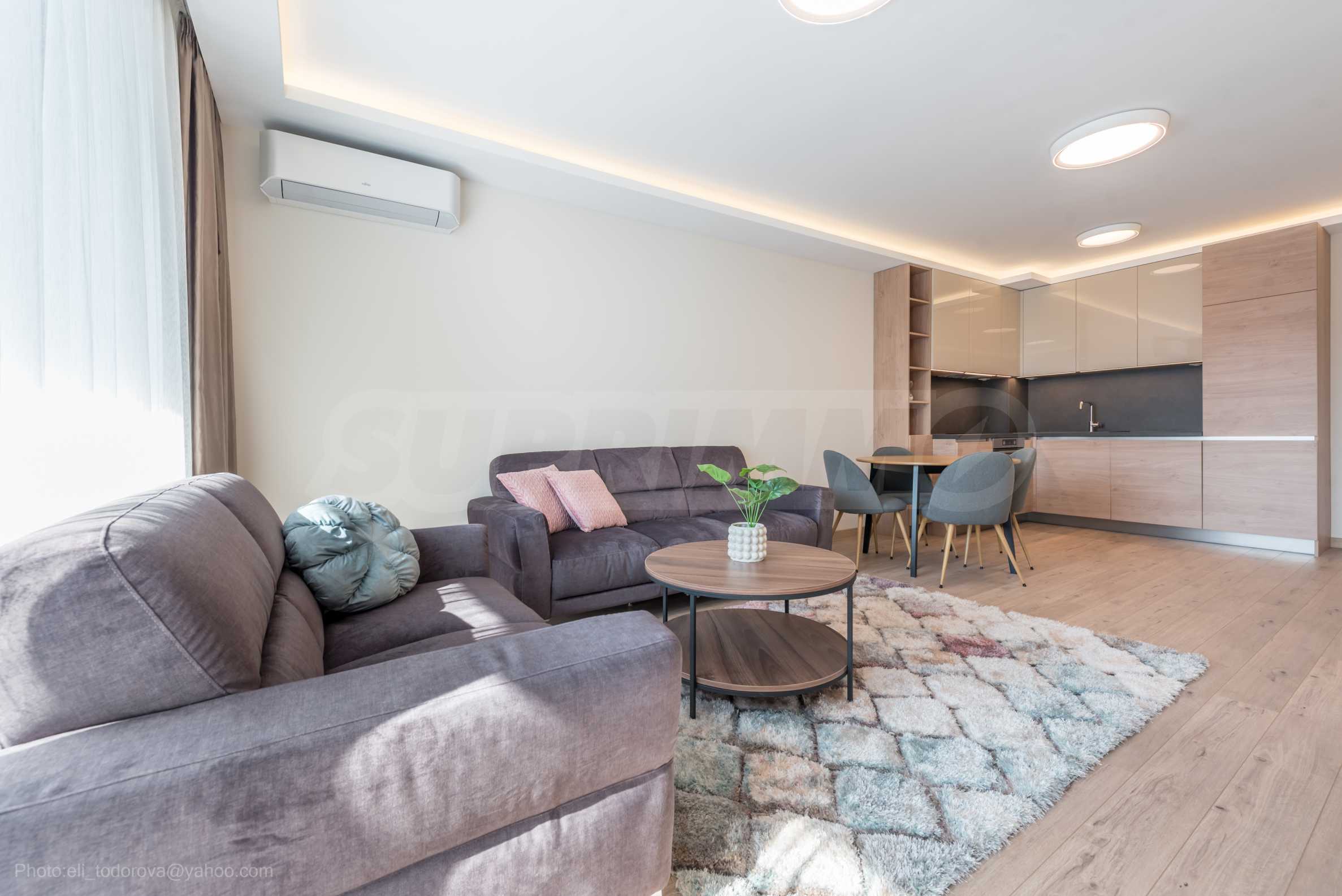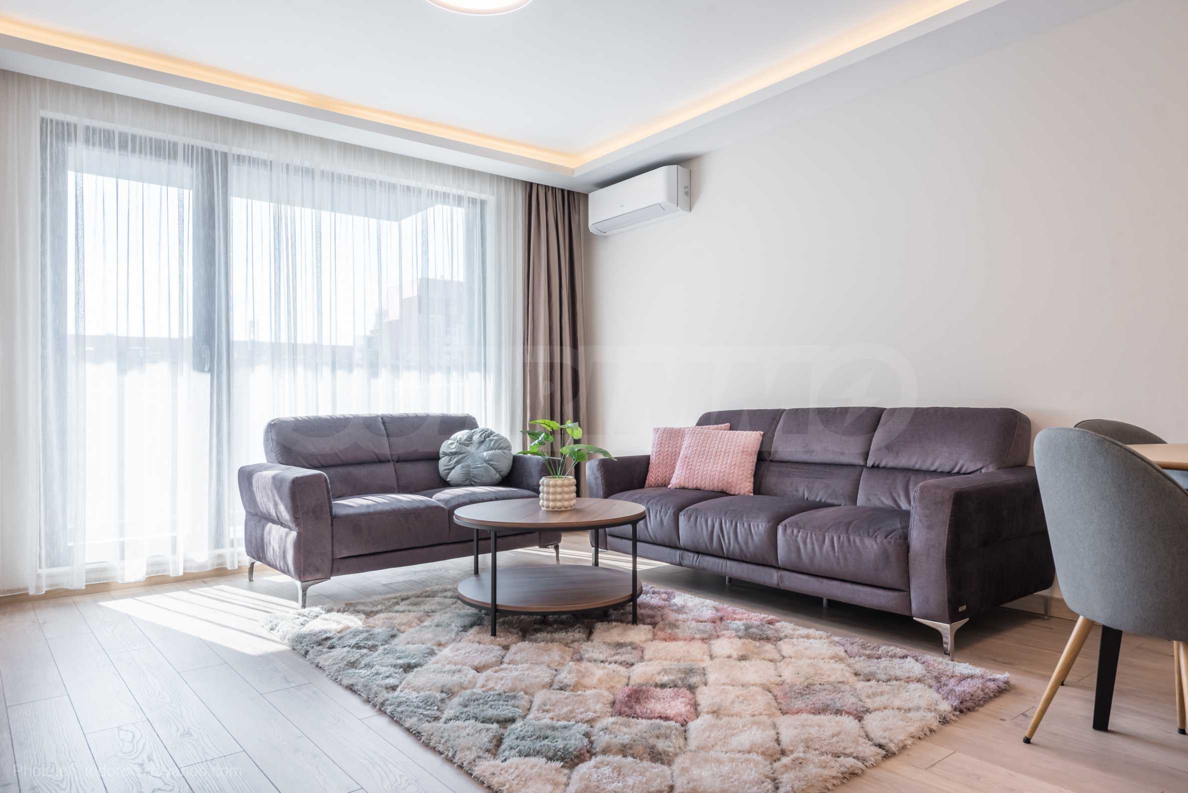 Жилището е качествено и стилно обзаведено, отоплението е с климатици.