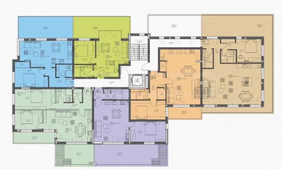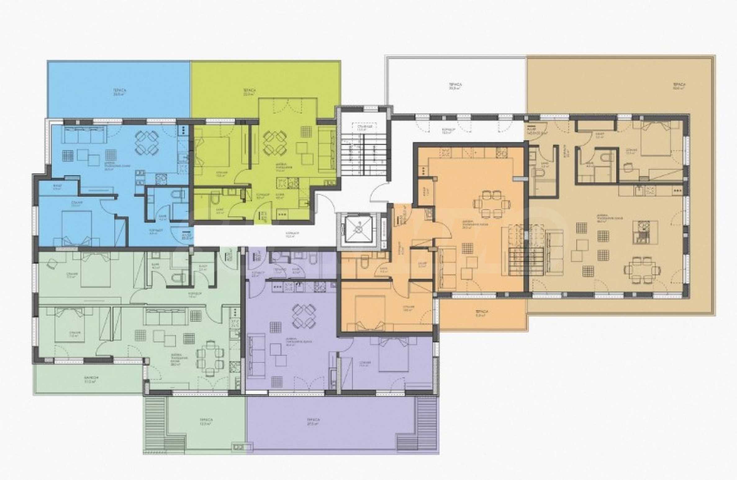 Проектирана е на 8 етажа с различен тип апартаменти: