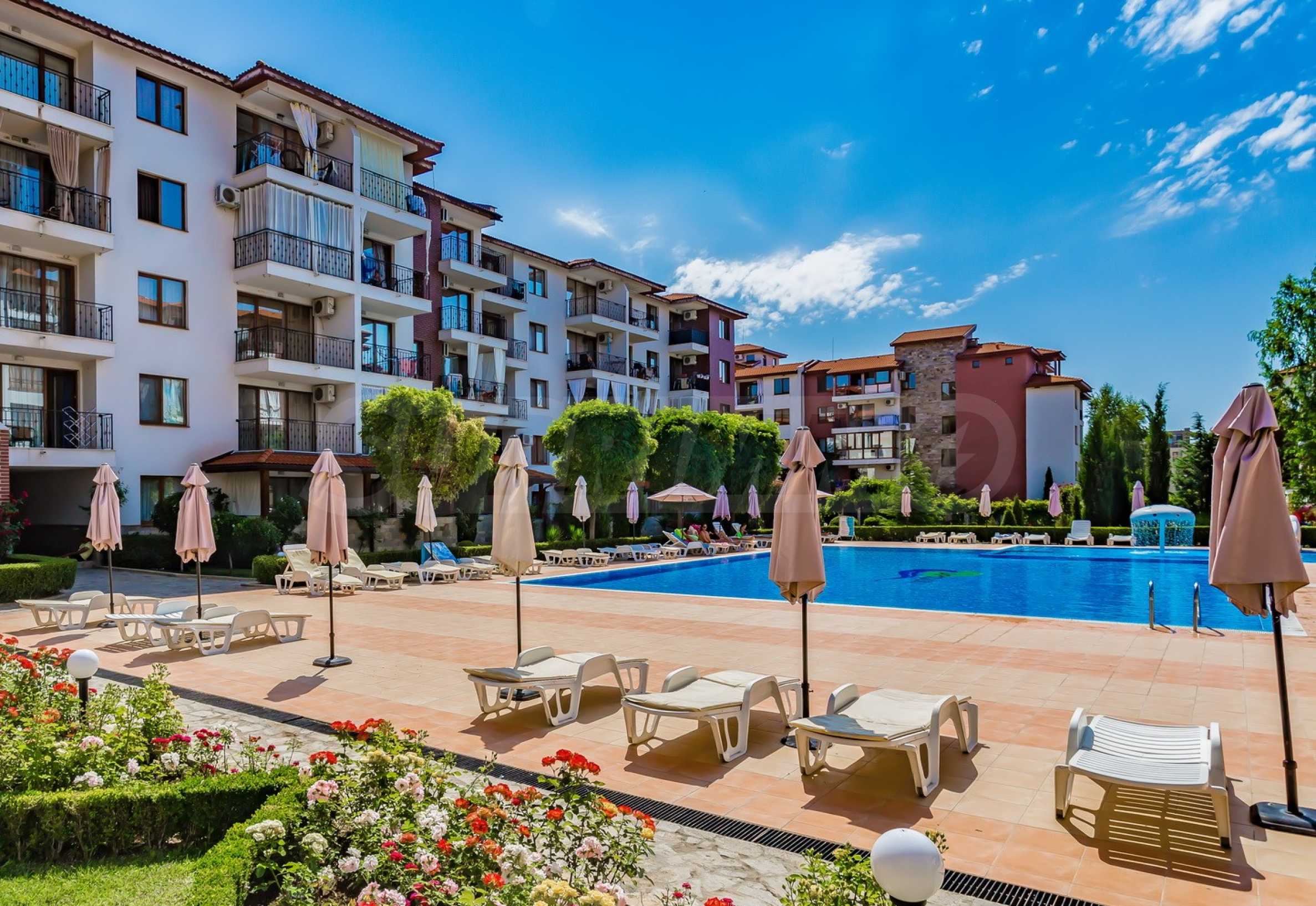 Комплексът се намира в тихата част на курорта, на пешеходно разстояние от цялата необходима инфраструктура и само на 200 метра от морския бряг.