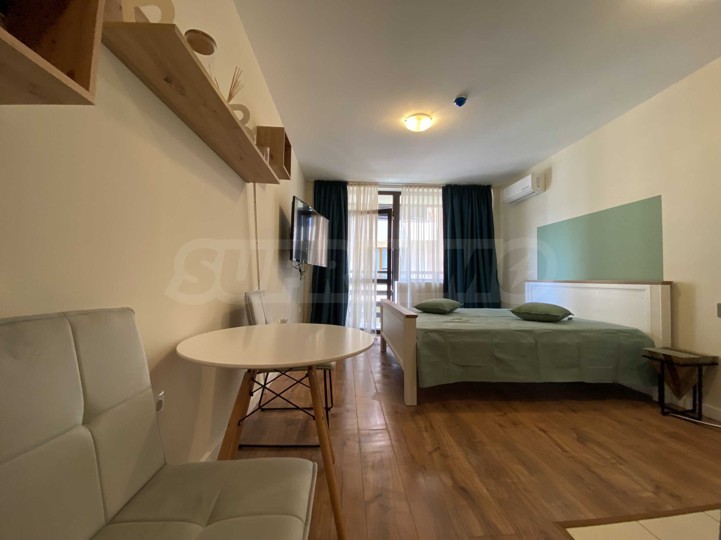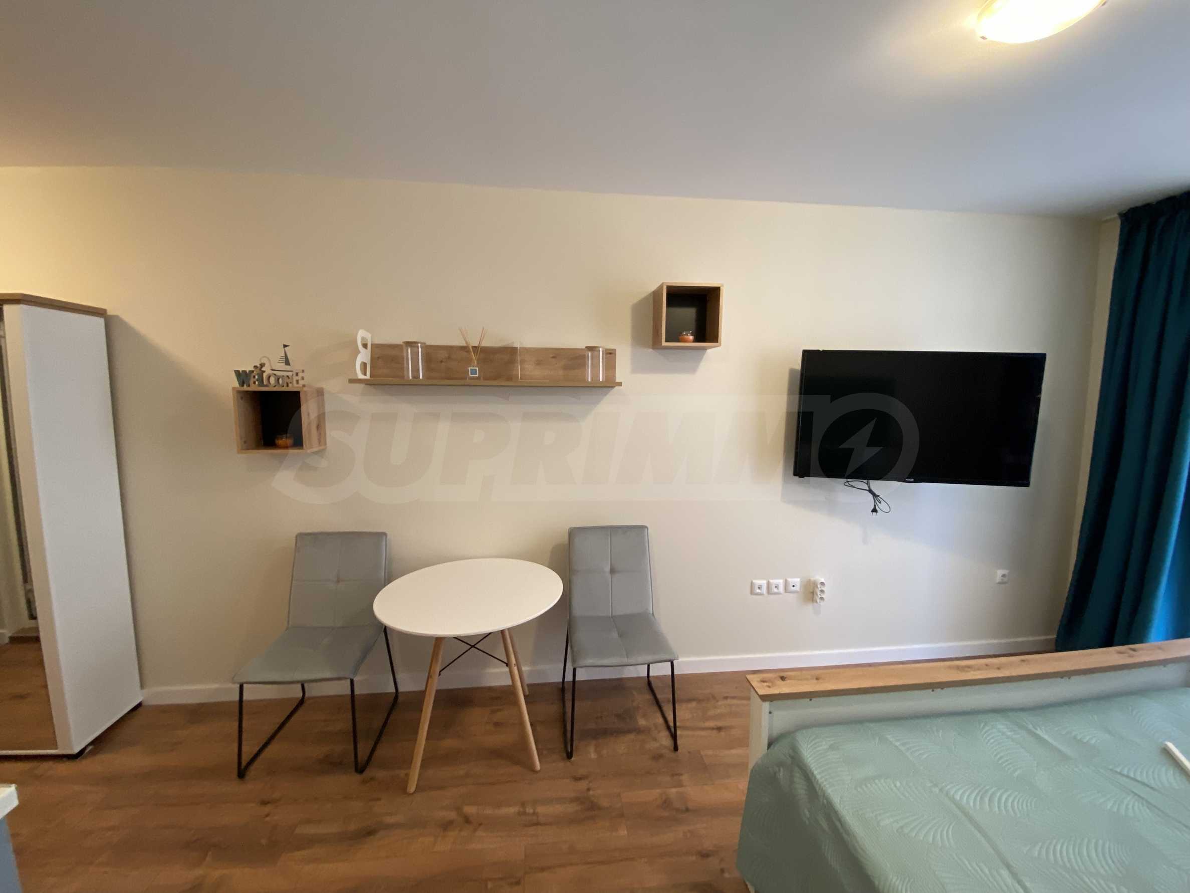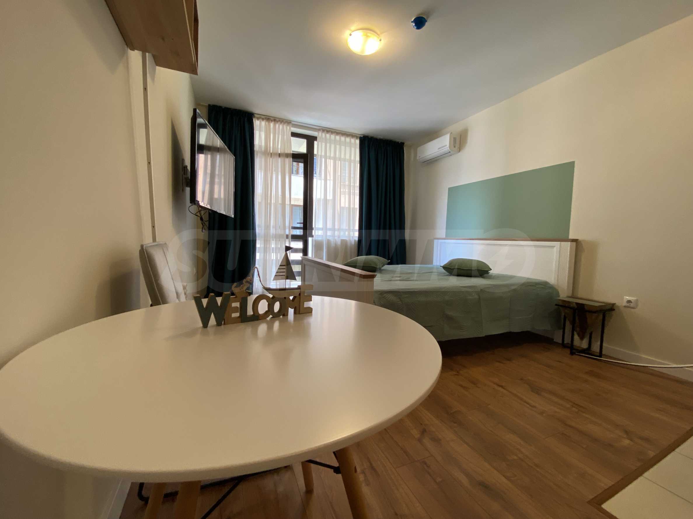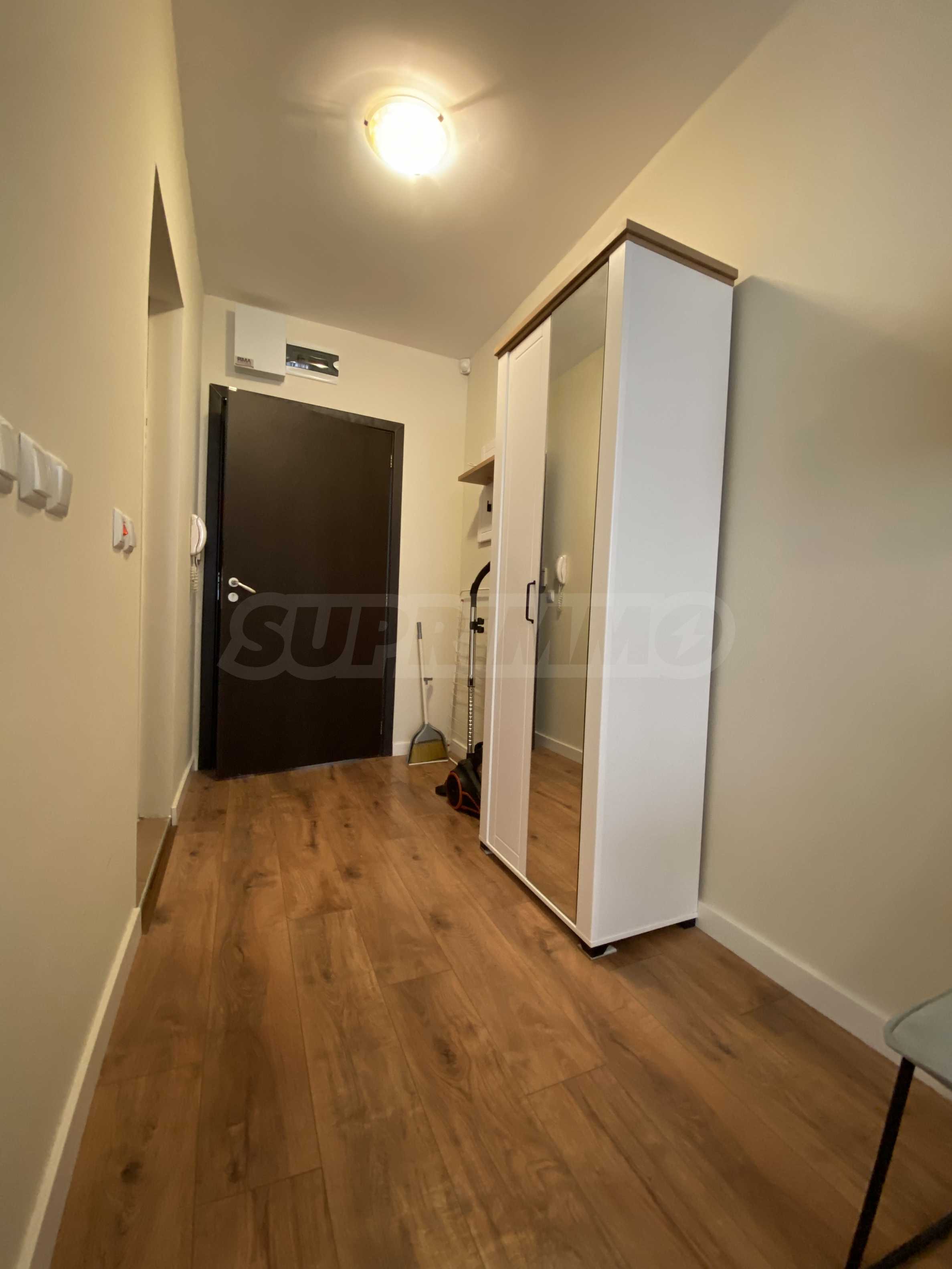 Жилището е напълно обзаведено и оборудвано с всичко необходимо за живеене. Притежава елегантен и модерен интериор, който създава уютна и комфортна атмосфера.