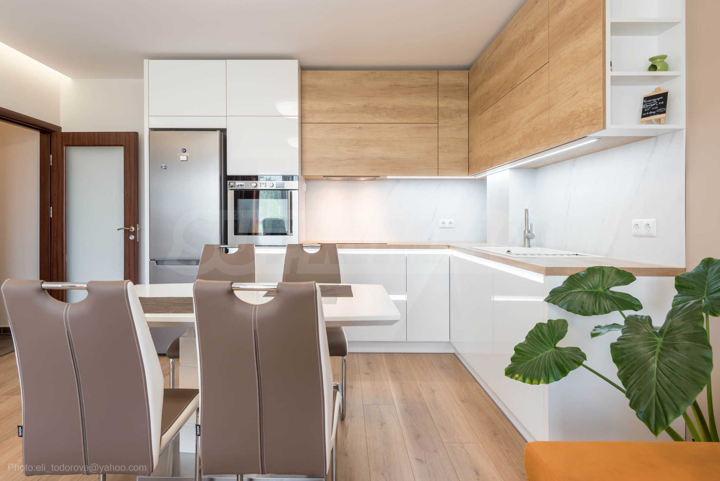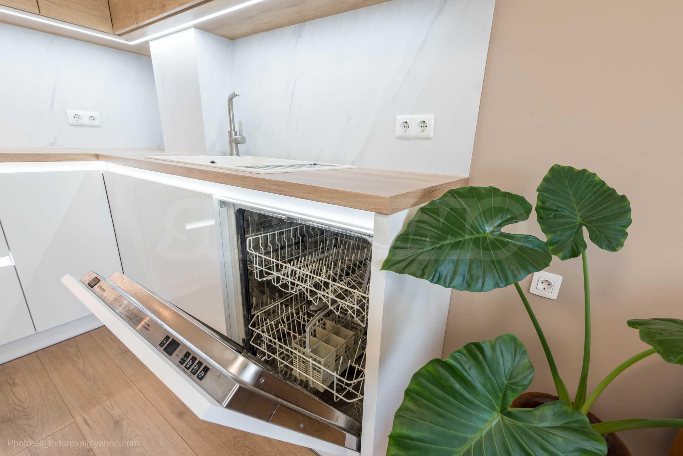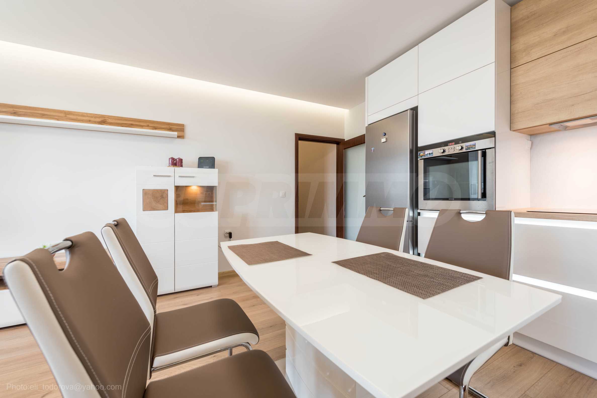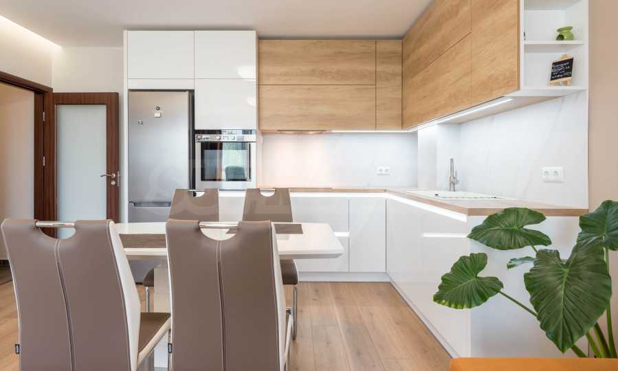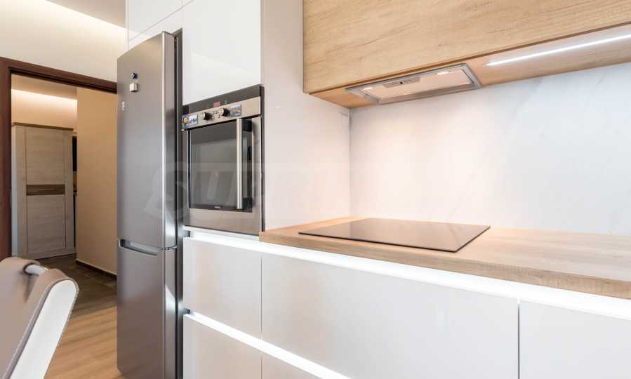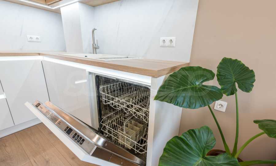Жилището е отлично оборудвано, с модерна кухня с висок клас техника, перално помещение, банята е с душ кабина.