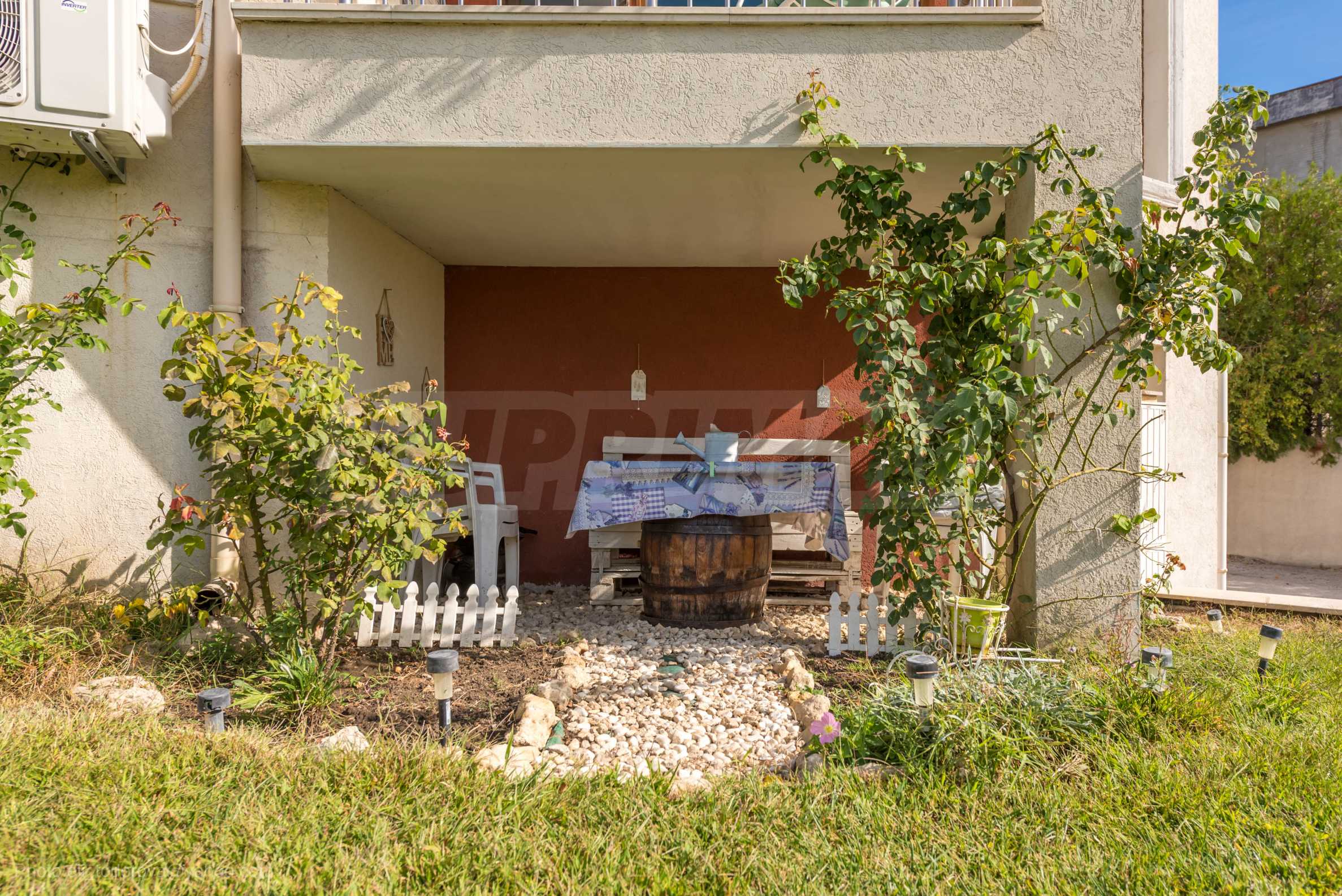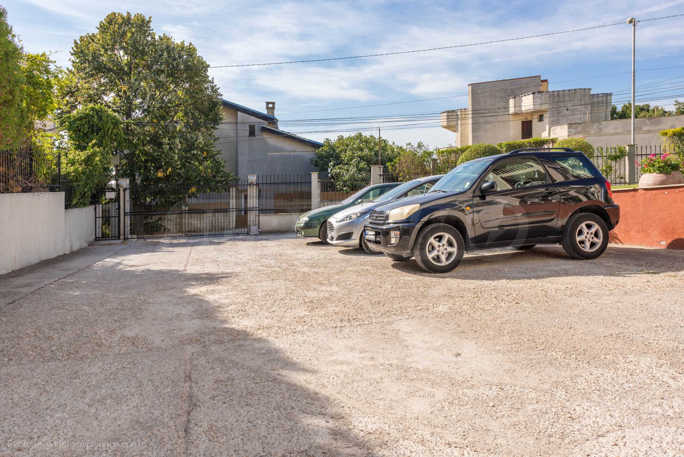 Локацията е търсена и атрактивна, с удобен достъп по асфалтиран път до главния път, тиха и спокойна, а комплексът е с красив, поддържан, озеленен двор. Откритото паркомясто е разположено във вътрешния двор на комплекса.