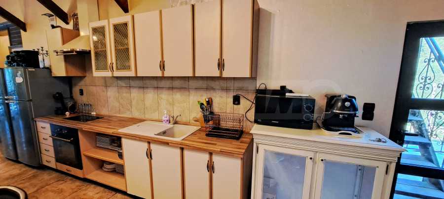 - ниво 2- просторна дневна, кухня, трапезария с маса за 16 гости, две преходни спални с баня и тоалетна, спалня с баня и тоалетна, спалня с баня и тоалетна, веранда и тераса.