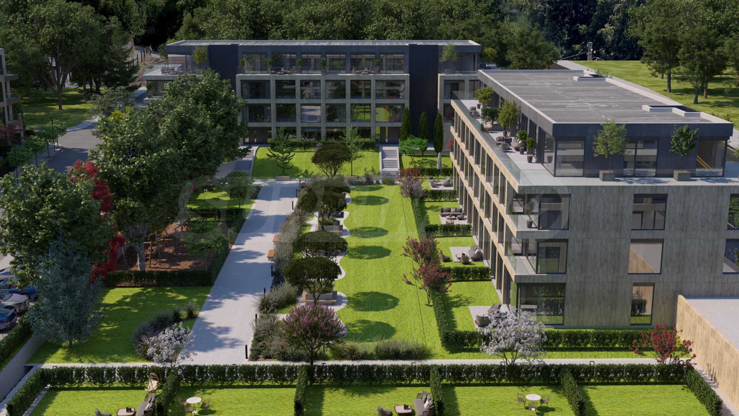Комплексът се намира в зона с нискоетажно застрояване, в непосредствена близост до зелена паркова зона и на пешеходно разстояние от Парадайс Център и метростанция "Витоша". предлага безкомпромисно качество на живот, сигурност и свързаност с природата, изграден върху 4 300 квадратни метра зеленина и изцяло нова инфраструктура.