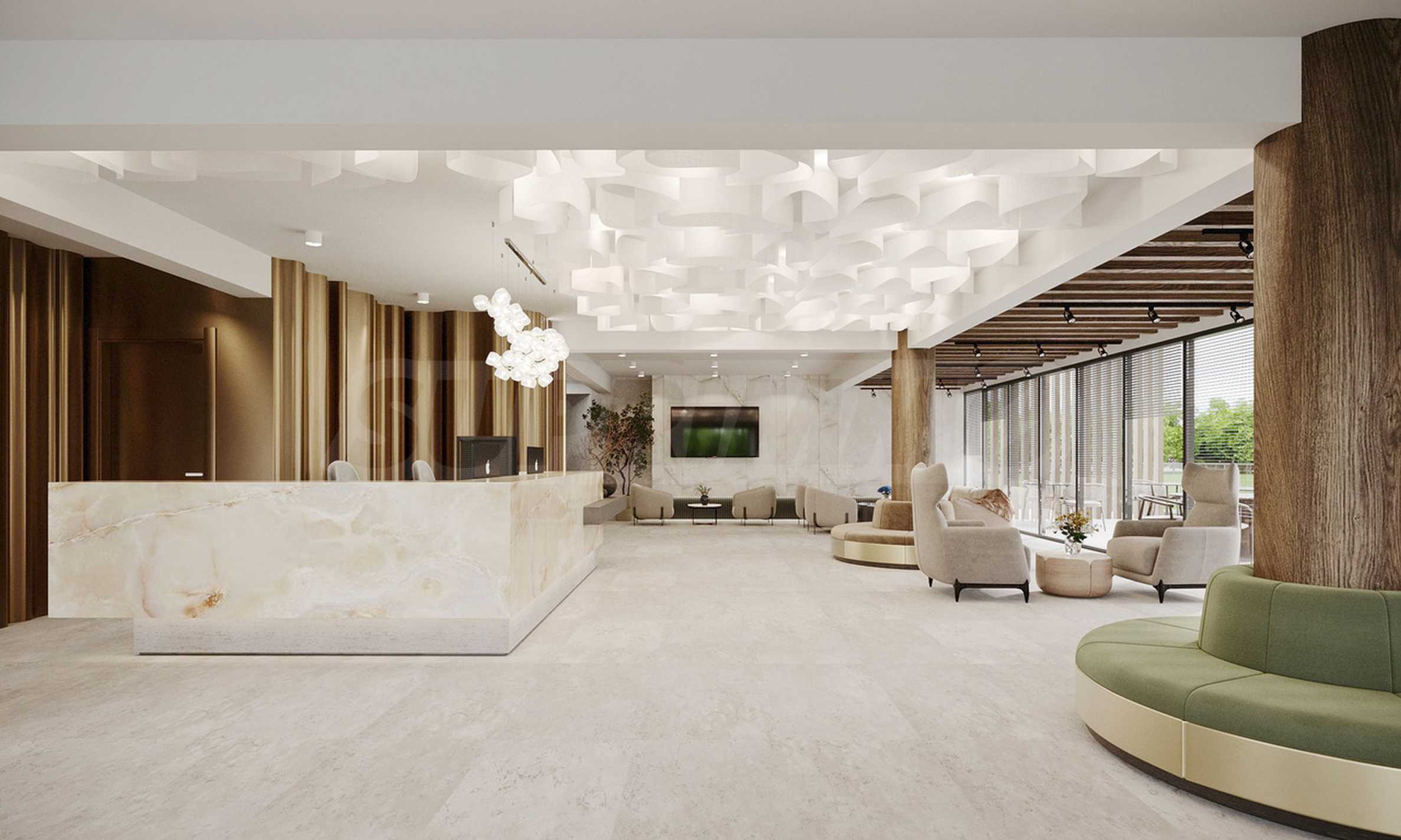 Архитектурната визия ще бъде подчертана с луксозно изпълнени общи части с асансьори KONE, а на разположение на обитателите ще има ресторант от премиален бранд, италианска кафе-сладкарница, скиорна, ултрамодерен уелнес и СПА център, който включва вътрешни и външни сауни, малък басейн с дифузери, парна баня и стаи за масаж, както и фитнес център с Kettler и Tehnogym фитнес уреди.