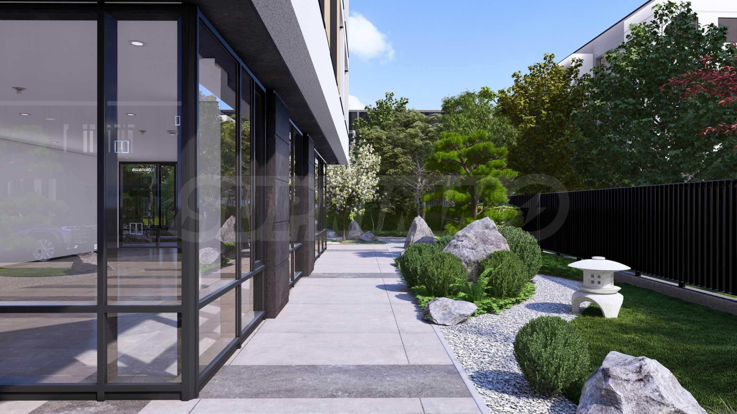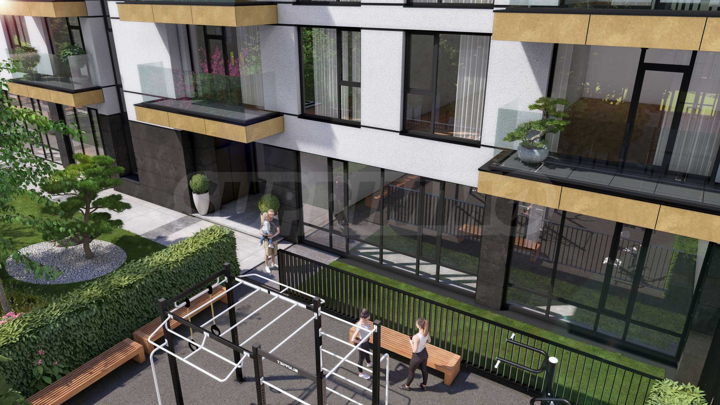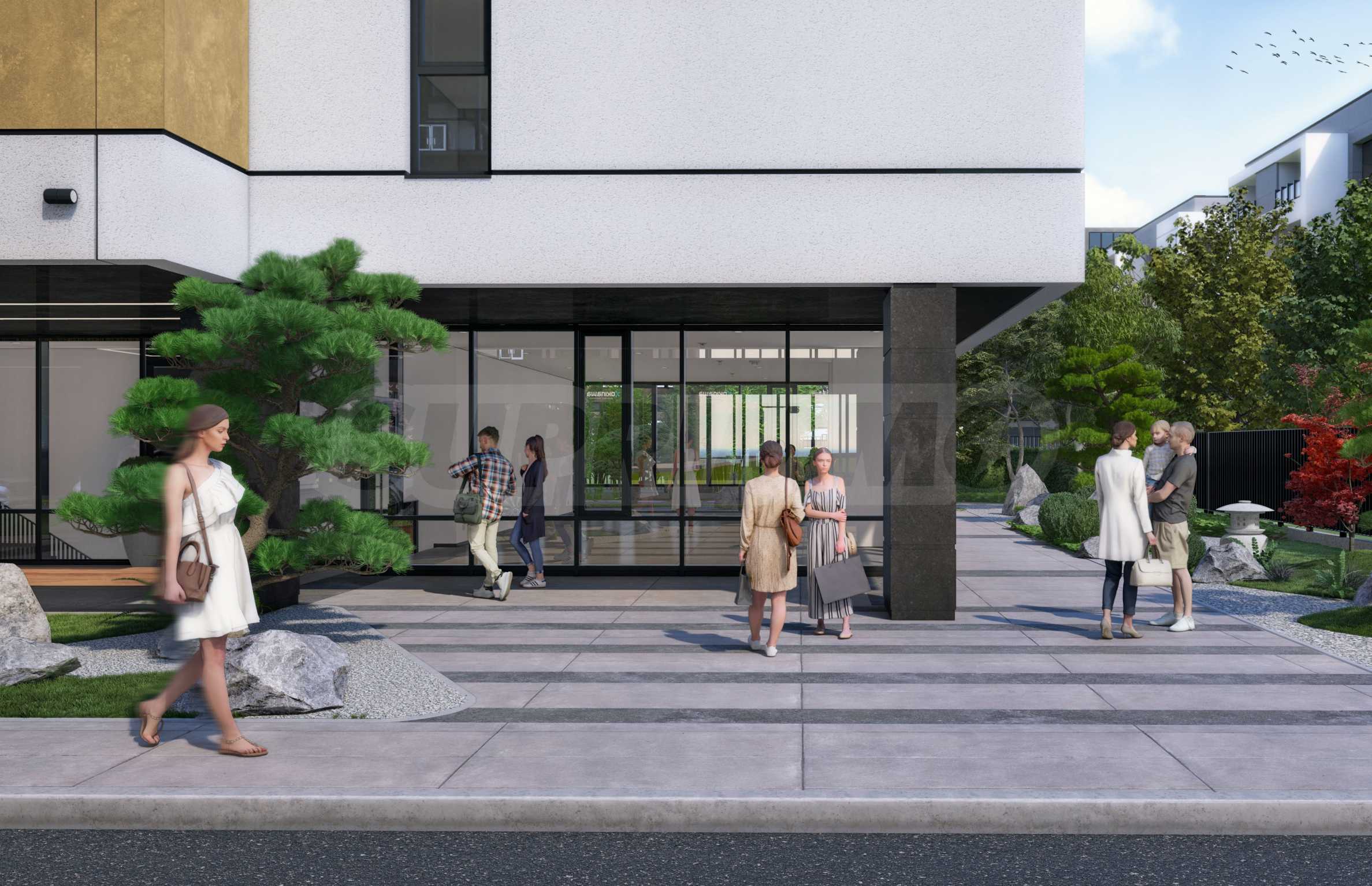 • Богато озеленяване с истинска Японска "дзен" градина, алеи за разходка с пейки и фитнес на открито.