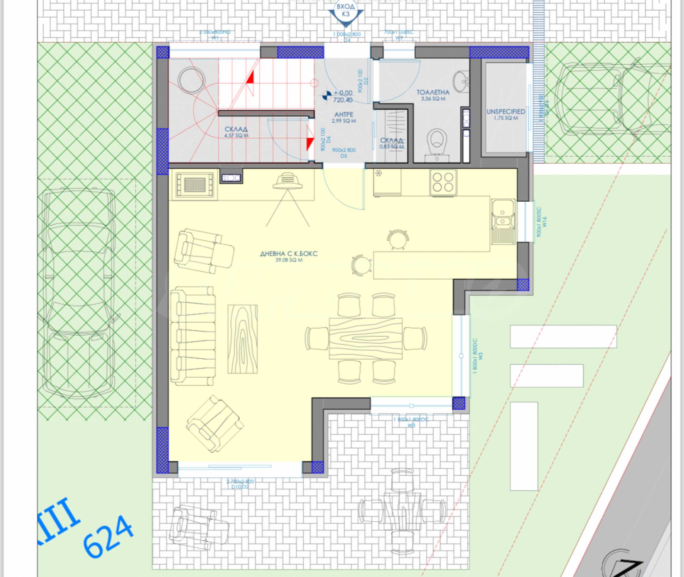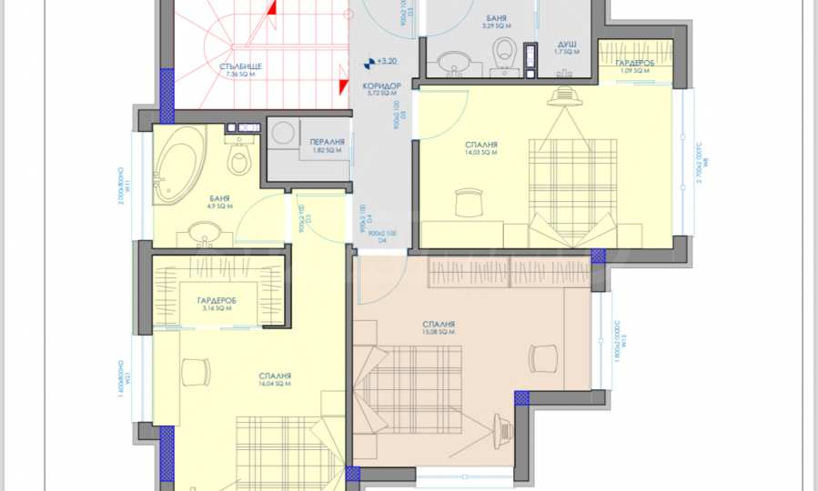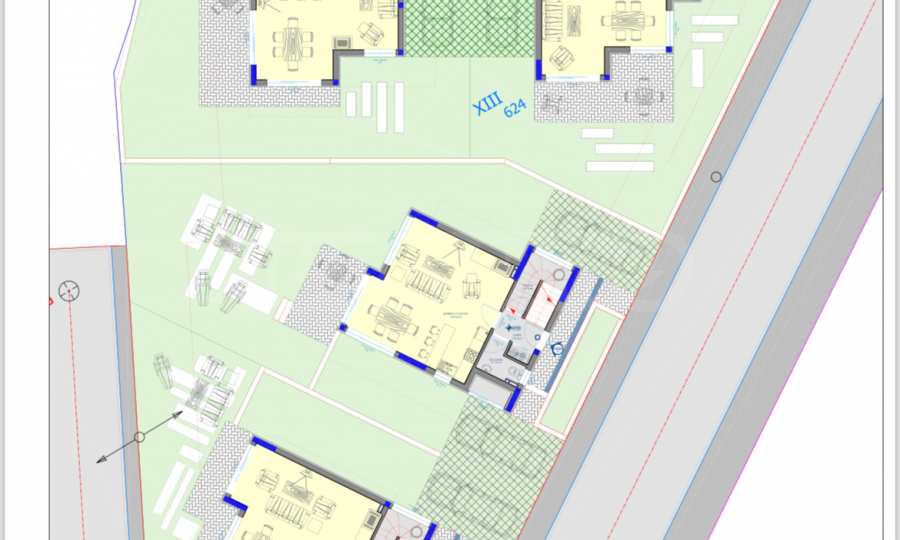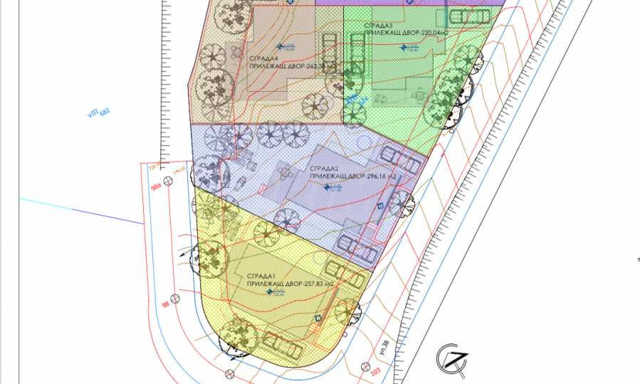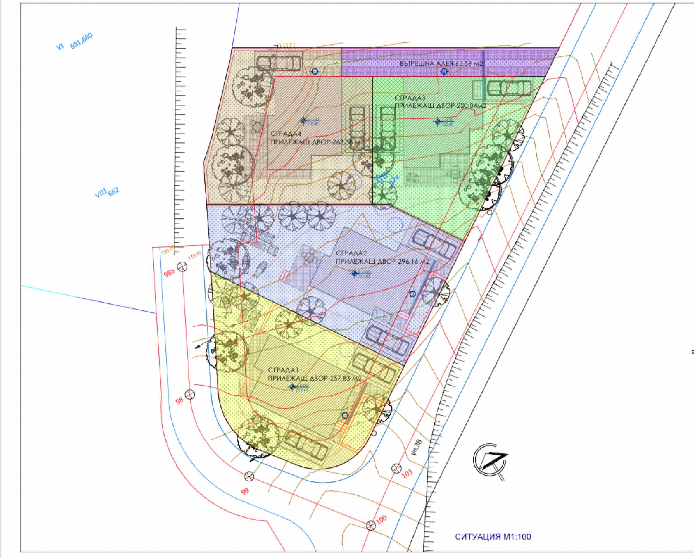 • Къща 3: РЗП 177,89 кв.м, 68,33 кв.м. покривна тераса и прилежащ двор: 220,04 кв.м.
