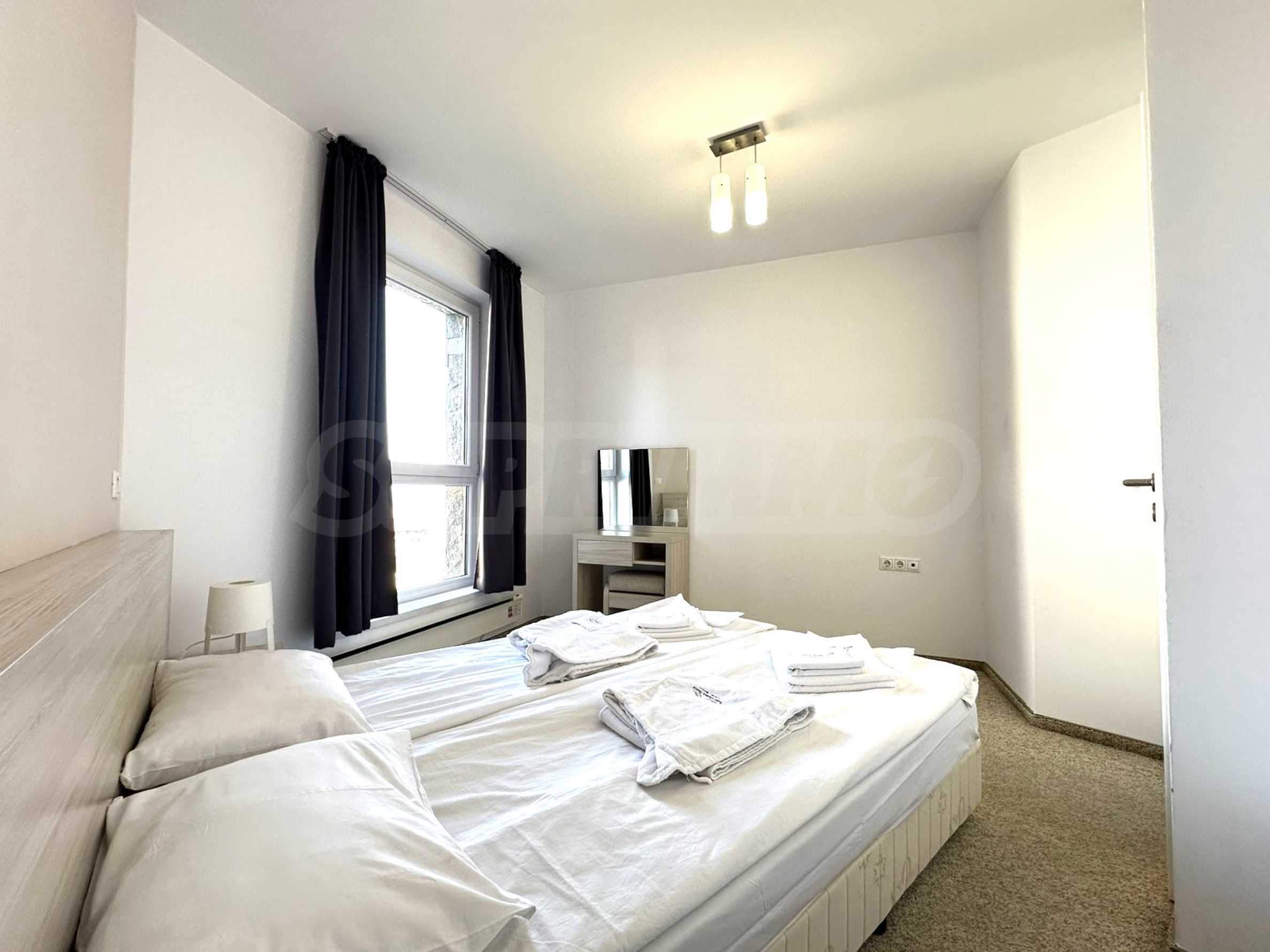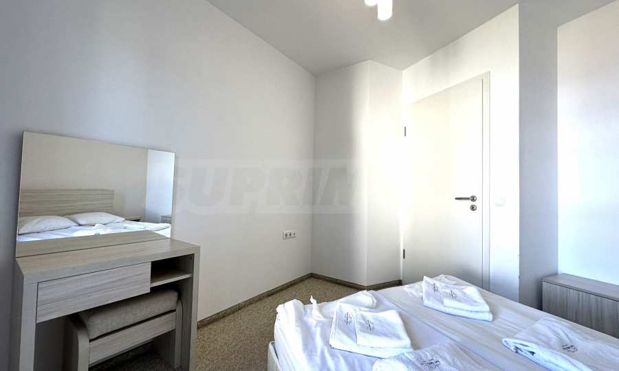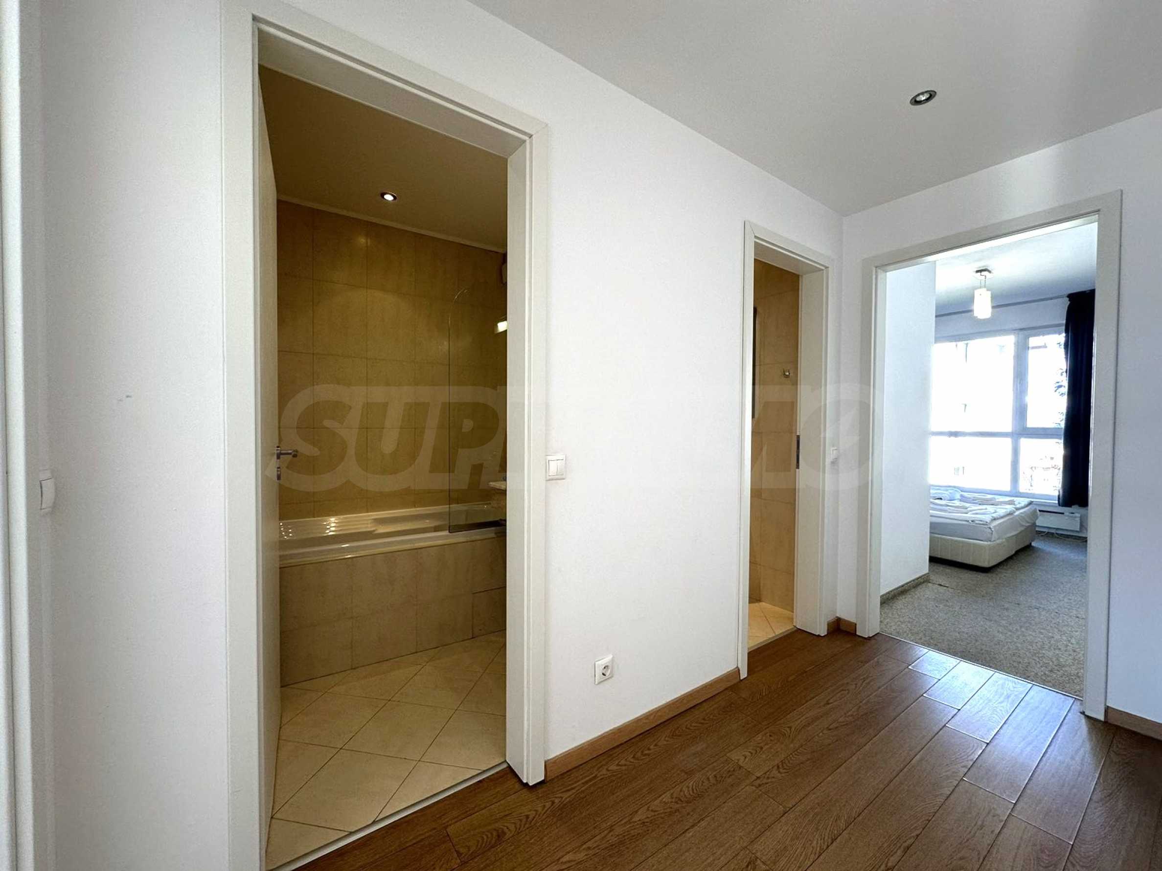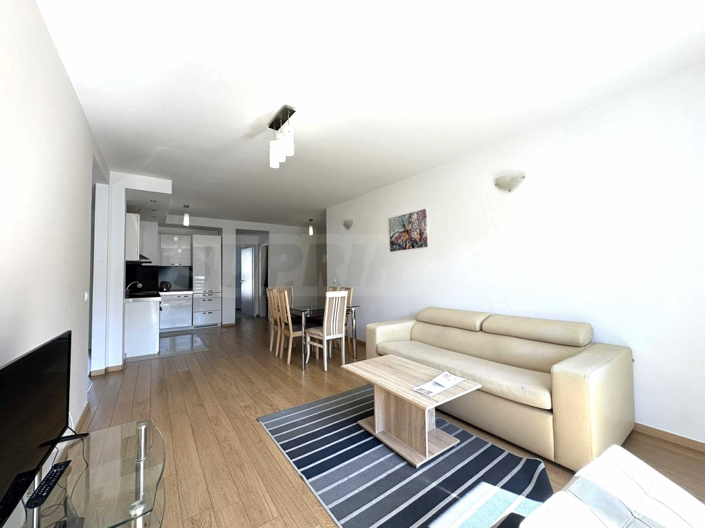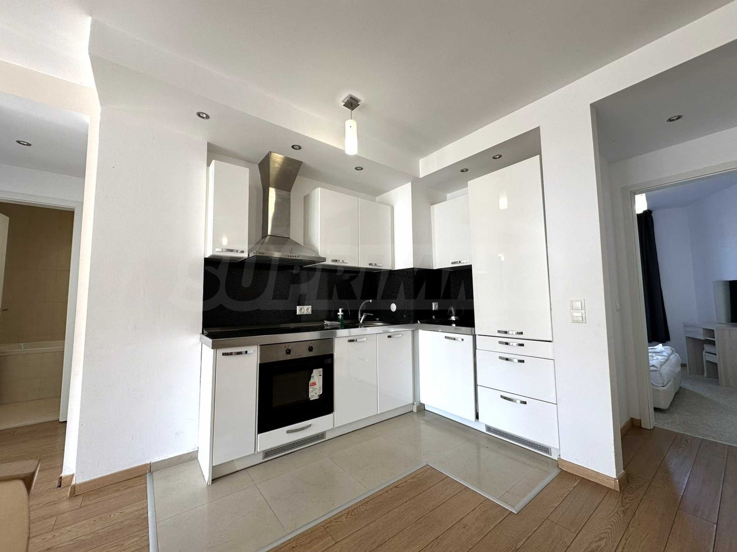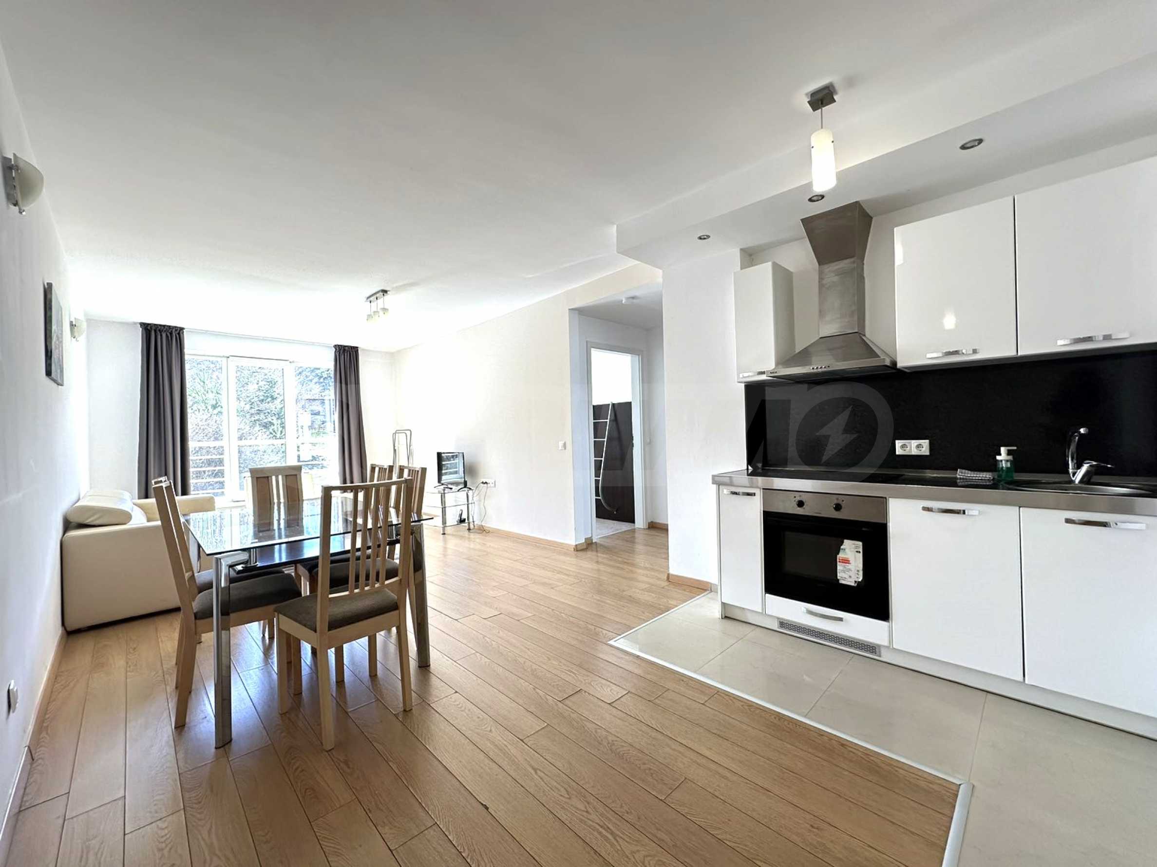 Жилището е с индивидуален дизайн, с голямо внимание към детайлите. В декорацията са използвани само най-висококачествените и естествени материали. Просторната всекидневна разполага с мека мебел и бяла кухня, която е напълно оборудвана с висок клас техника: фурна, котлони и хладилник.