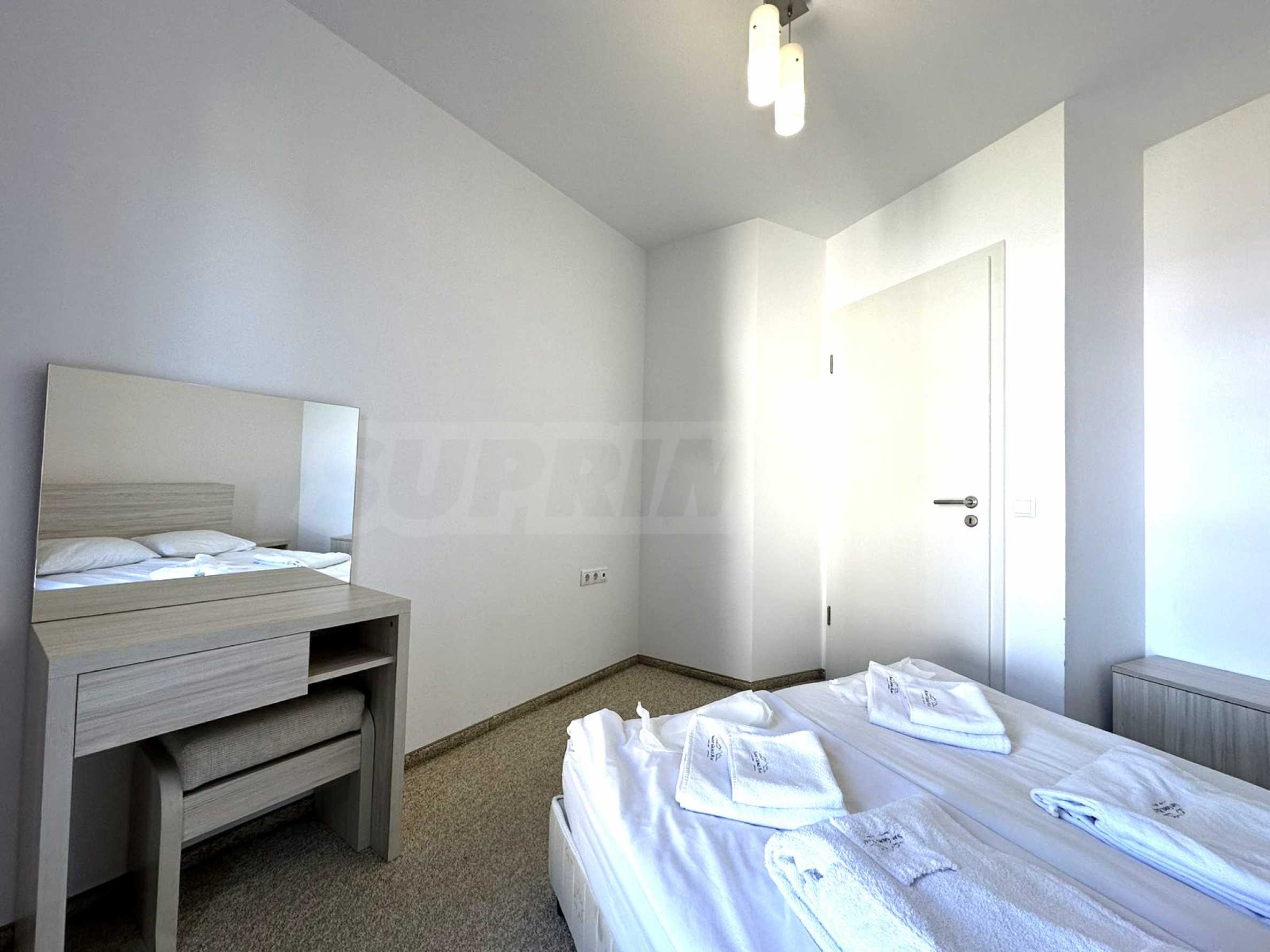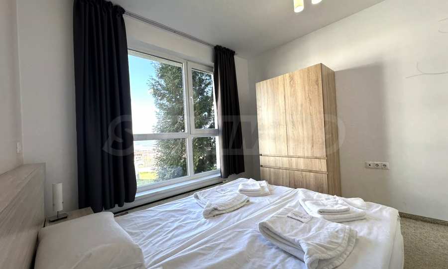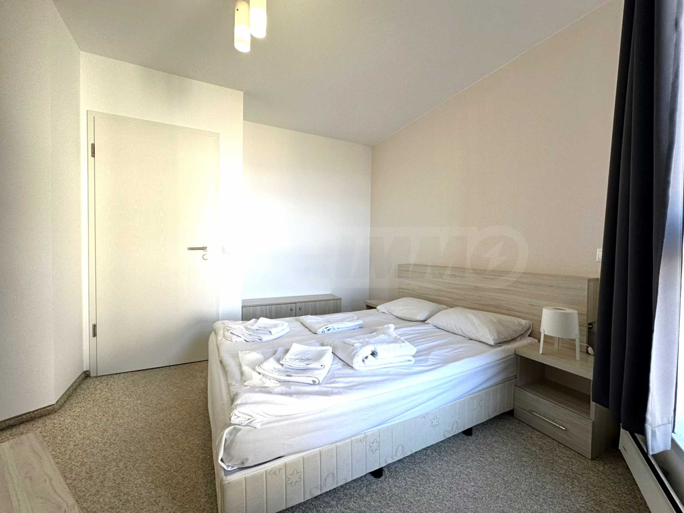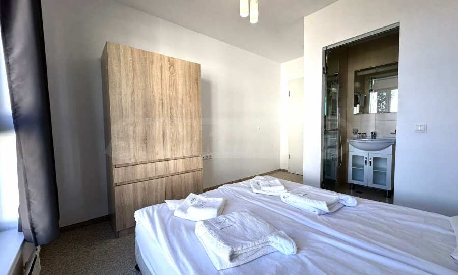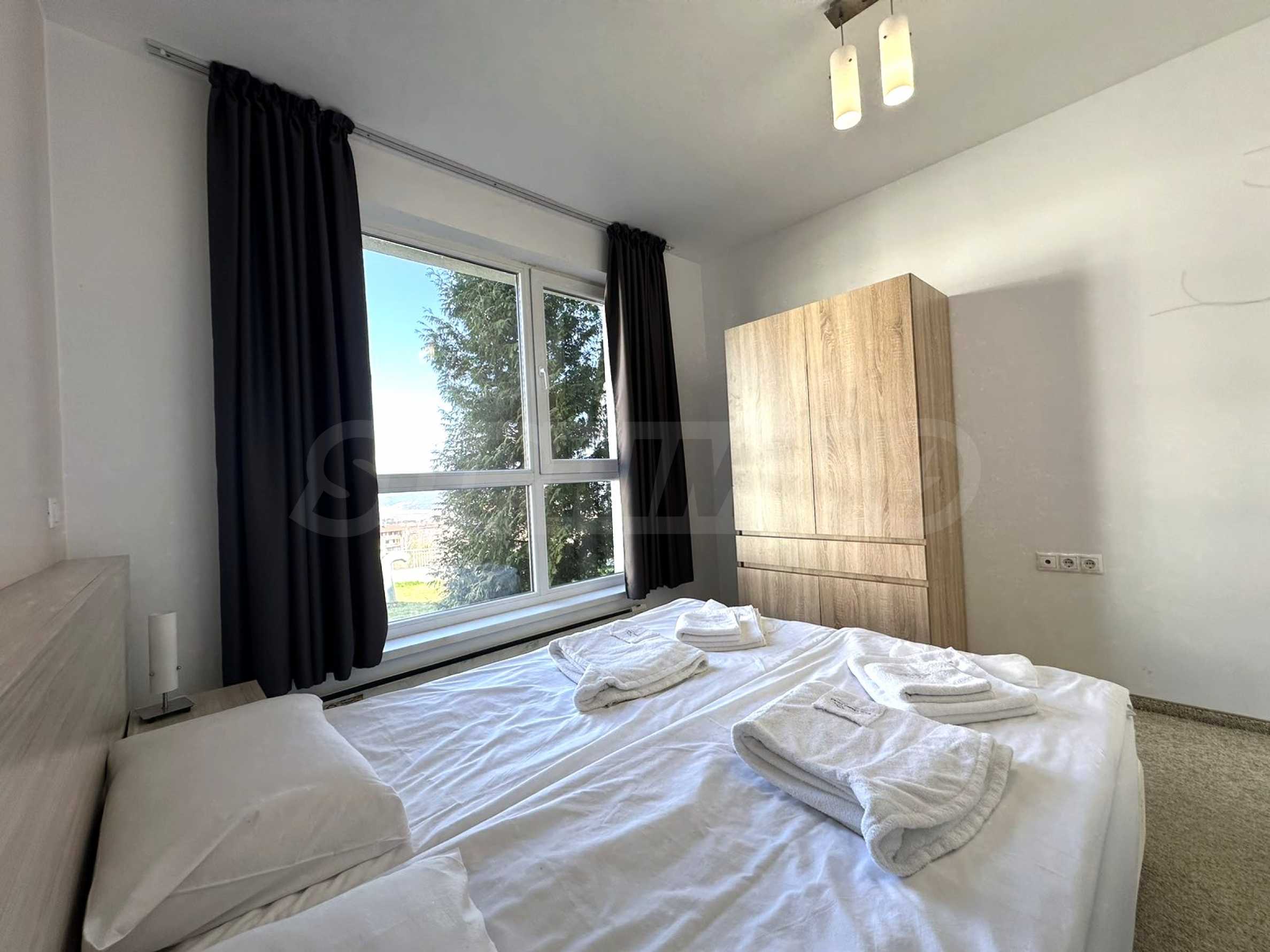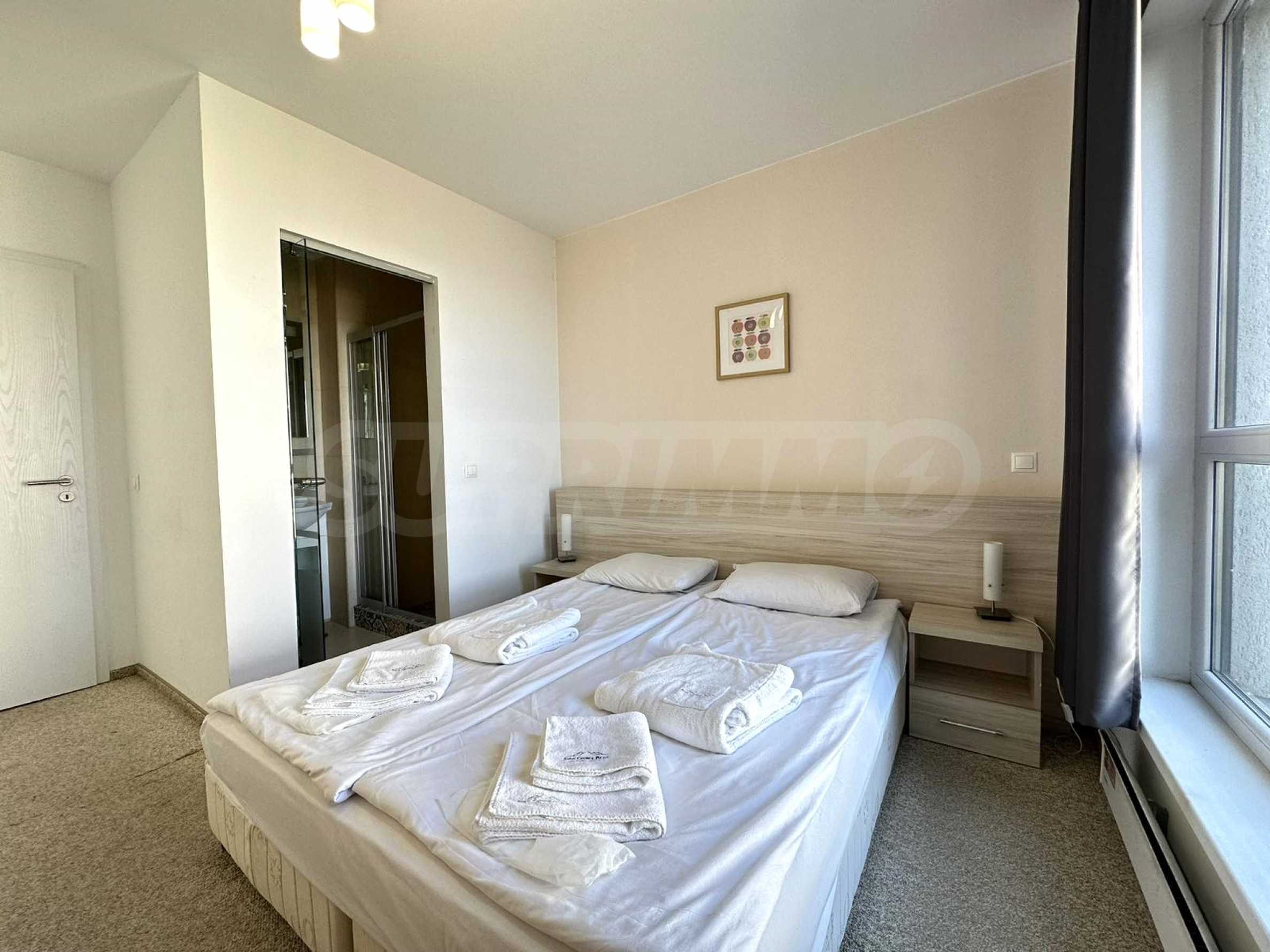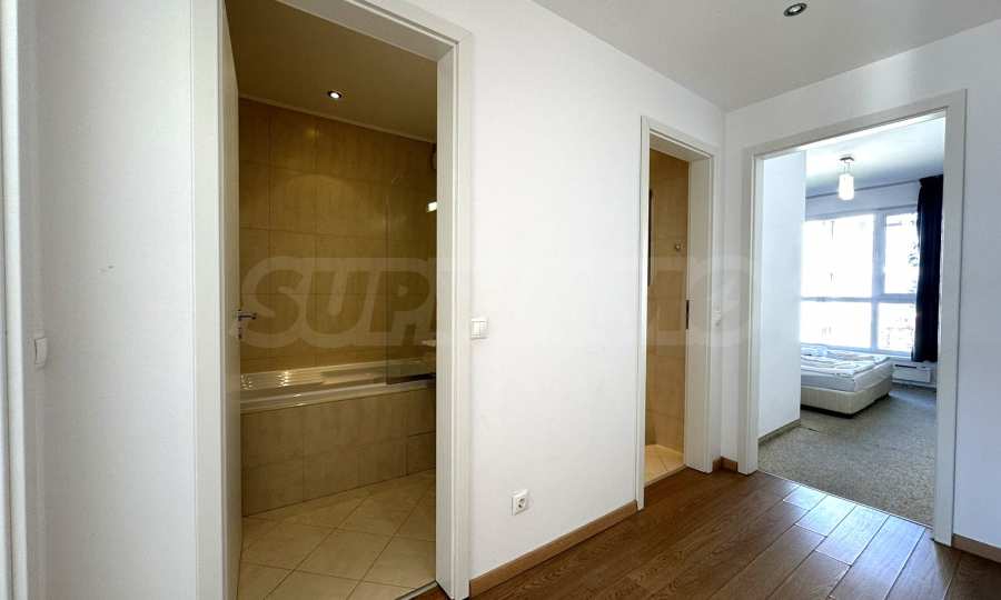 Жилището е с индивидуален дизайн, с голямо внимание към детайлите. В декорацията са използвани само най-висококачествените и естествени материали. Просторната всекидневна разполага с мека мебел и бяла кухня, която е напълно оборудвана с висок клас техника: фурна, котлони и хладилник.