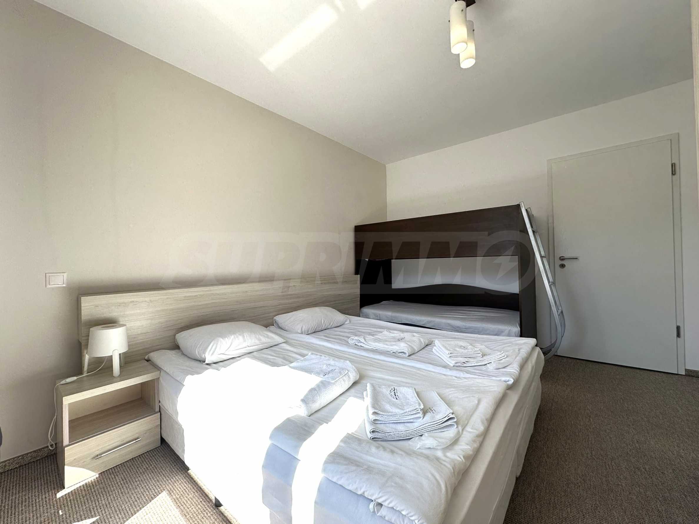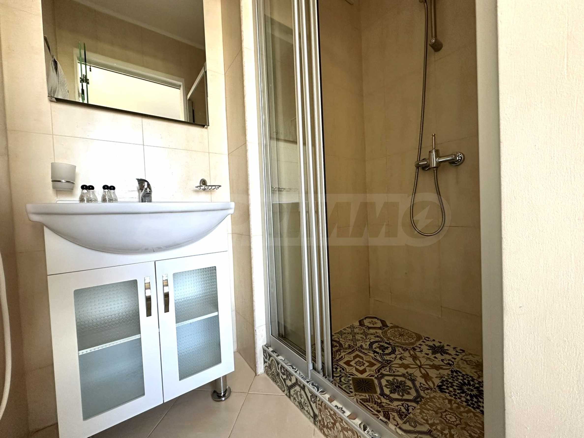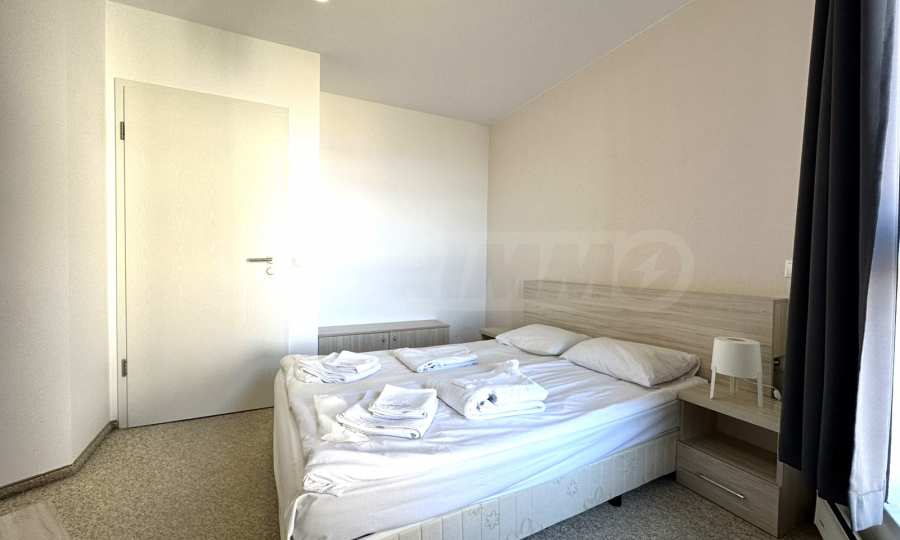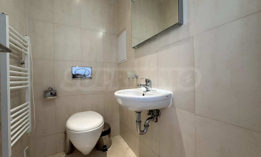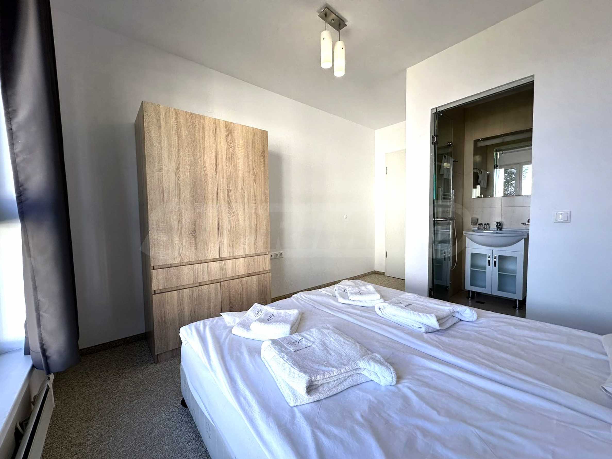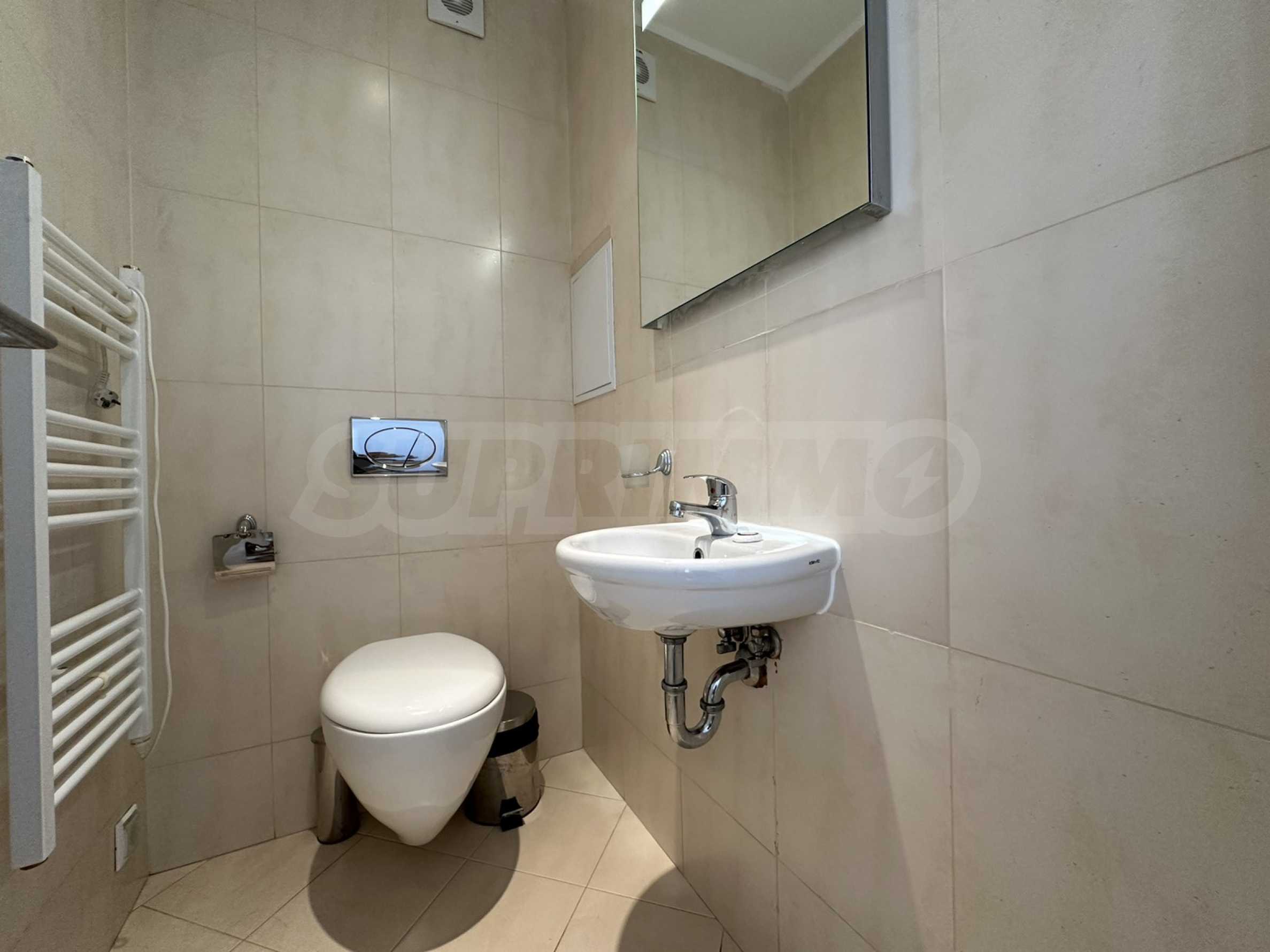 Жилището е с индивидуален дизайн, с голямо внимание към детайлите. В декорацията са използвани само най-висококачествените и естествени материали. Просторната всекидневна разполага с мека мебел и бяла кухня, която е напълно оборудвана с висок клас техника: фурна, котлони и хладилник.