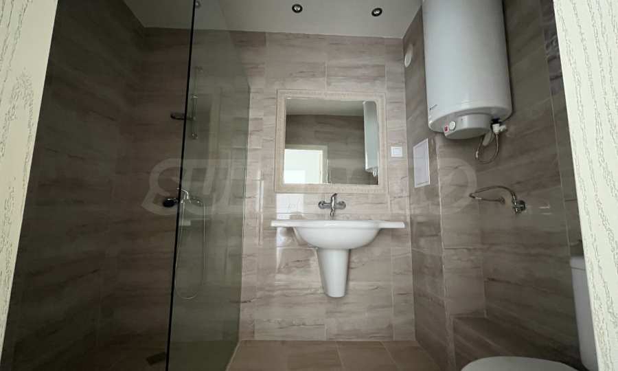 - баня – под – теракот, стени – фаянс, душ батерия, моноблок, мивка, душ кабина и бойлер.