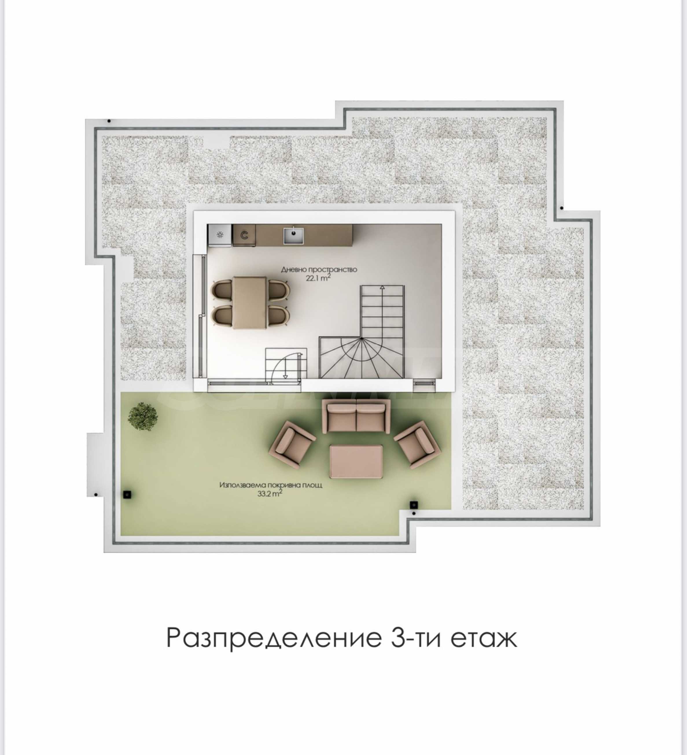 - Етаж 3 - лятна кухня с голяма панорамна тераса.