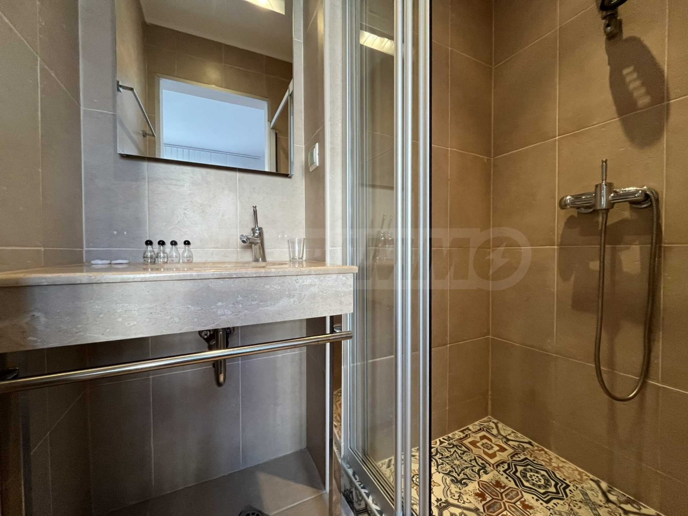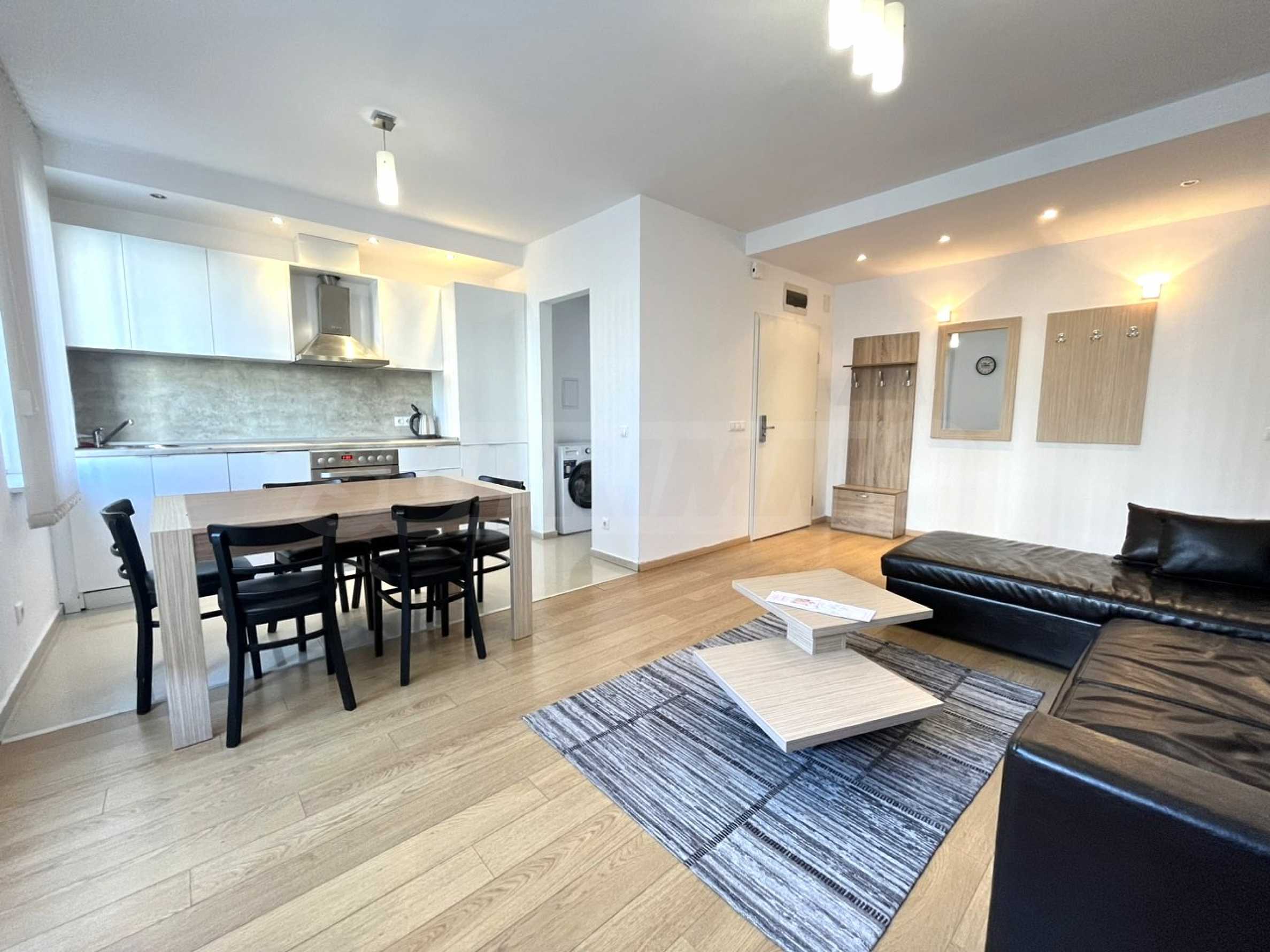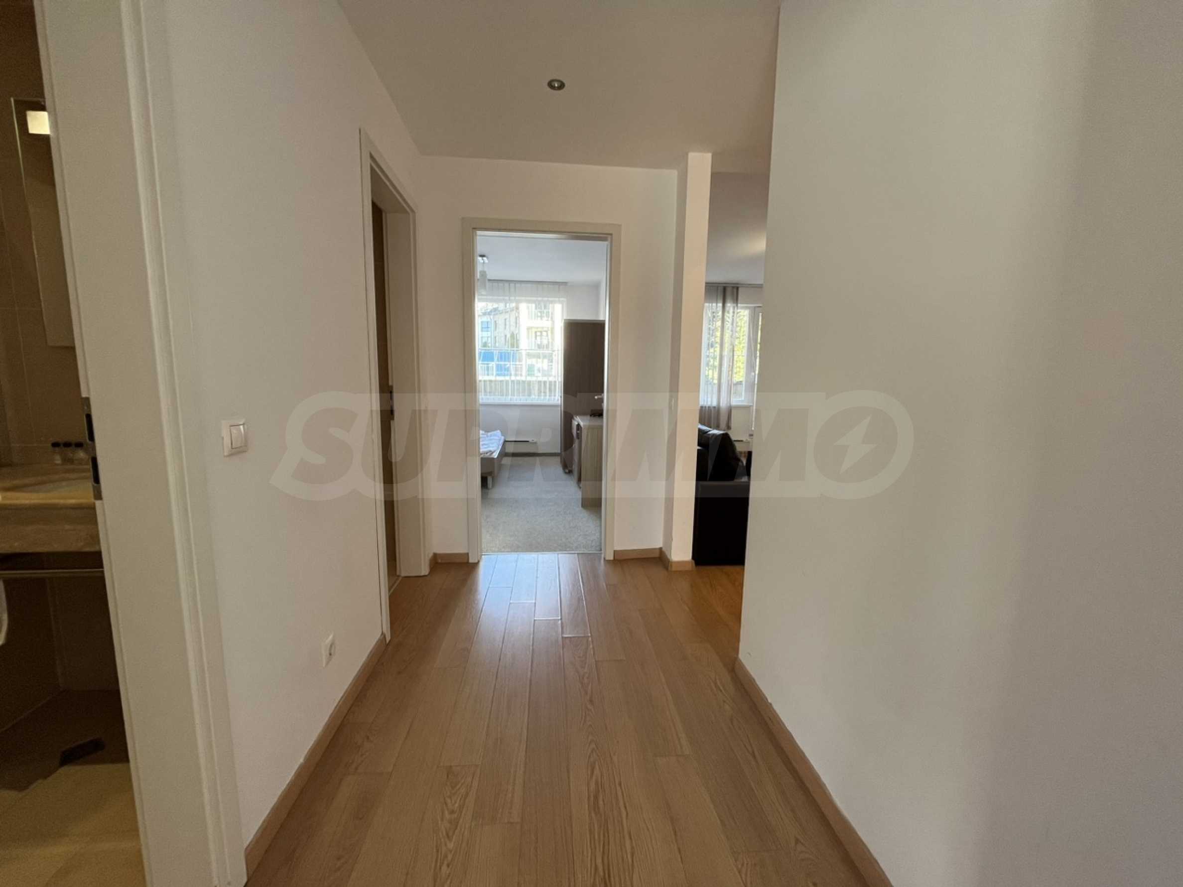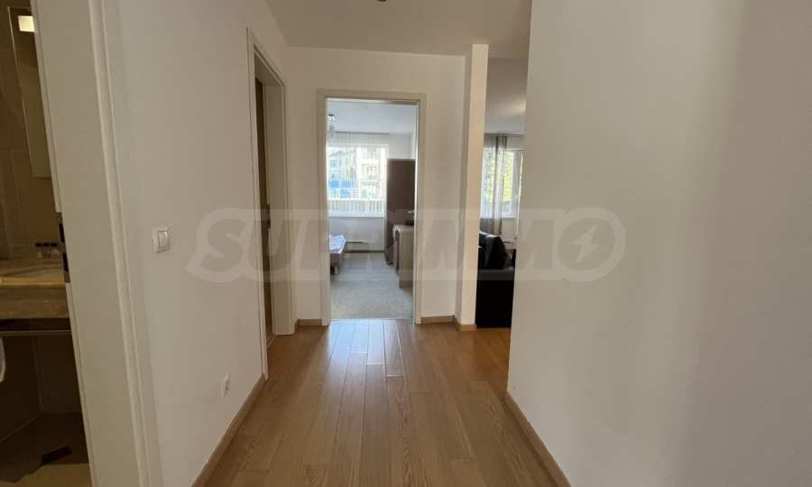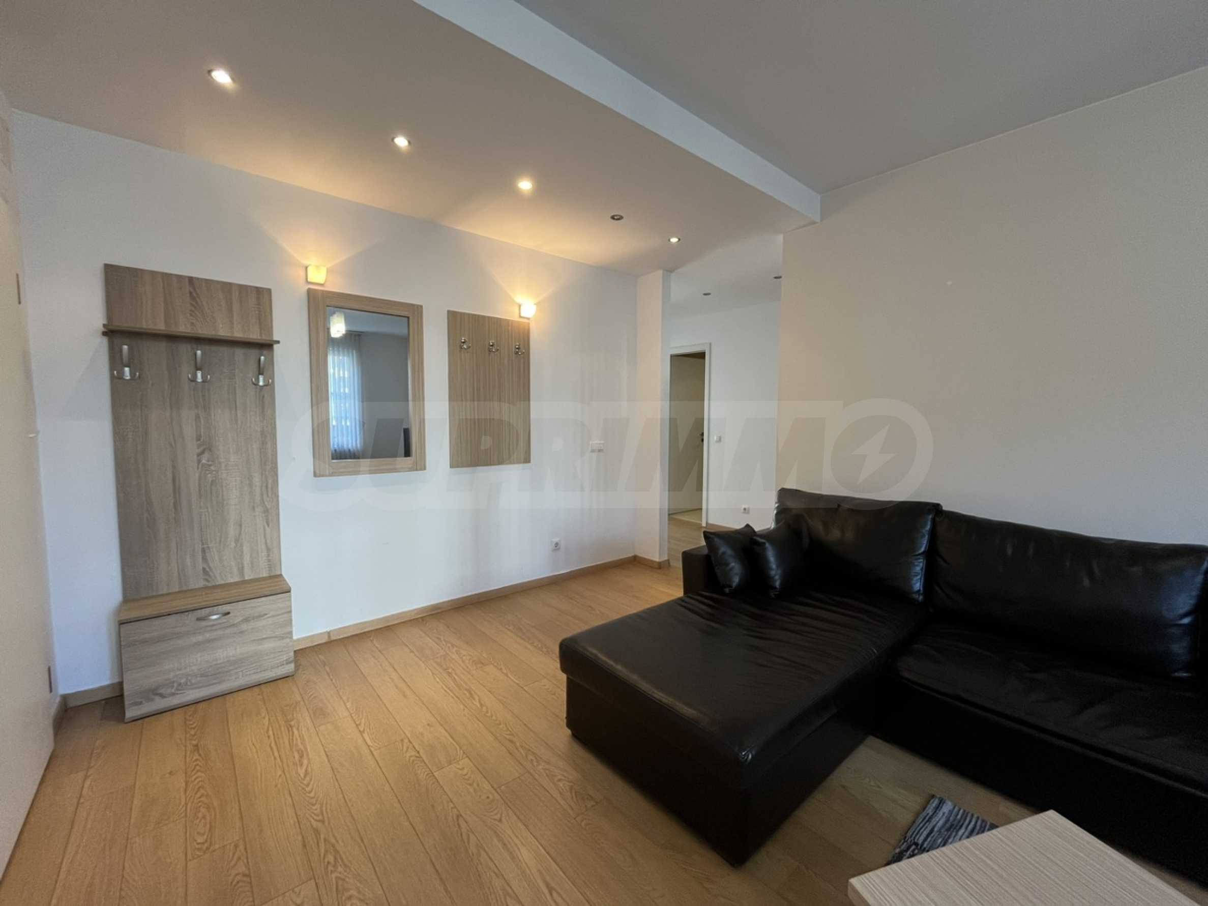 Жилището е с индивидуален дизайн, с голямо внимание към детайлите. В декорацията са използвани само най-висококачествените и естествени материали. Просторната всекидневна разполага с мека мебел и бяла кухня, която е напълно оборудвана с висок клас техника: фурна, котлони и хладилник.