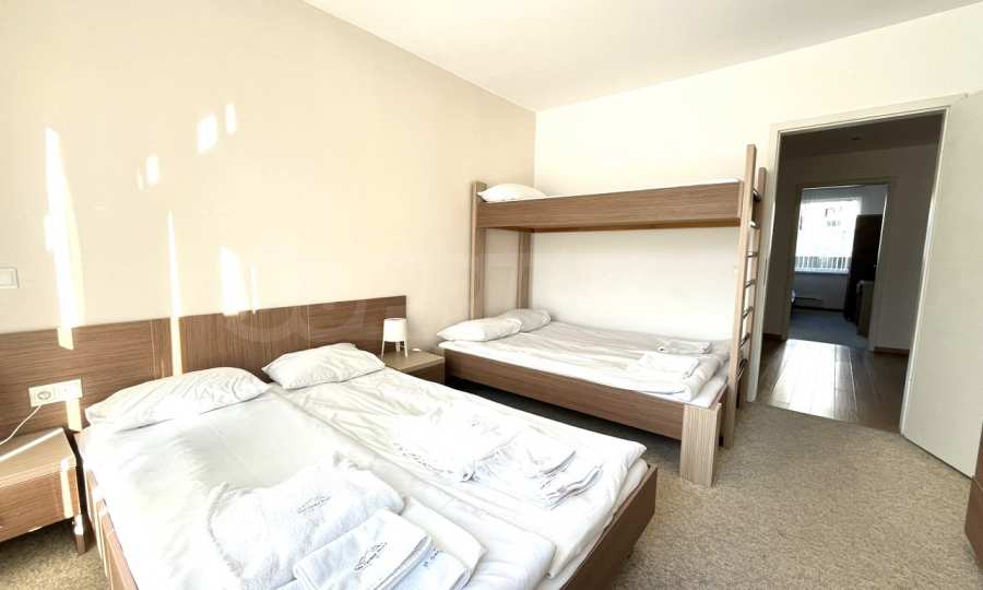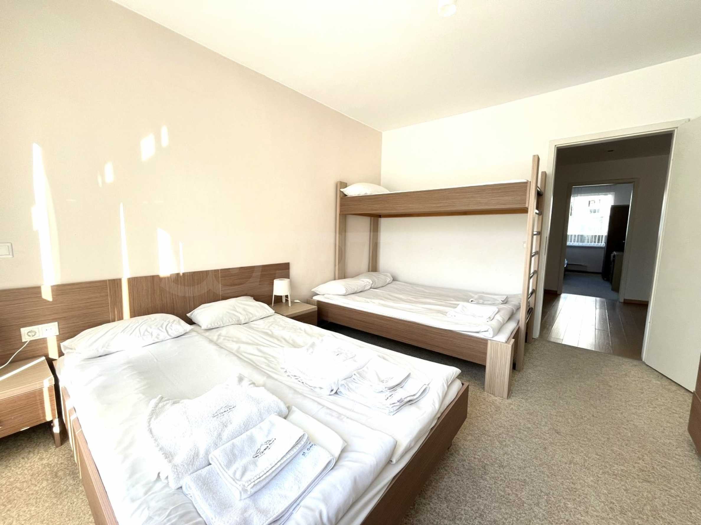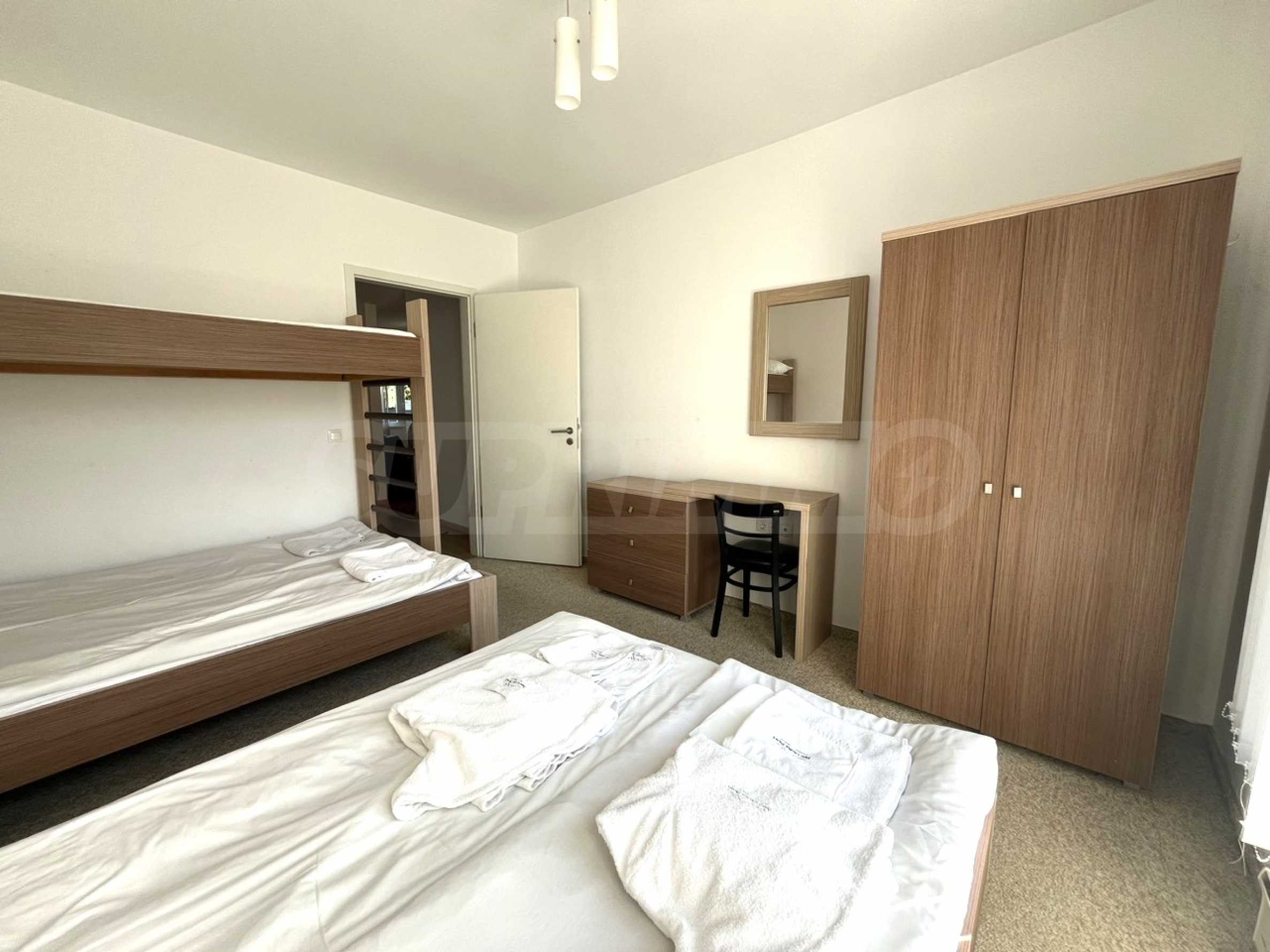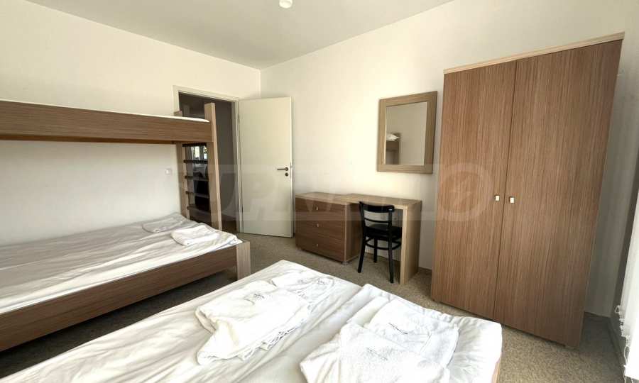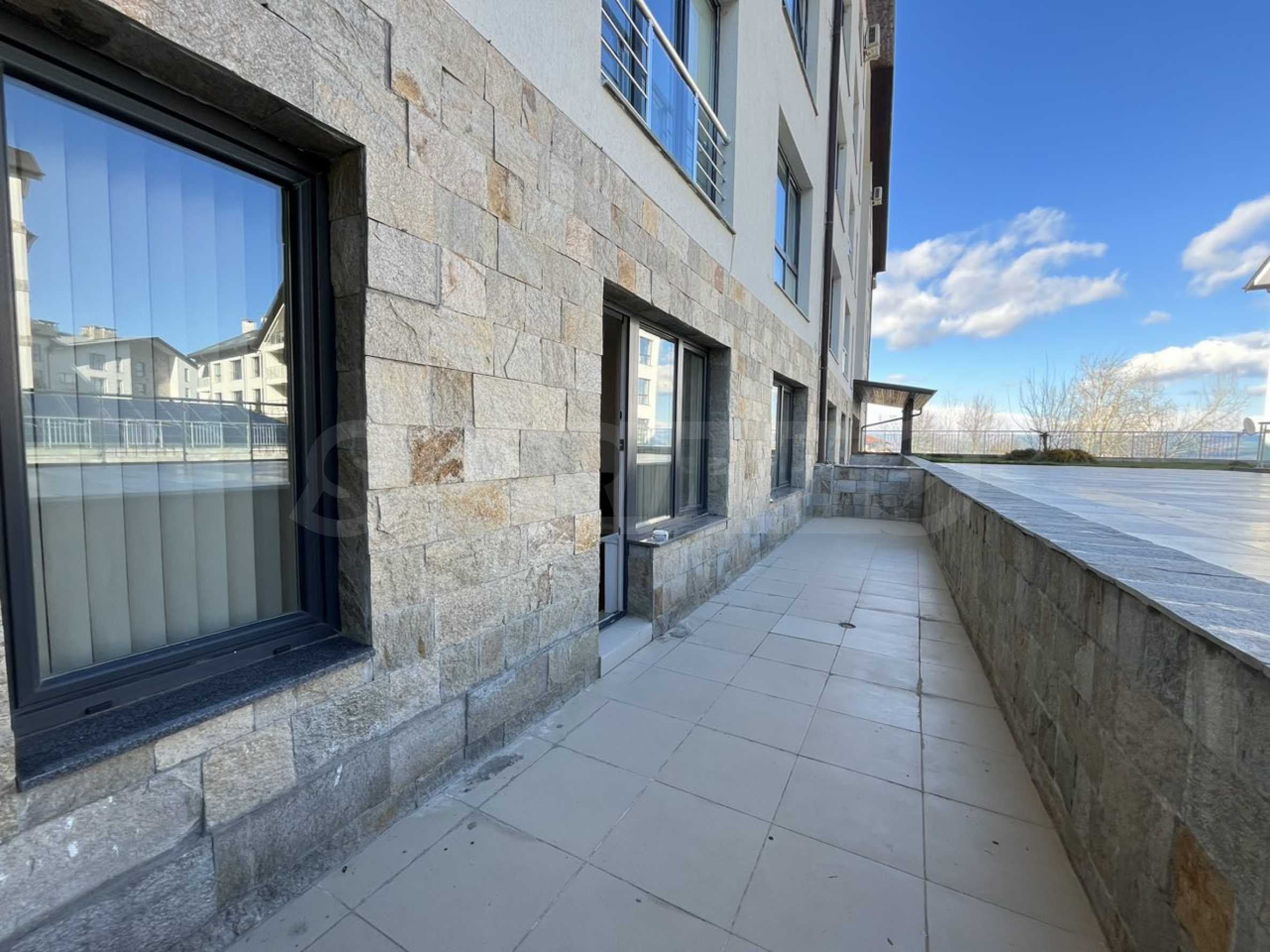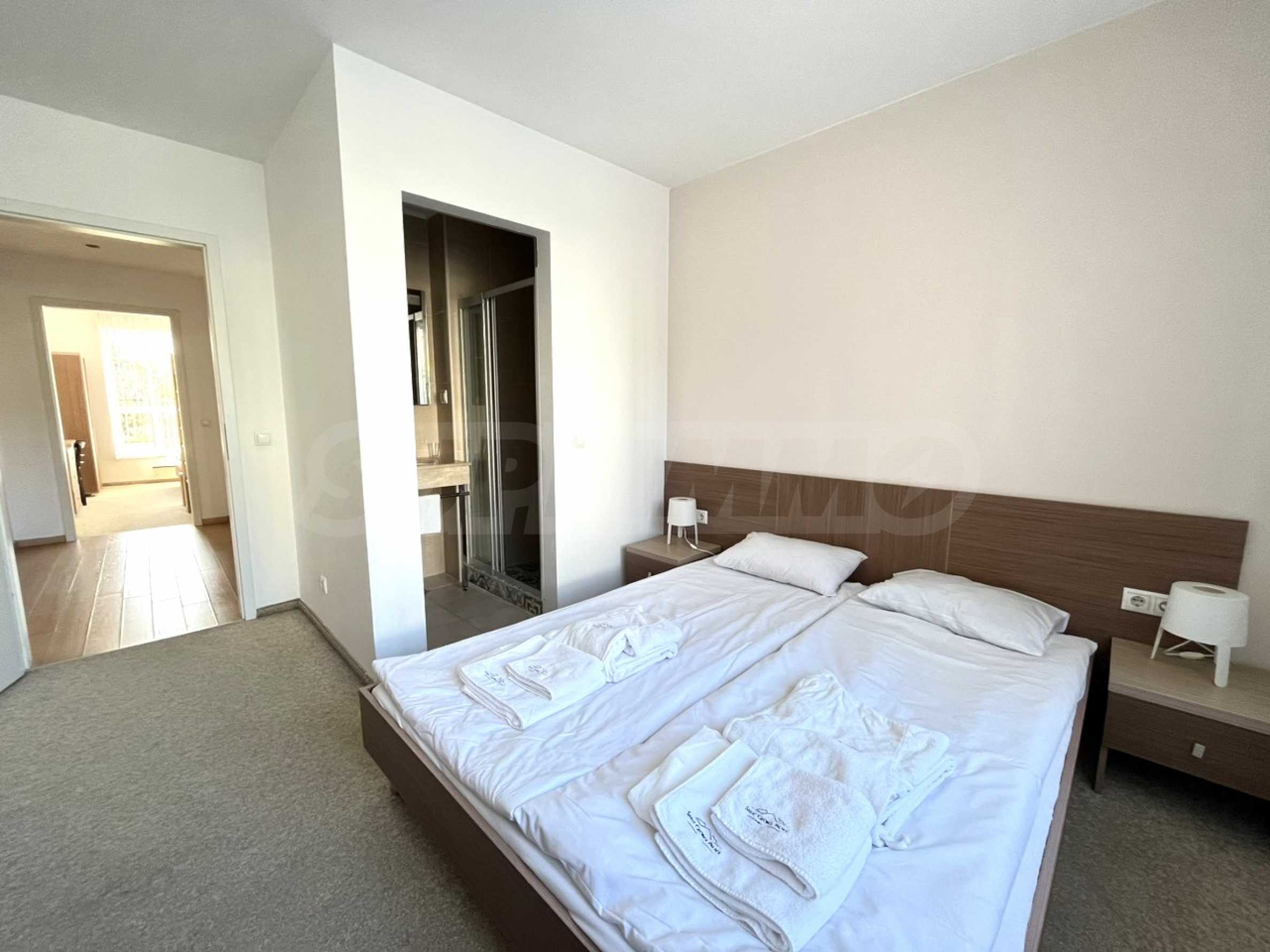 Жилището е с индивидуален дизайн, с голямо внимание към детайлите. В декорацията са използвани само най-висококачествените и естествени материали. Просторната всекидневна разполага с мека мебел и бяла кухня, която е напълно оборудвана с висок клас техника: фурна, котлони и хладилник.