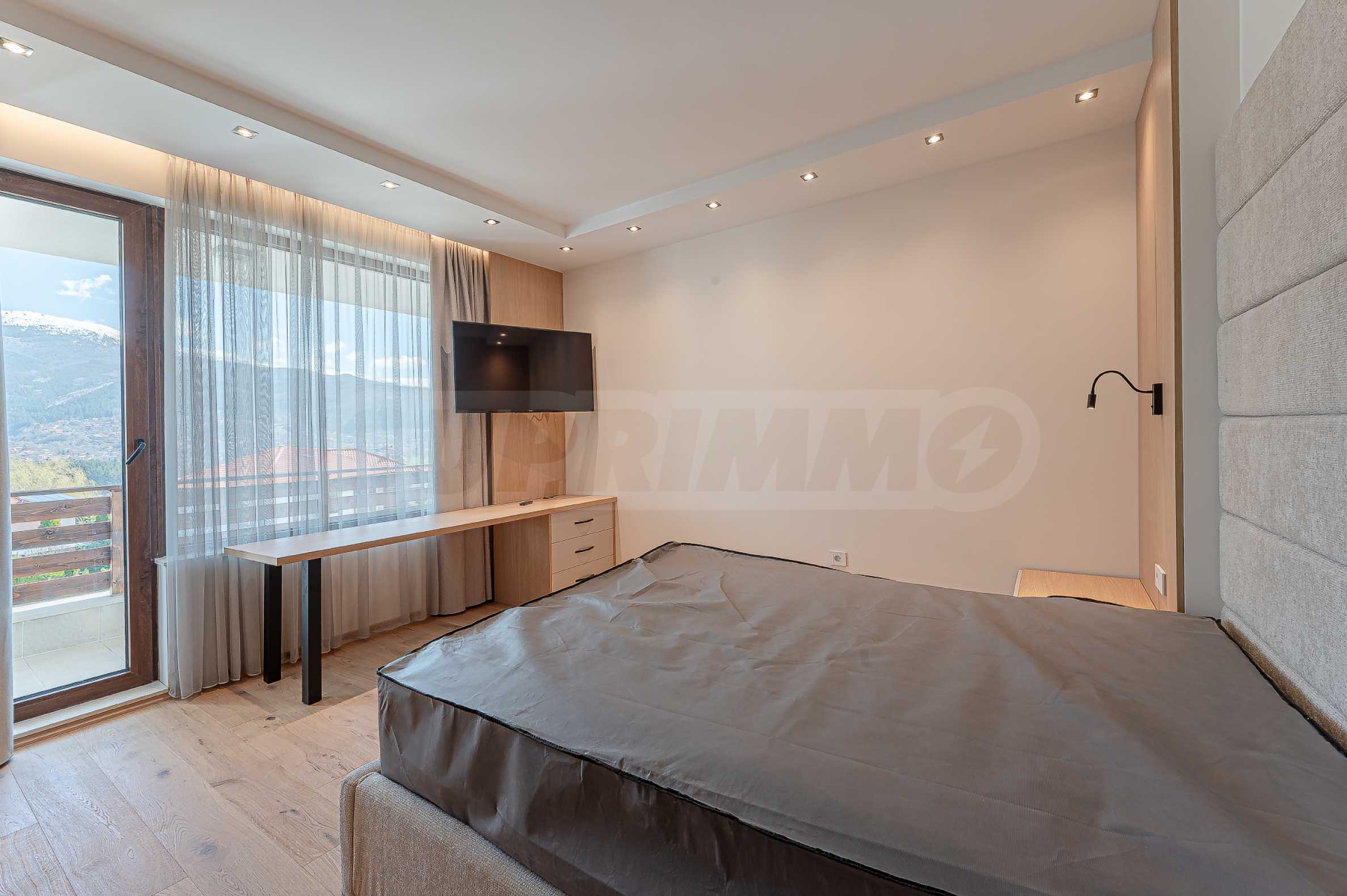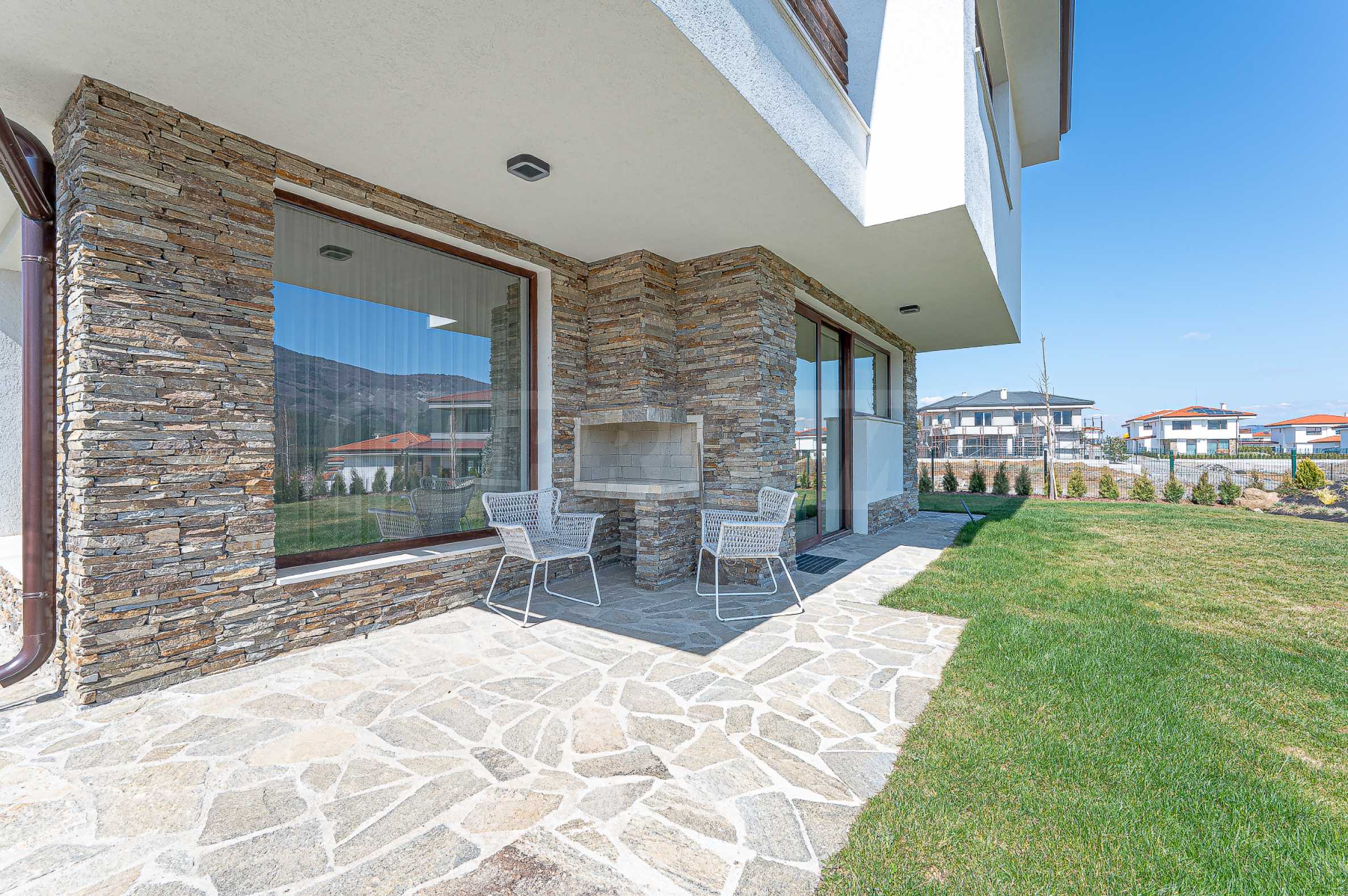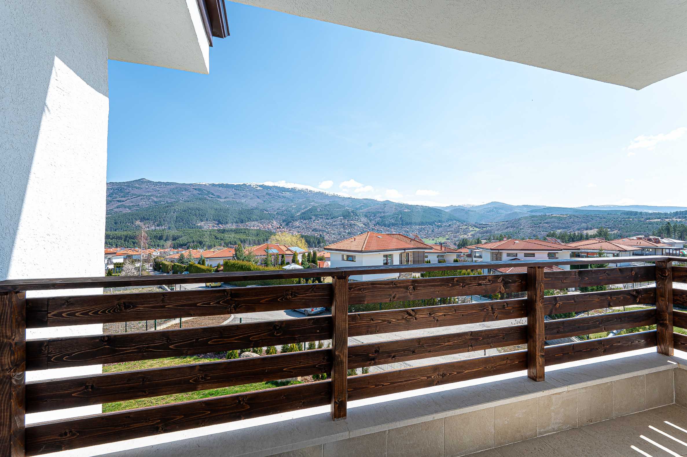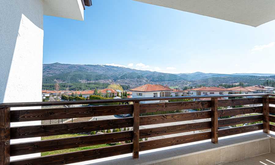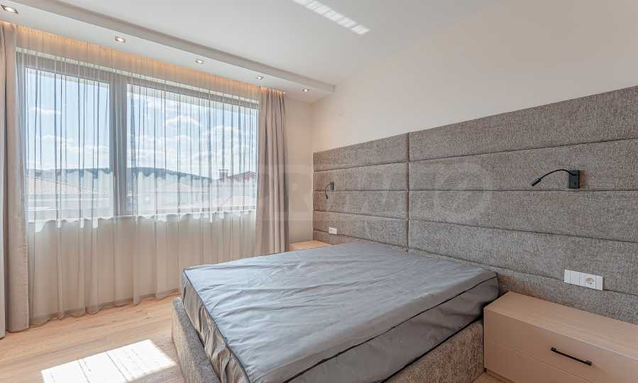 По вътрешни стълби се достига до втория етаж, който се заема от три спални, и спиращи дъха гледки към Витоша и цялата територия на комплекса.