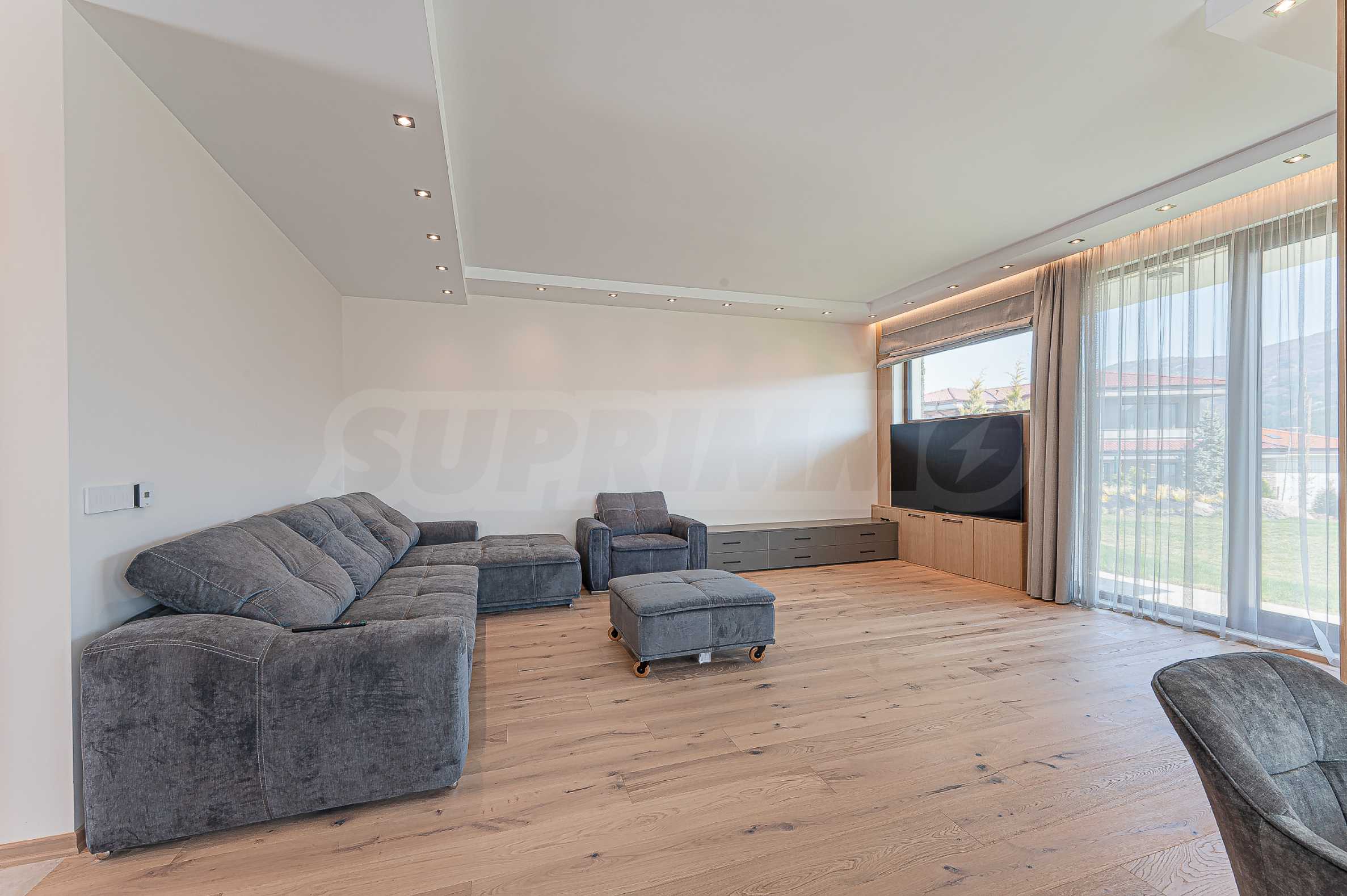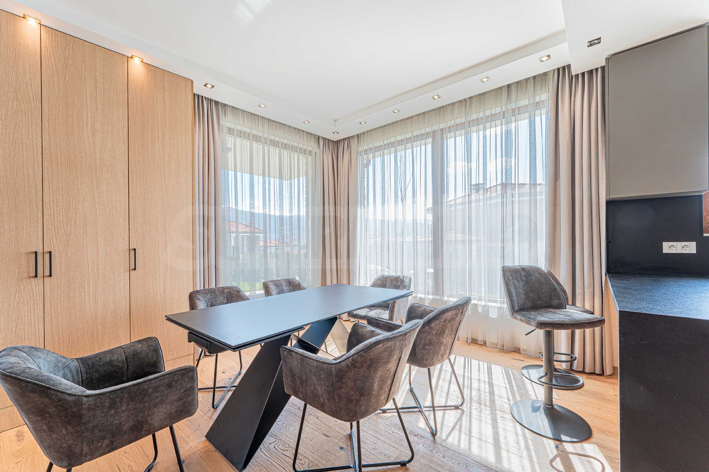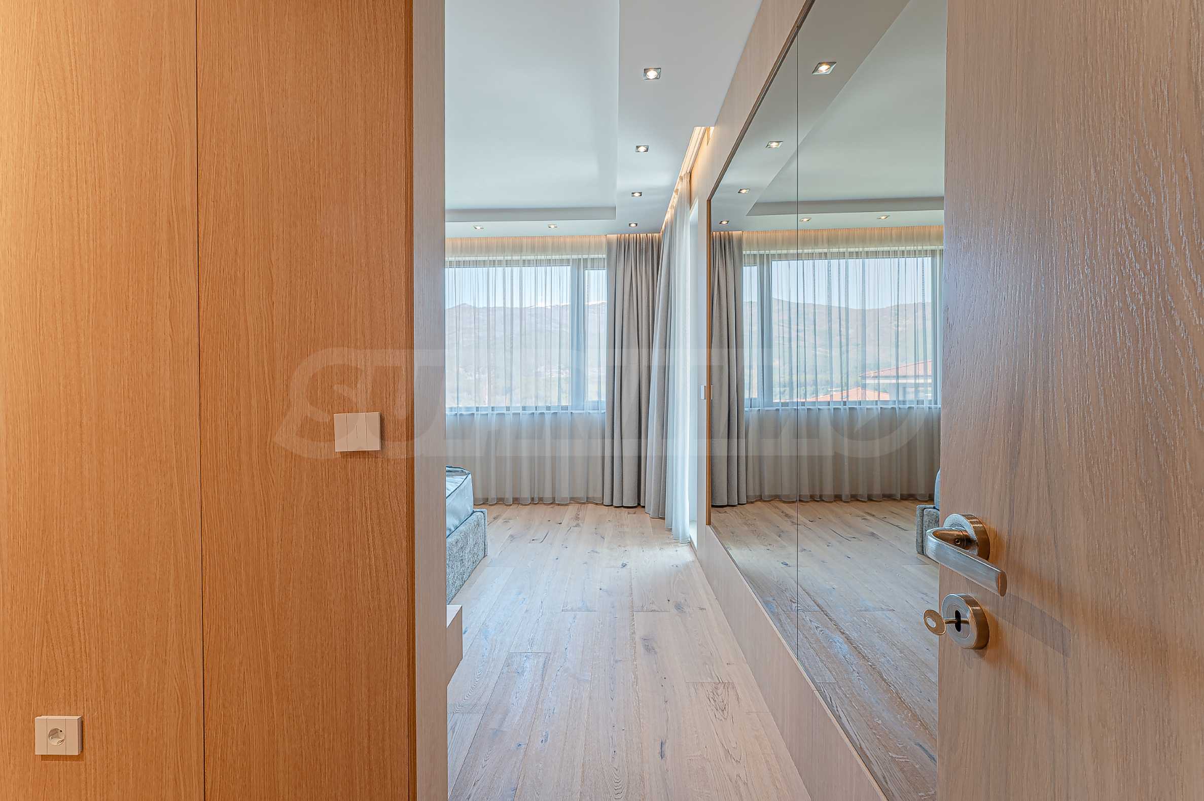 По вътрешни стълби се достига до втория етаж, който се заема от три спални, и спиращи дъха гледки към Витоша и цялата територия на комплекса.