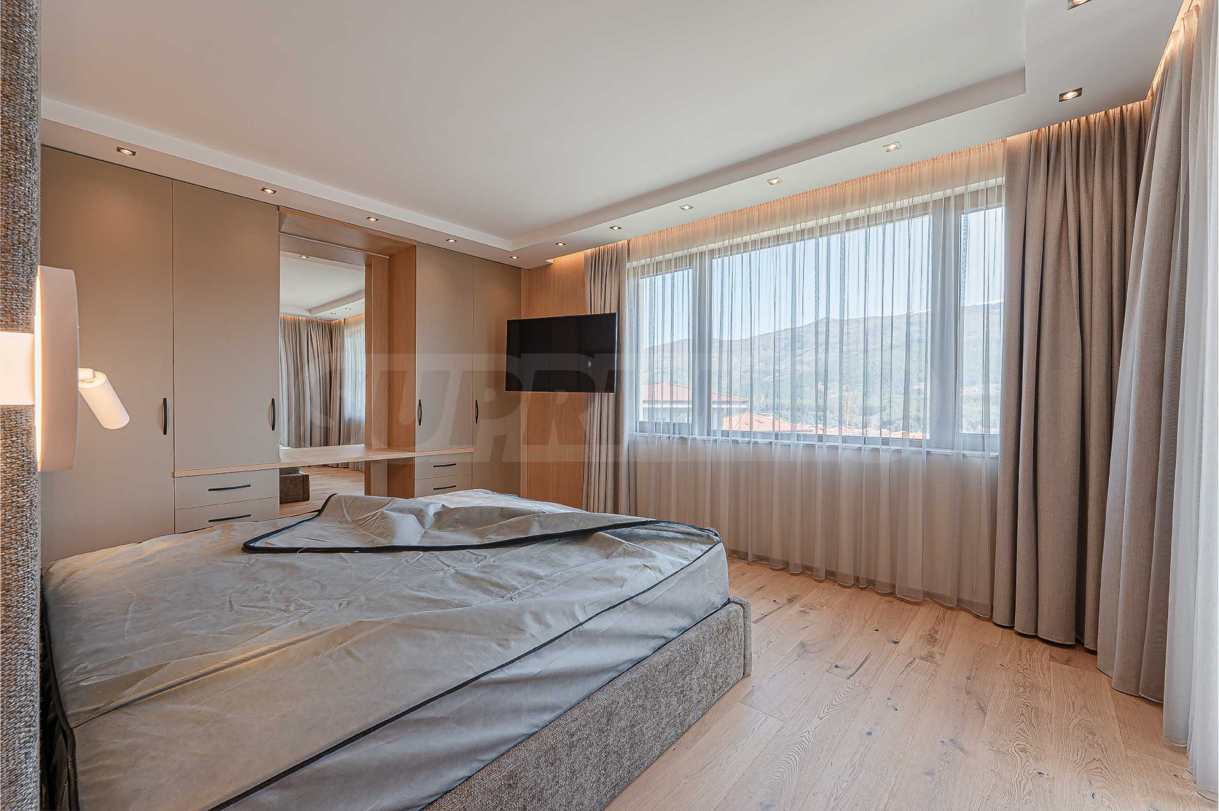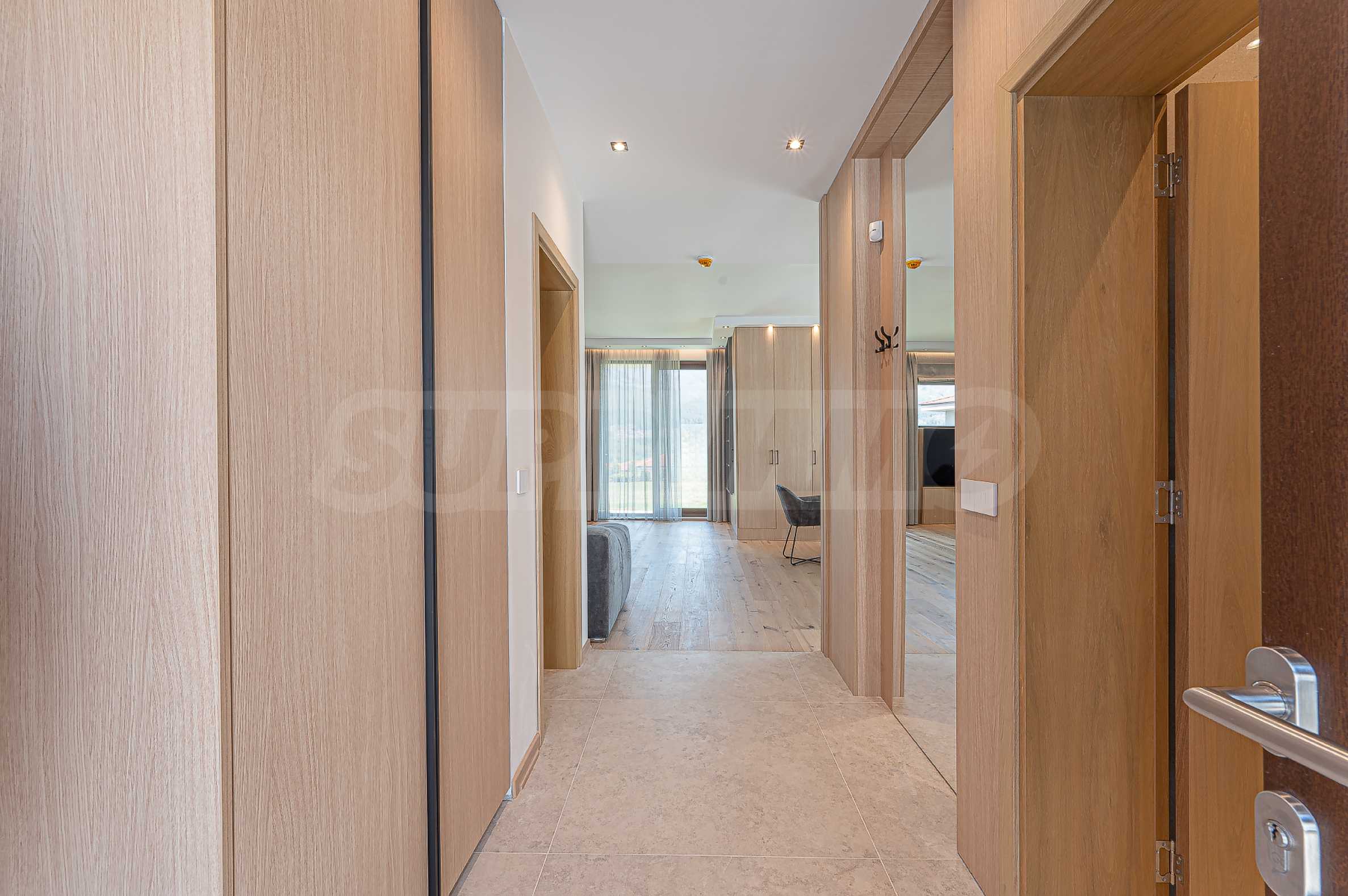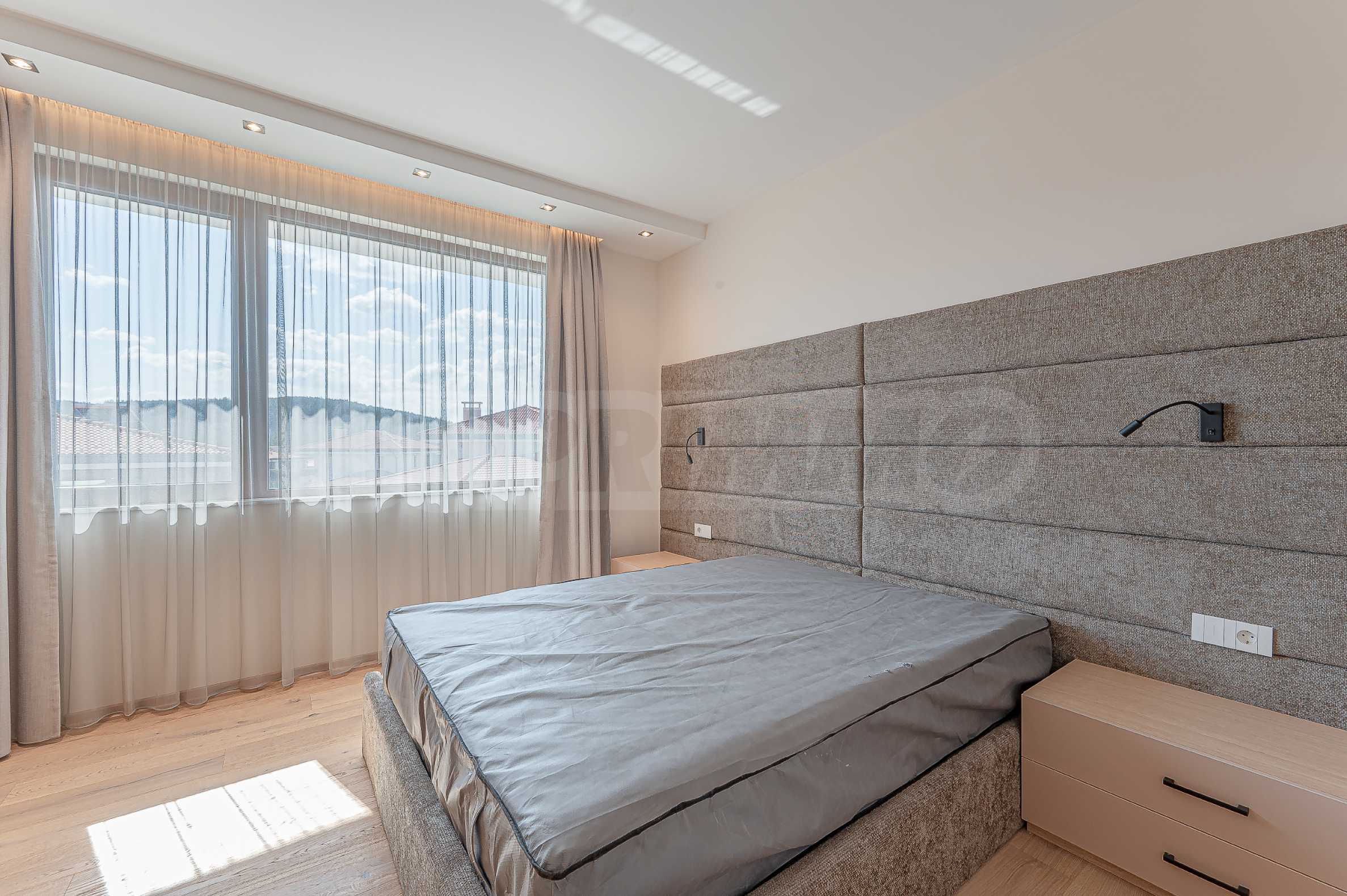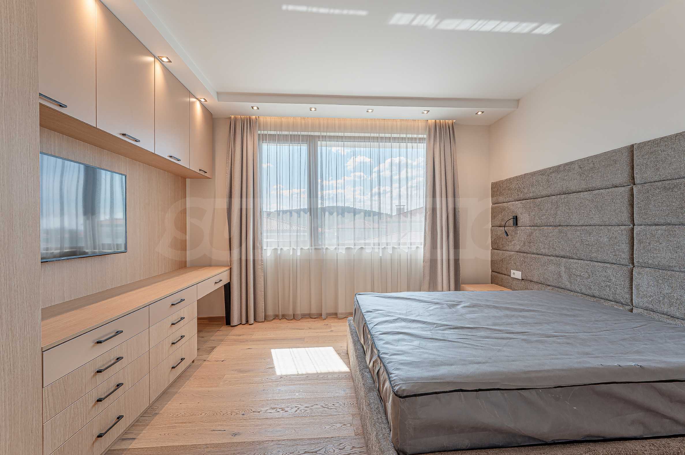 По вътрешни стълби се достига до втория етаж, който се заема от три спални, и спиращи дъха гледки към Витоша и цялата територия на комплекса.