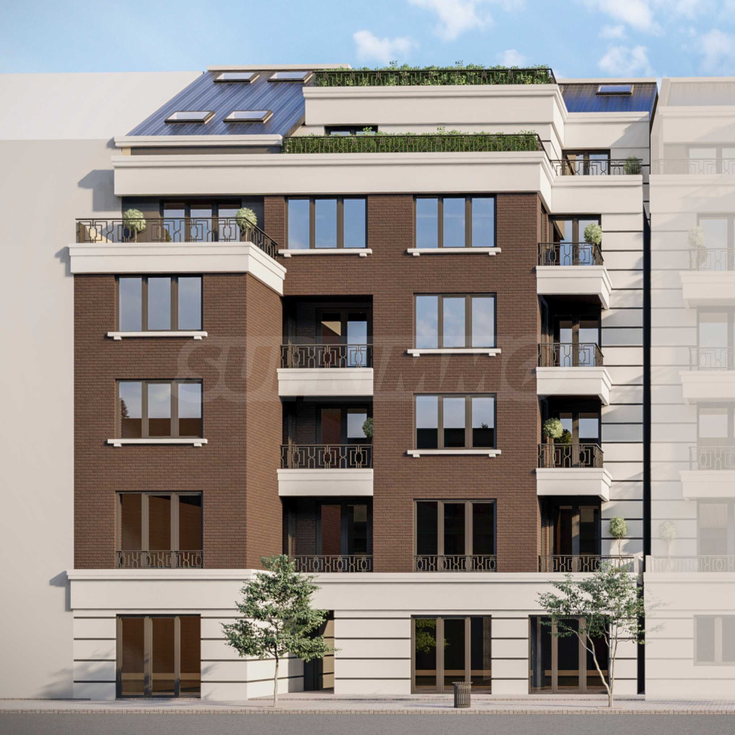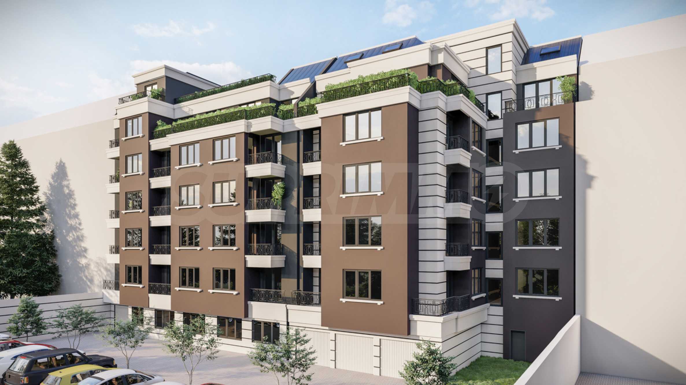 Жилищната сграда предлага модерна фасада, решена е на 7 етажа, с разпределени 16 апартамента - двустайни и тристайни с площ от 72 до 124 кв.м. Паркирането е решено с паркоместа и гаражи в подземно ниво и на ниво партер, и с паркоместа в двора на сградата.