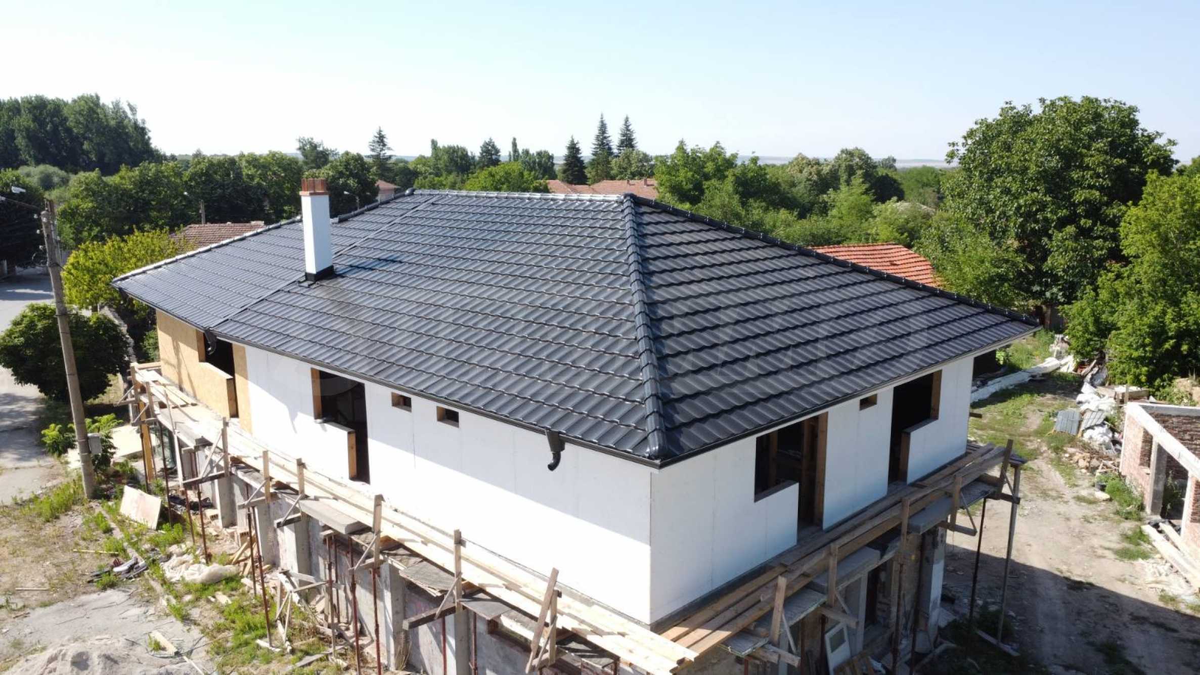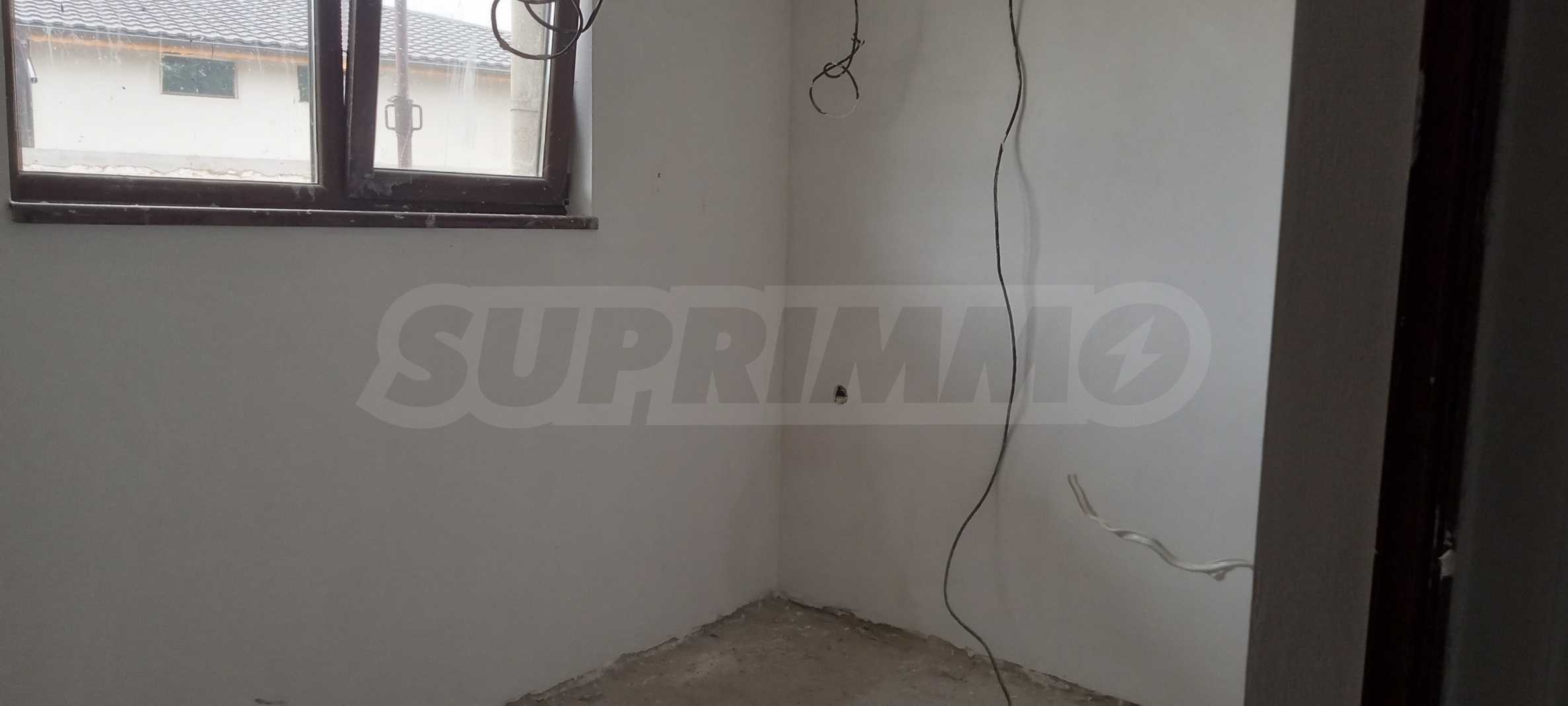 Първият етаж включва просторна рецепция, голям дневен тракт с площ от около 40 кв.м, две уютни спални, баня с тоалетна и напълно оборудвана кухня. Този етаж ще бъде завършен с подови настилки и боядисване, като отоплението е осигурено посредством печка на пелети и подово отопление, гарантиращи комфорт и топлина през зимните месеци.