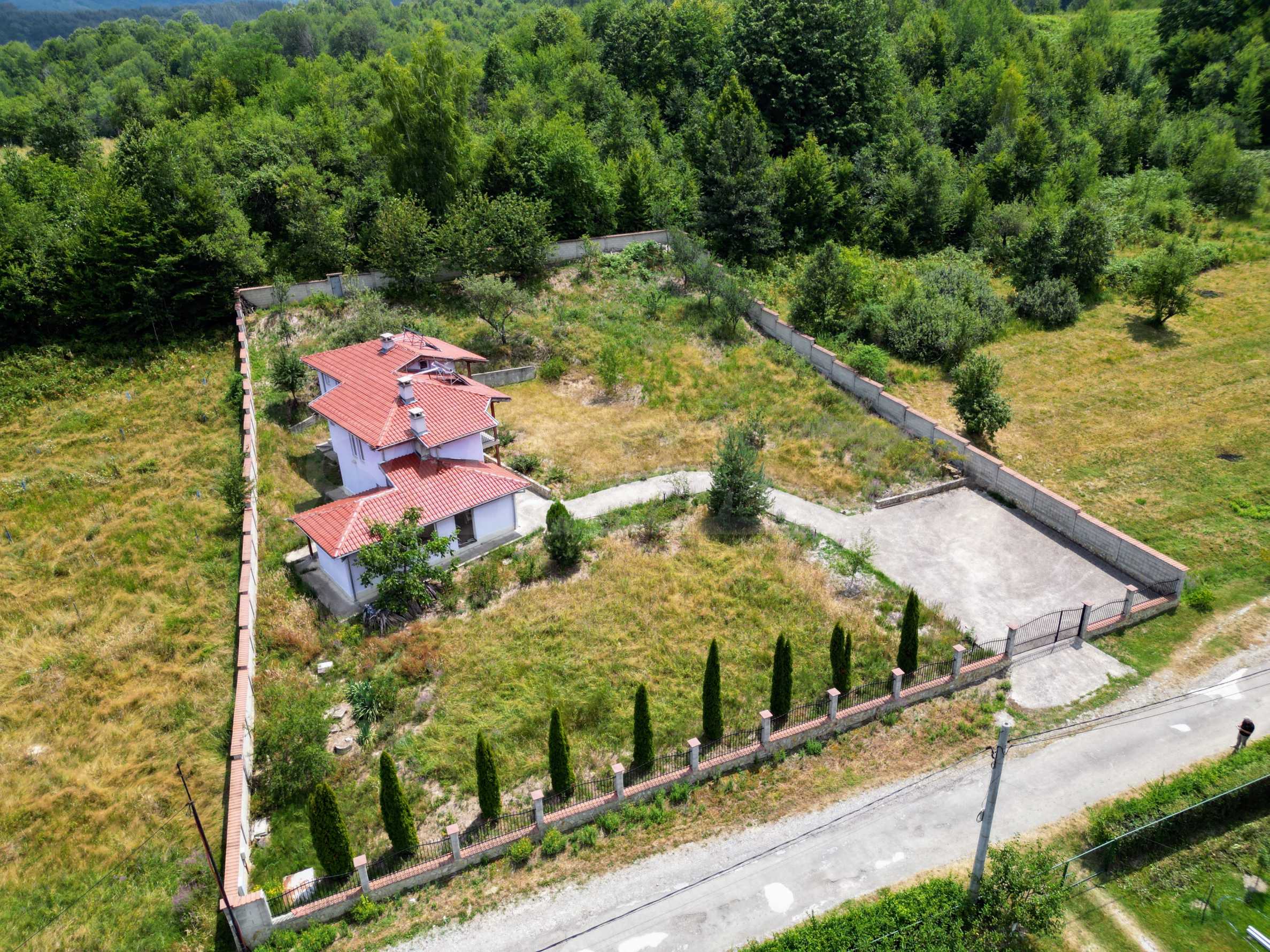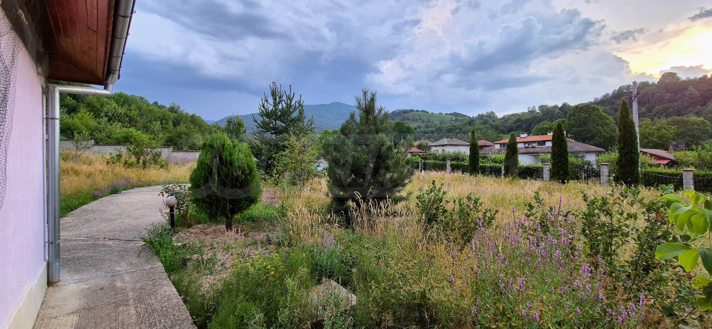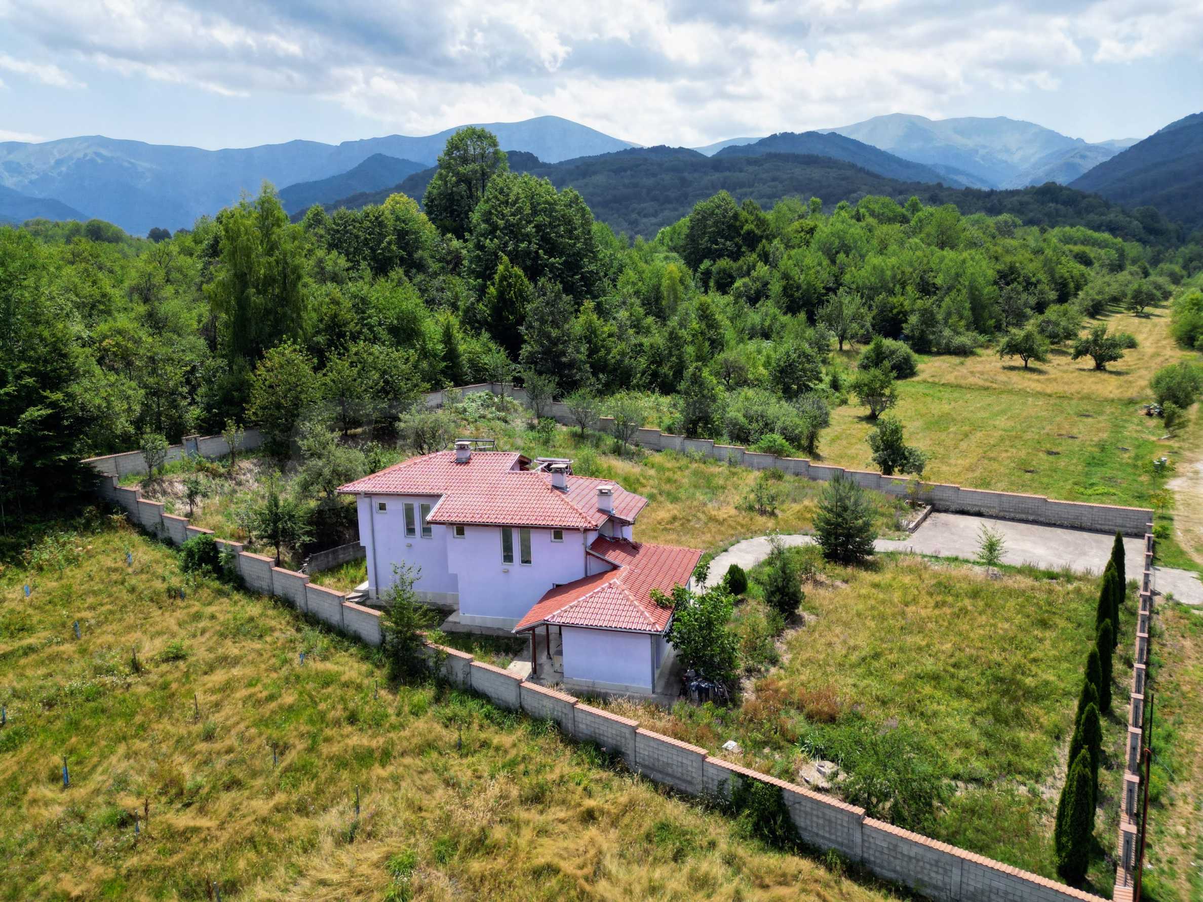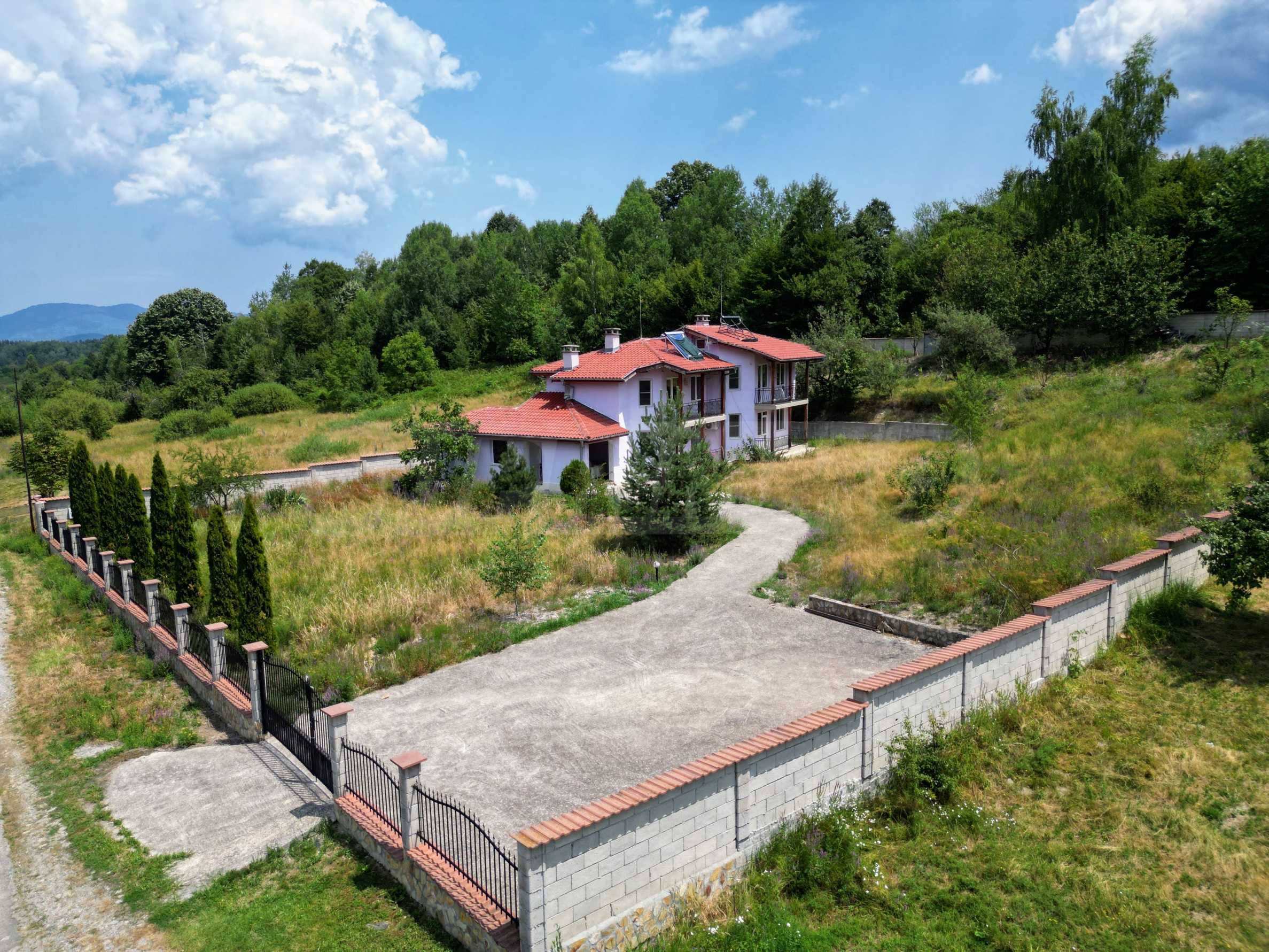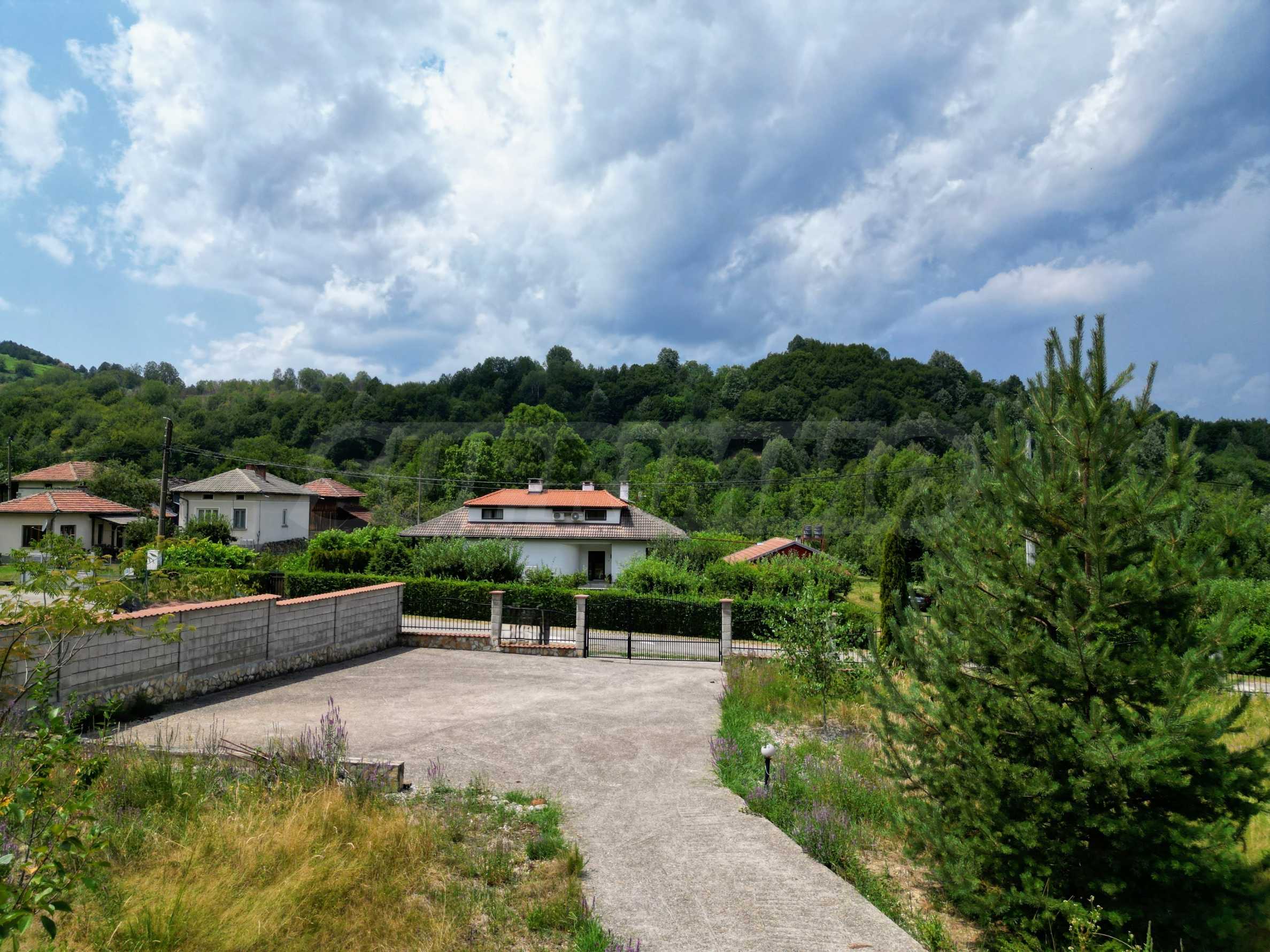 Включва допълнителна постройка, оборудвана като зона за барбекю, идеална за семейни и приятелски събирания и помощно помещение, където можете да съхранявате инструменти и оборудване. Масивната ограда гарантира пълна сигурност и уединение а паркингът до входа осигурява удобство за вас и вашите гости.