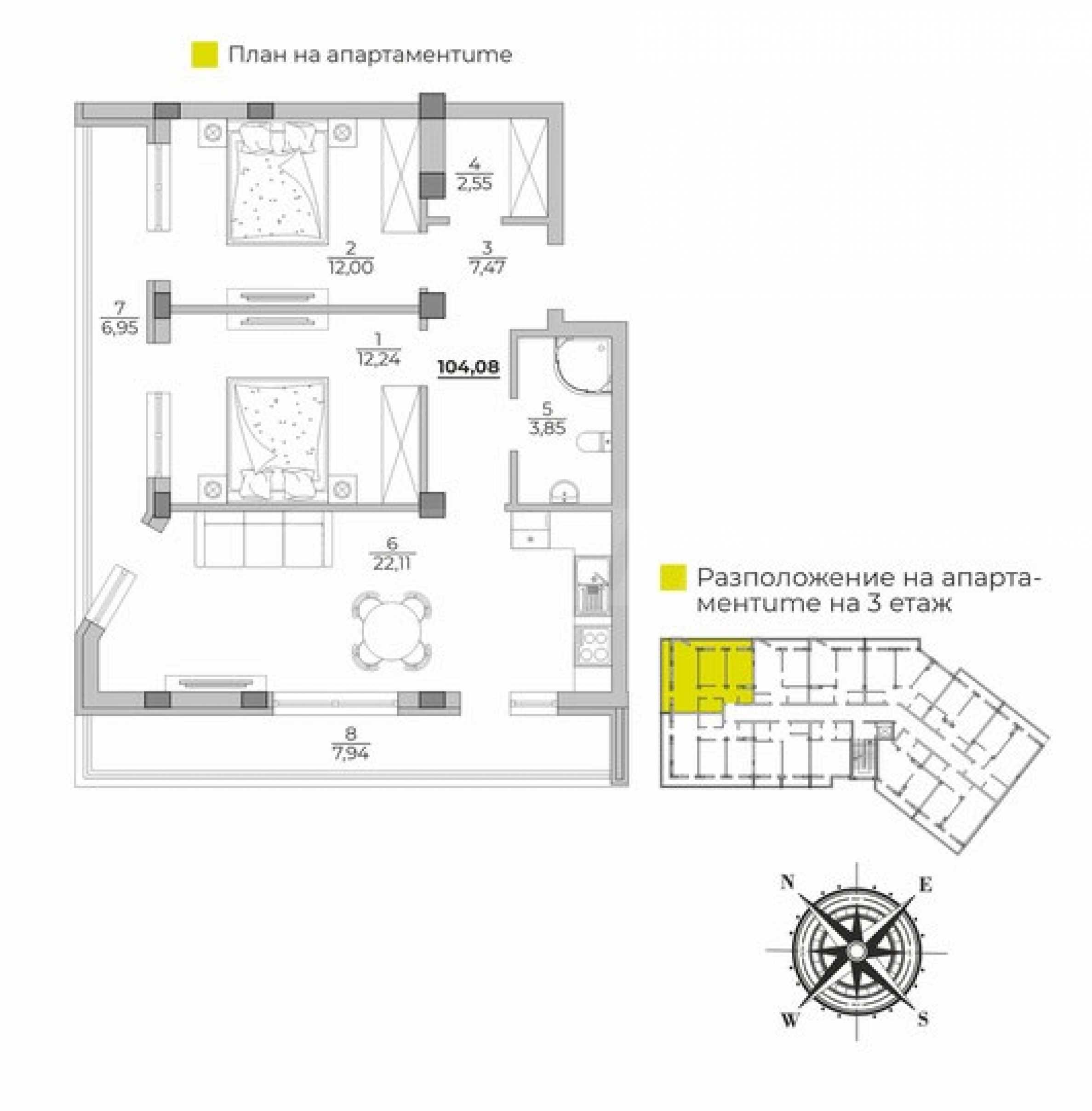 Имотът с обща площ от 104.08 кв.м се намира на 2-ри етаж от 5.