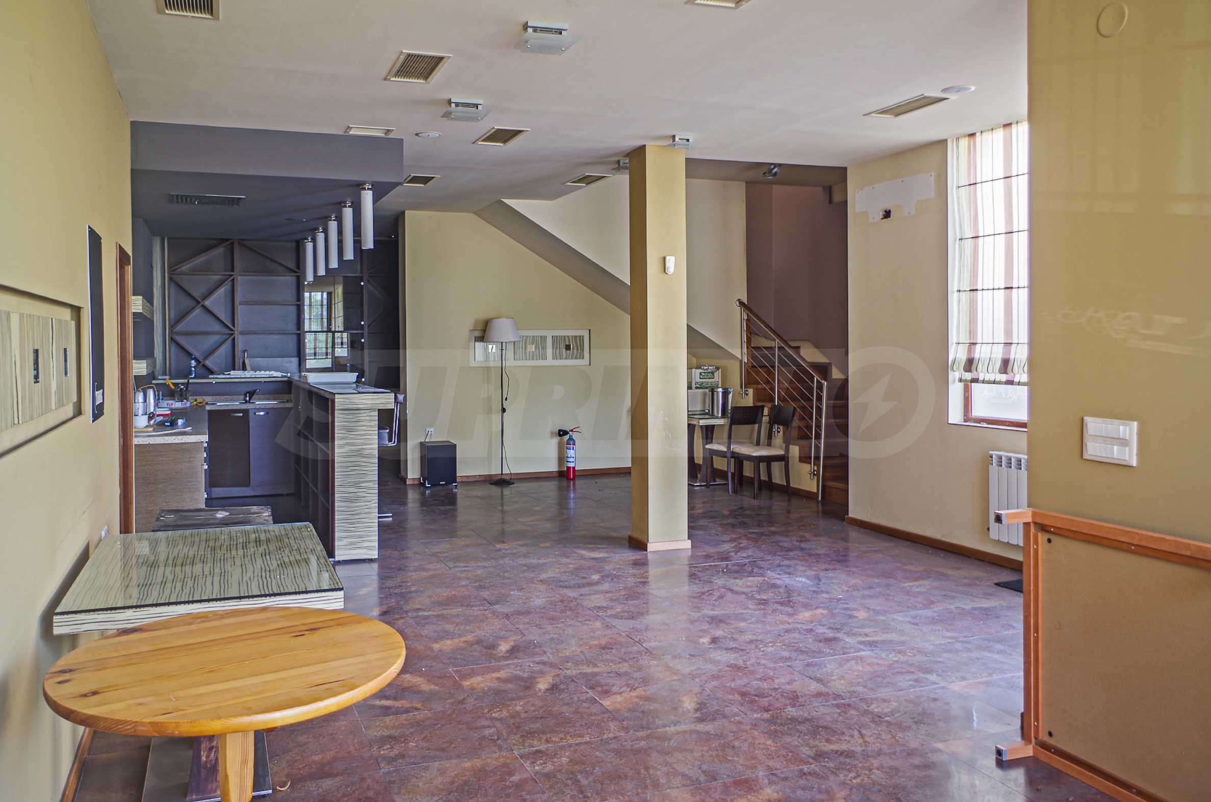 Втори етаж: Второто голямо общо помещение, което е изпълнено със светлина и предлага още по-големи възможности за организиране на работната среда. Настилката тук е от висококачествен мокет. На този етаж също има бар кът, който е подходящ за отдих на служителите. Голямото предимство на втория етаж е просторната тераса с гледка към града, която предоставя възможност за открито пространство, подходящо за кафе паузи или неформални срещи с клиенти и партньори.