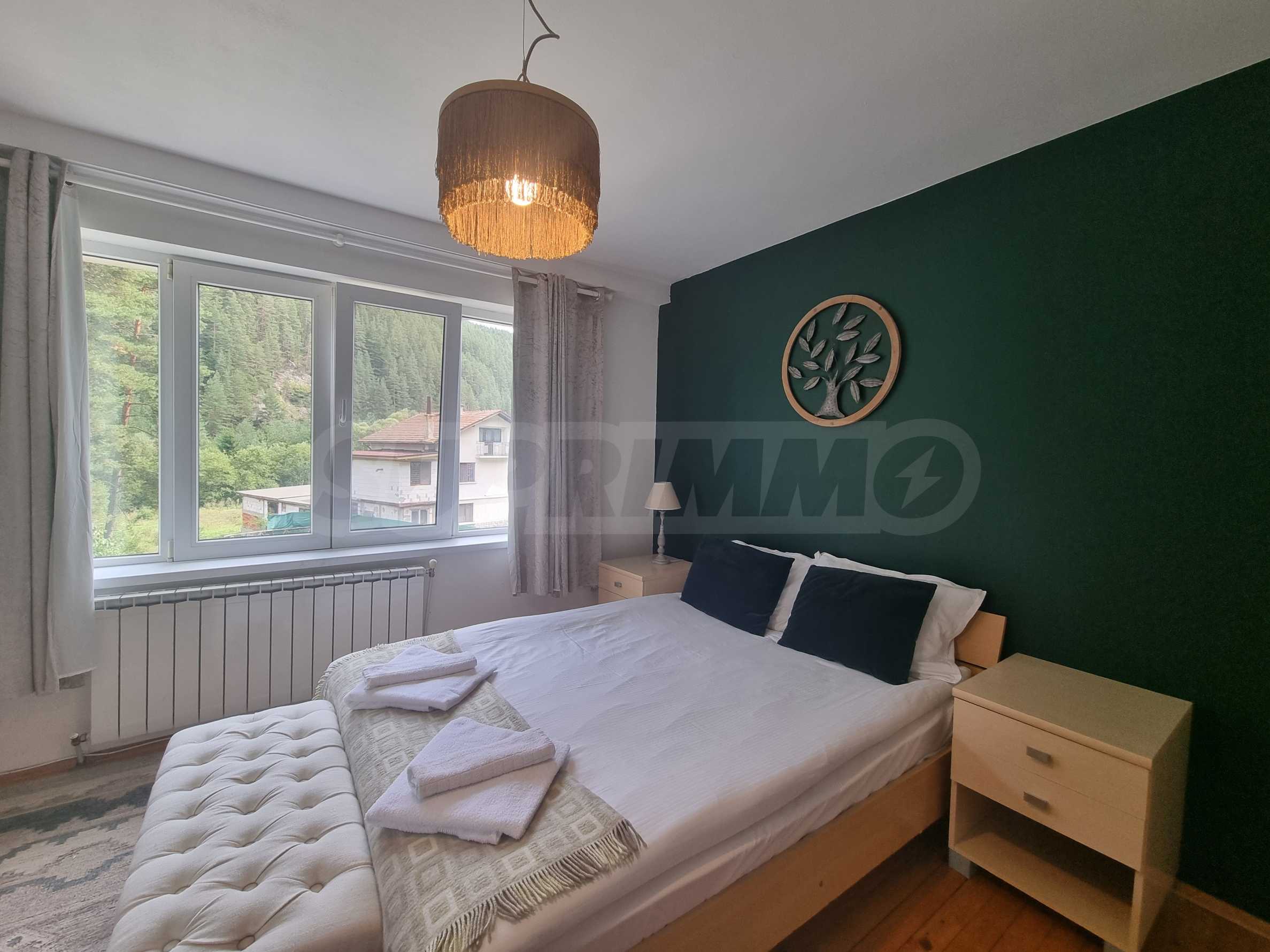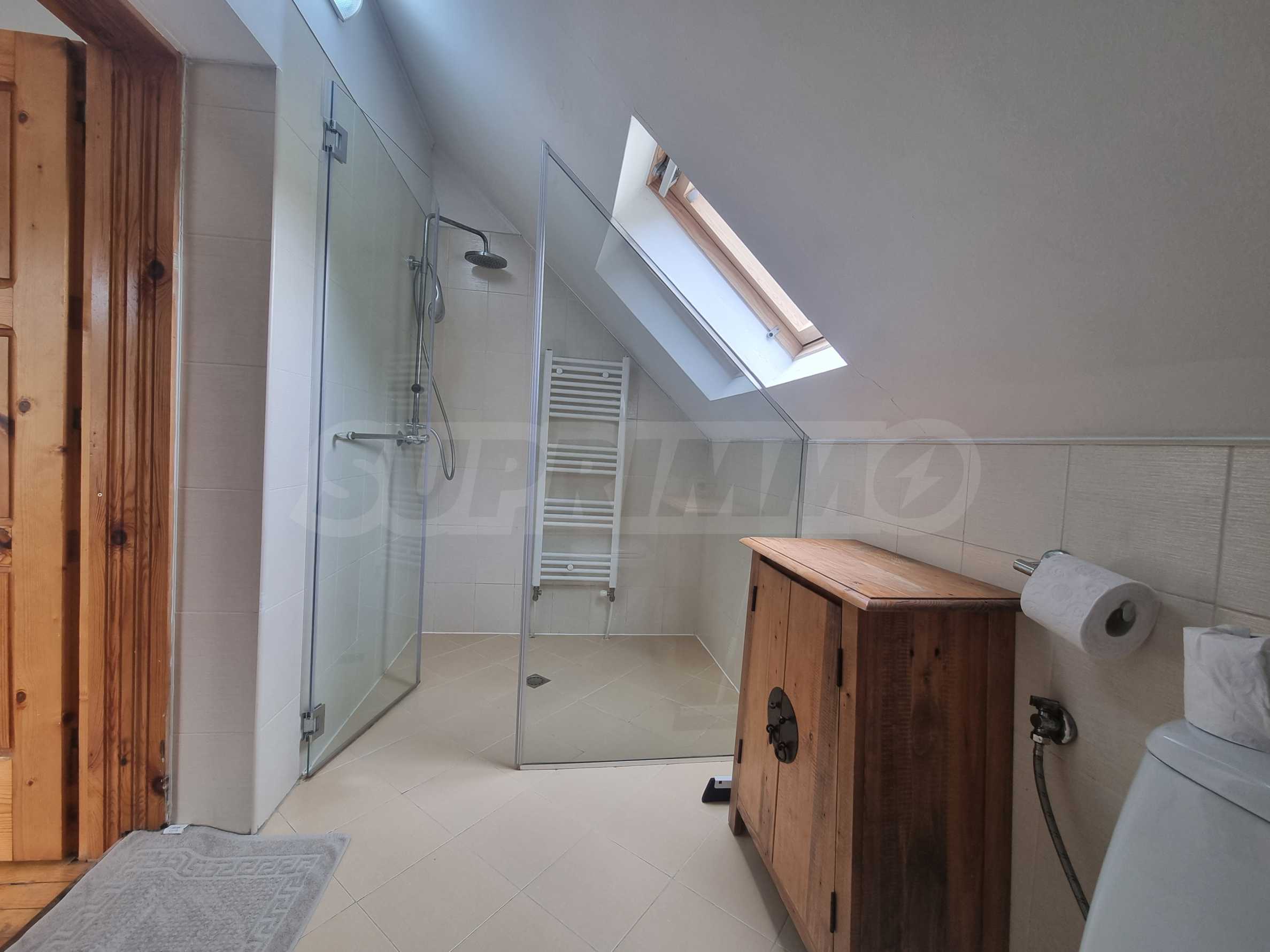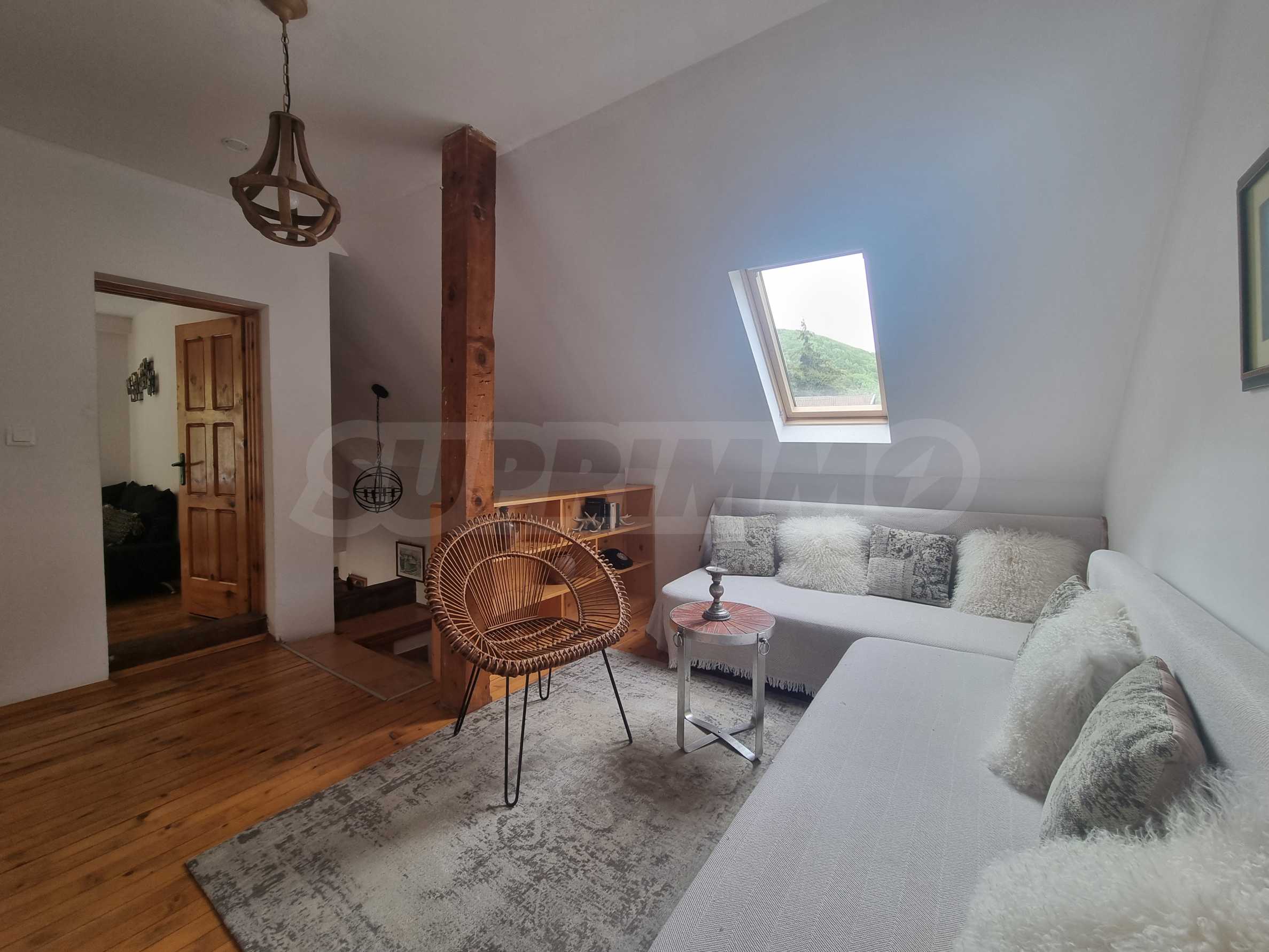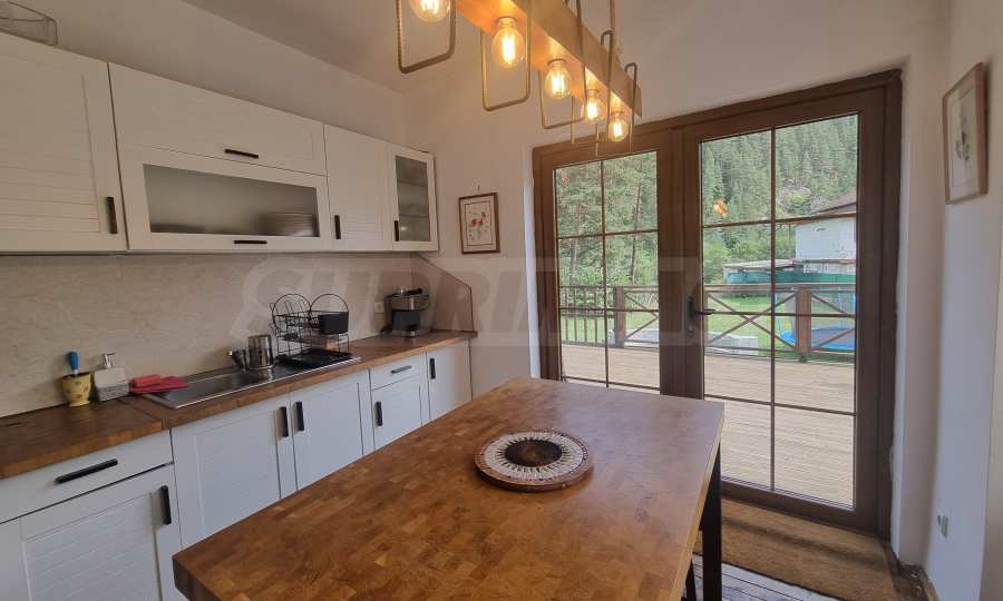 Тази напълно обзаведена планинска вила е в безупречно състояние, готова за обитаване. Материалите и довършителните работи са на най-високо ниво, извършени по индивидуален интериорен проект. Мебелите са в комбинация от дърво и кожа, стилът е модерен, планински, изцяло съпоставим с най-добрите планински къщи тип 'chalet' в алпийските курорти на Западна Европа.