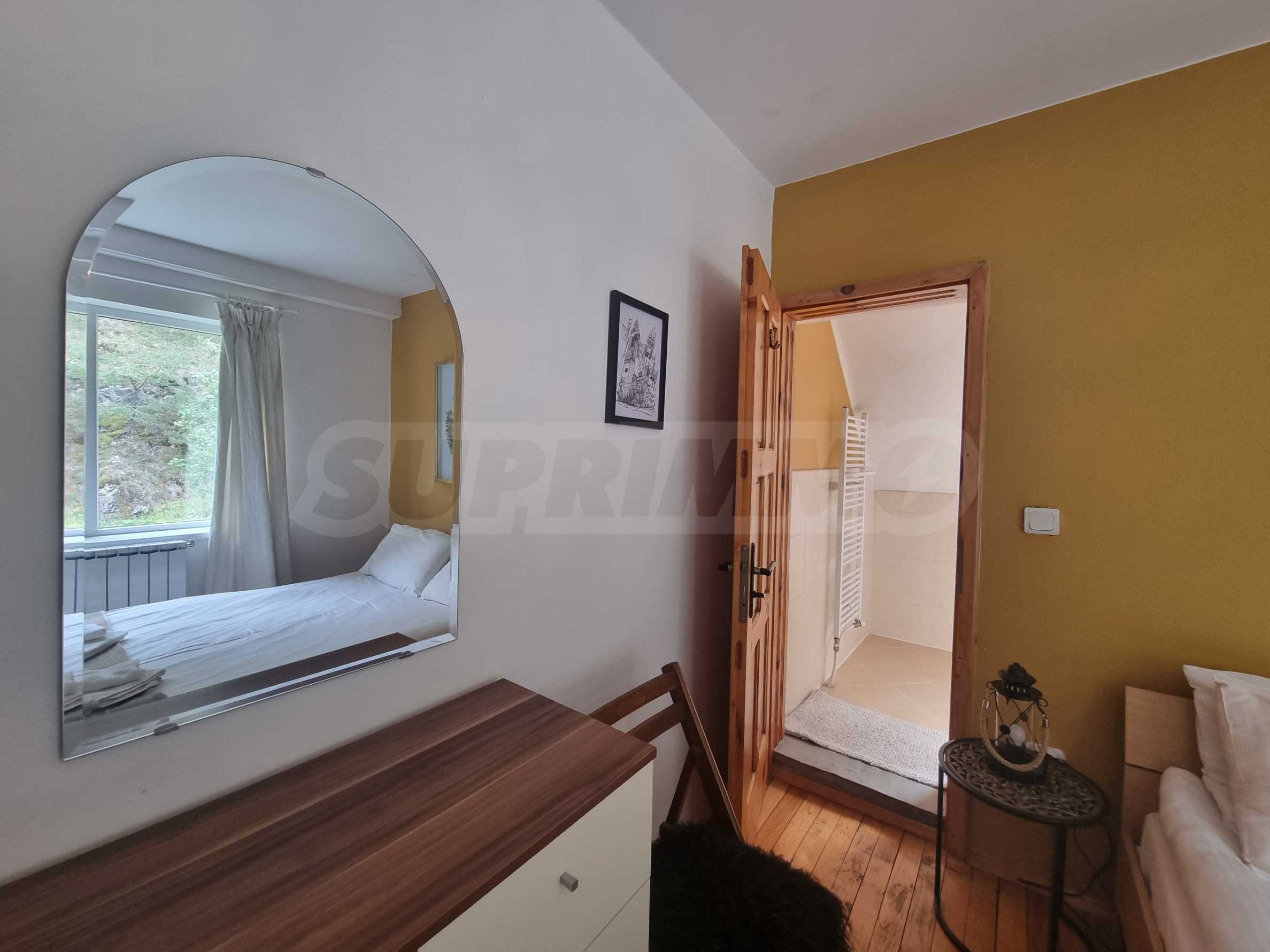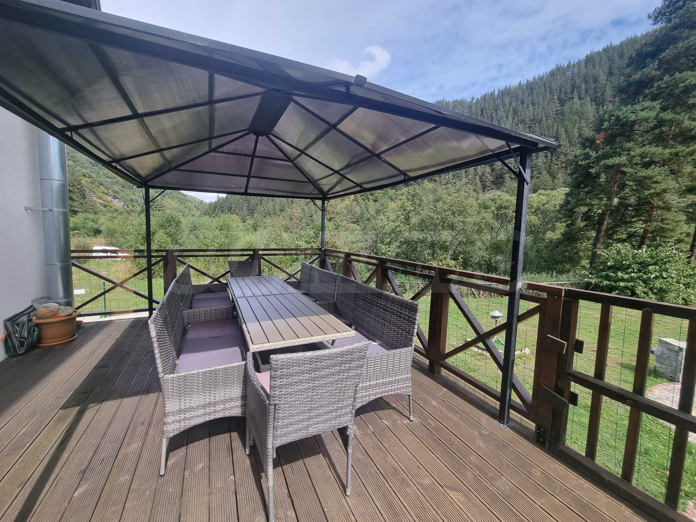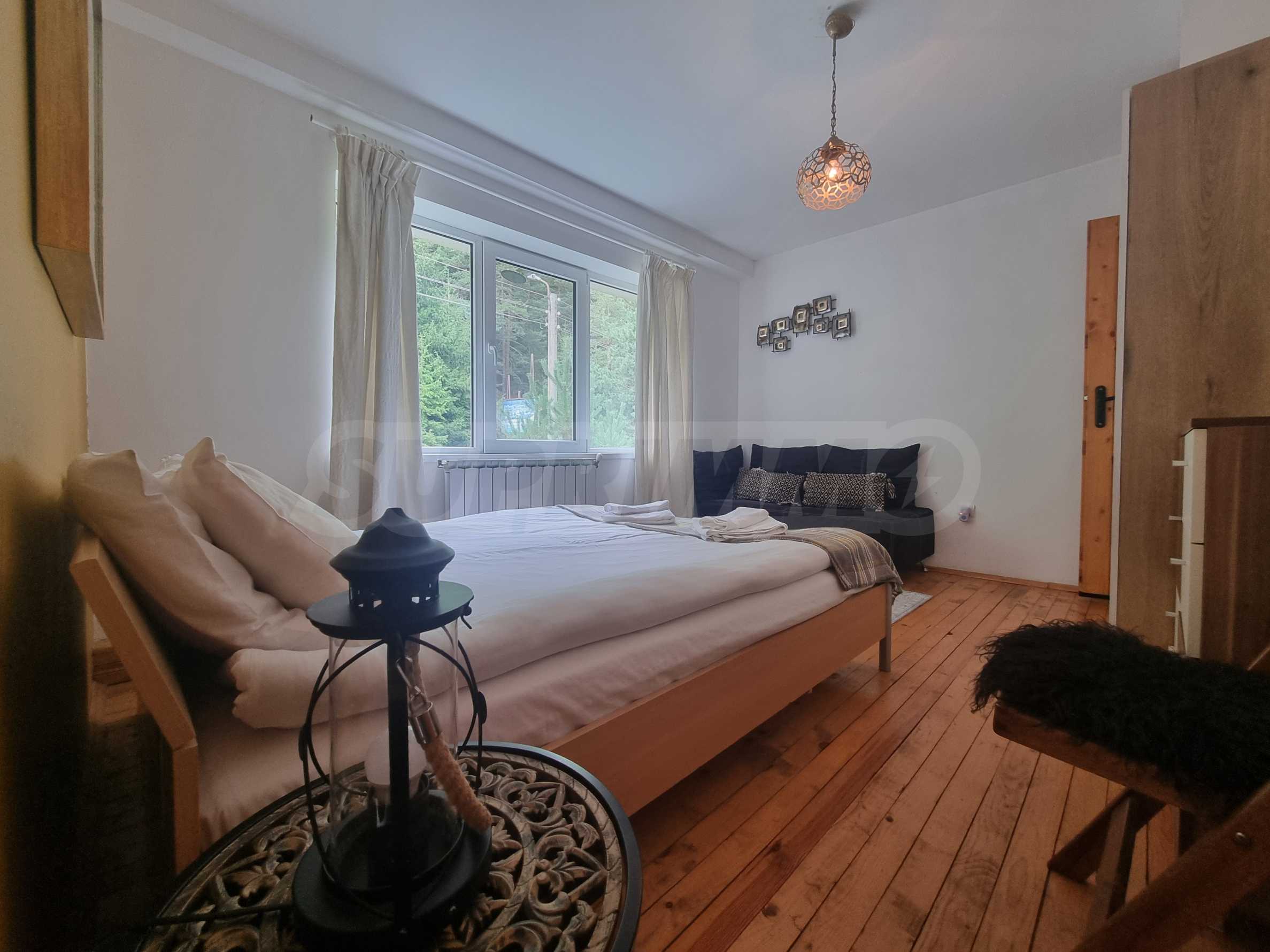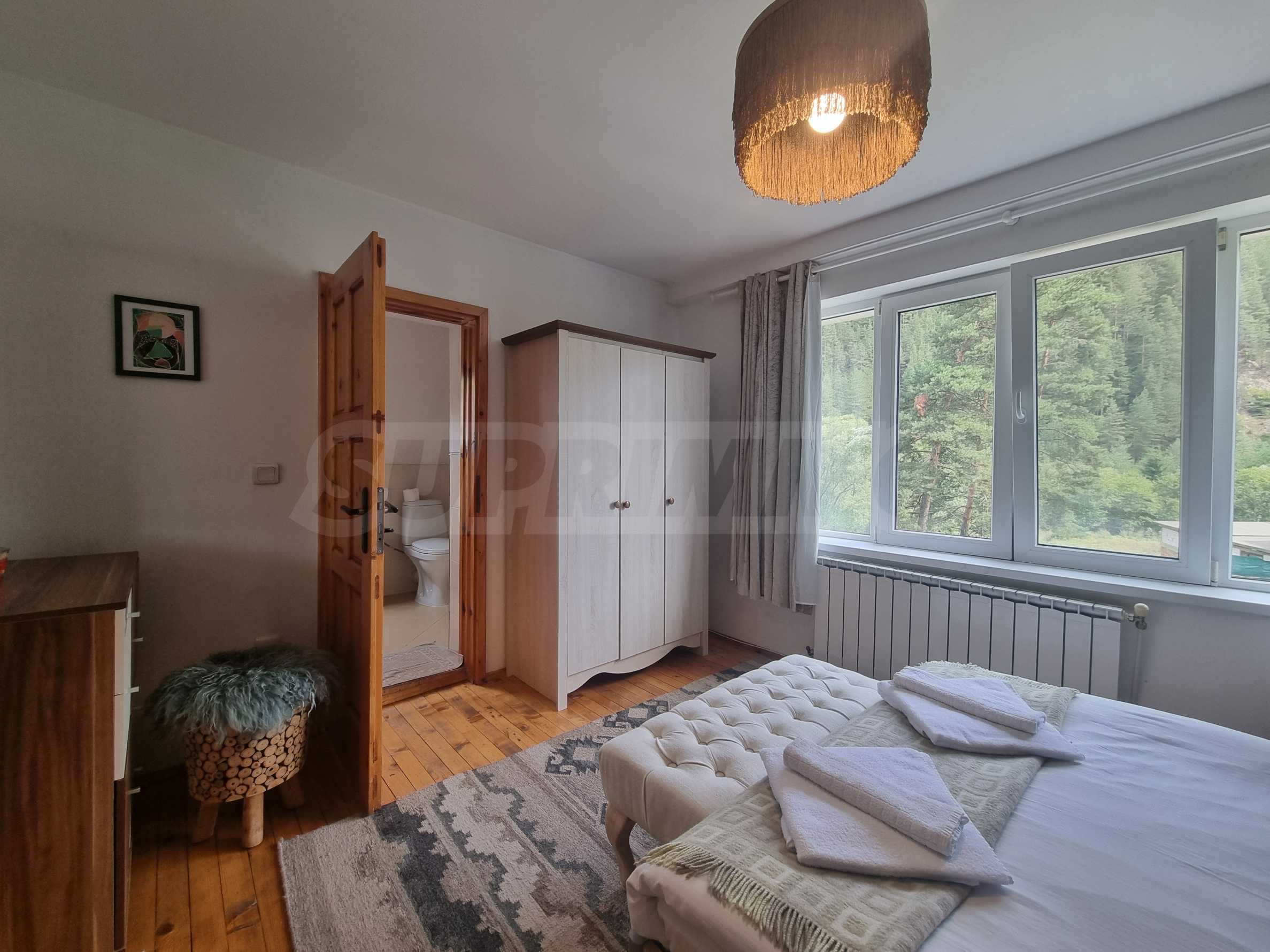 Тази напълно обзаведена планинска вила е в безупречно състояние, готова за обитаване. Материалите и довършителните работи са на най-високо ниво, извършени по индивидуален интериорен проект. Мебелите са в комбинация от дърво и кожа, стилът е модерен, планински, изцяло съпоставим с най-добрите планински къщи тип 'chalet' в алпийските курорти на Западна Европа.