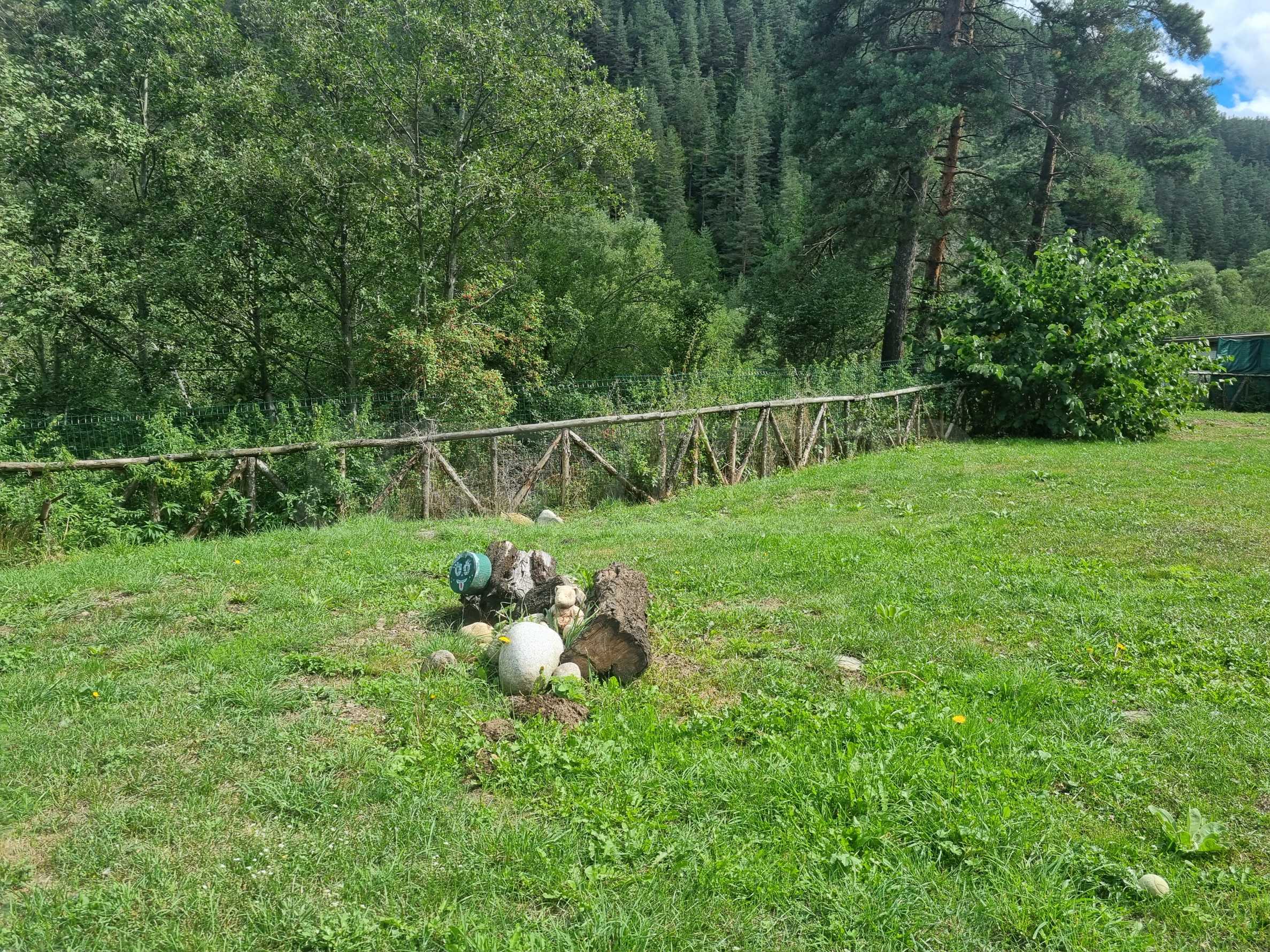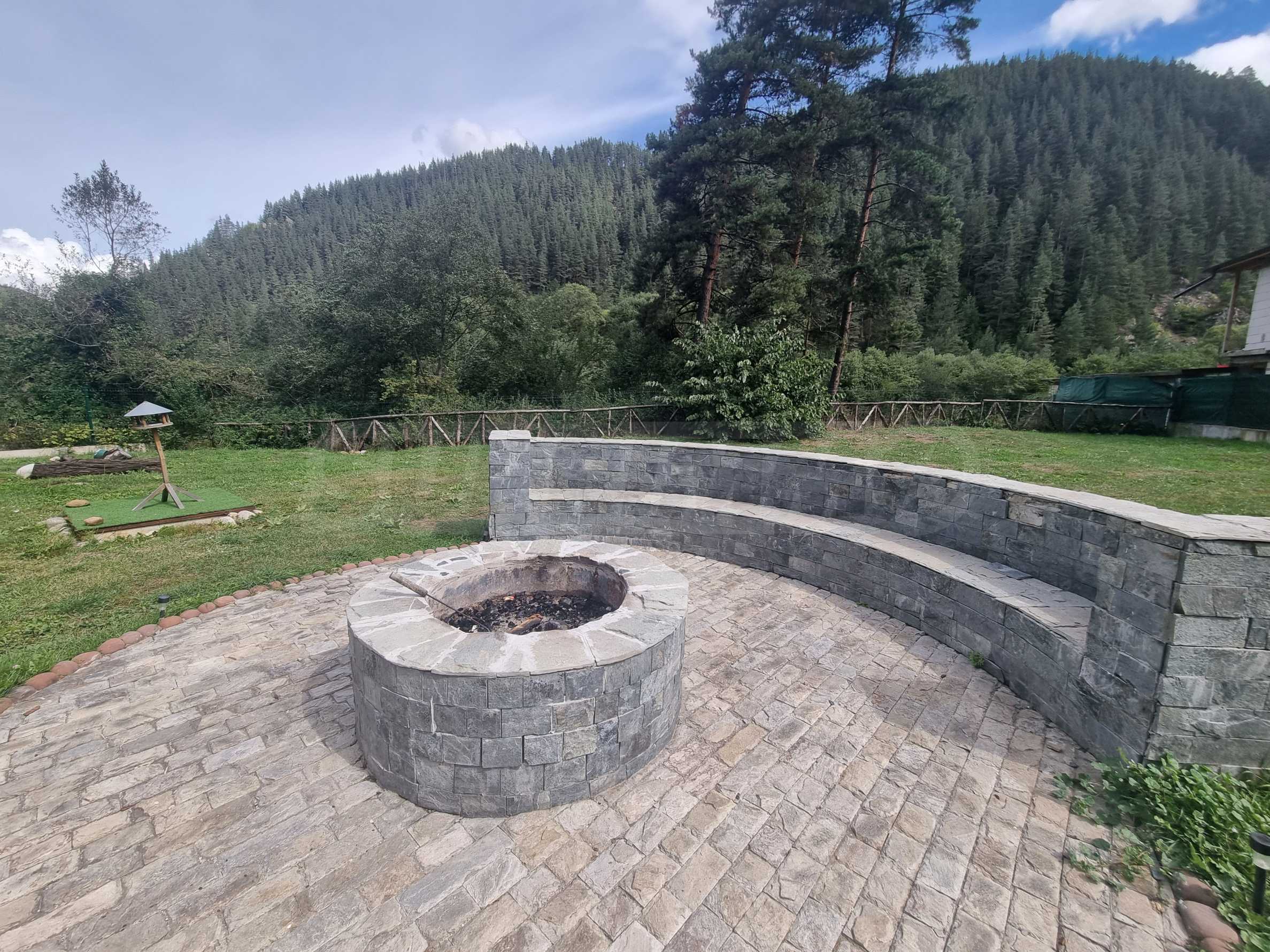 Дворът е с размер от 1200 кв.м., равен и заграден, с гледка към писта Ястребец.