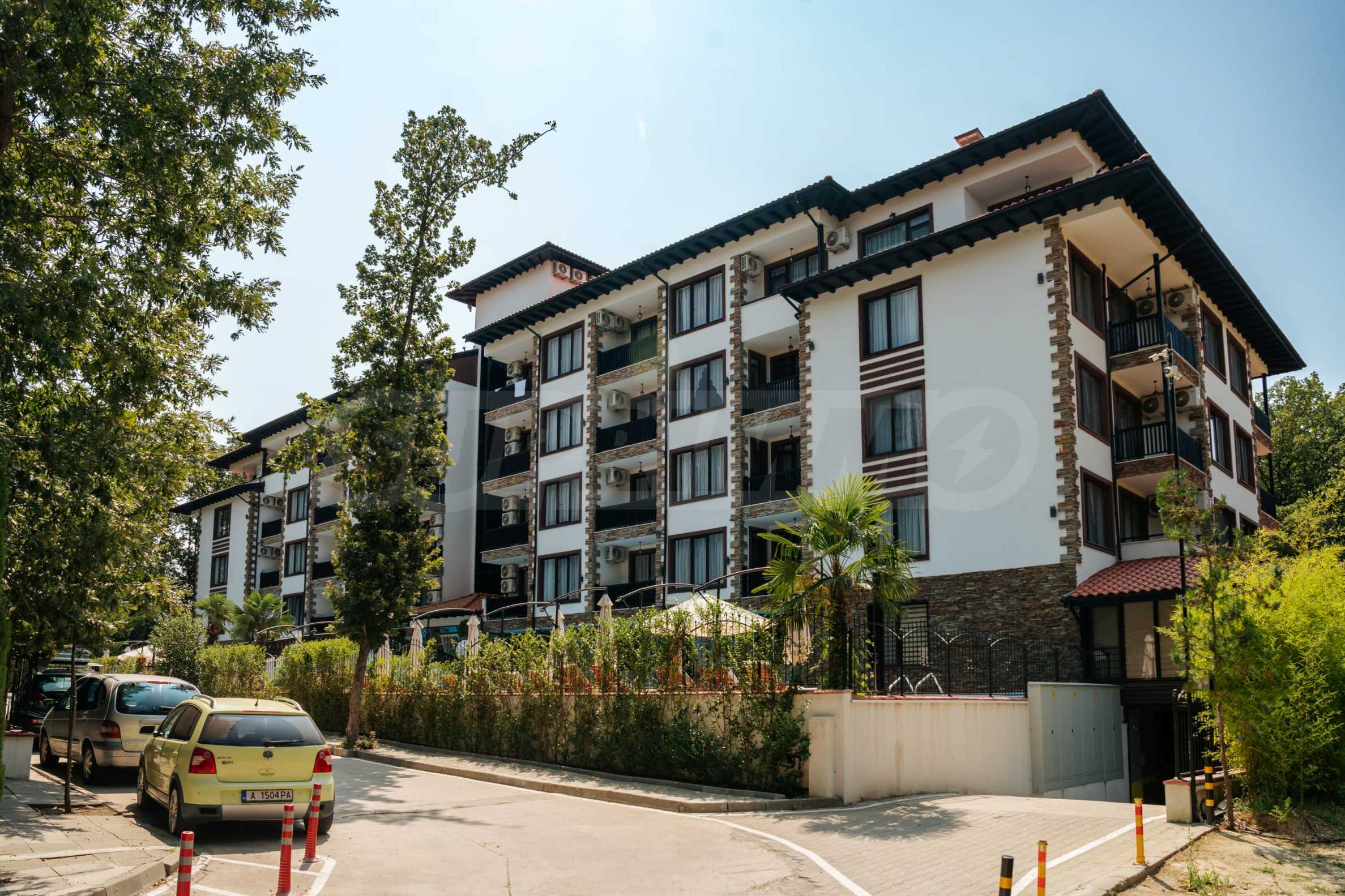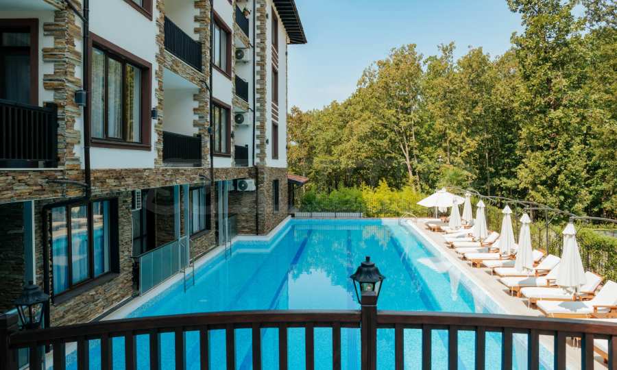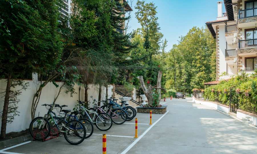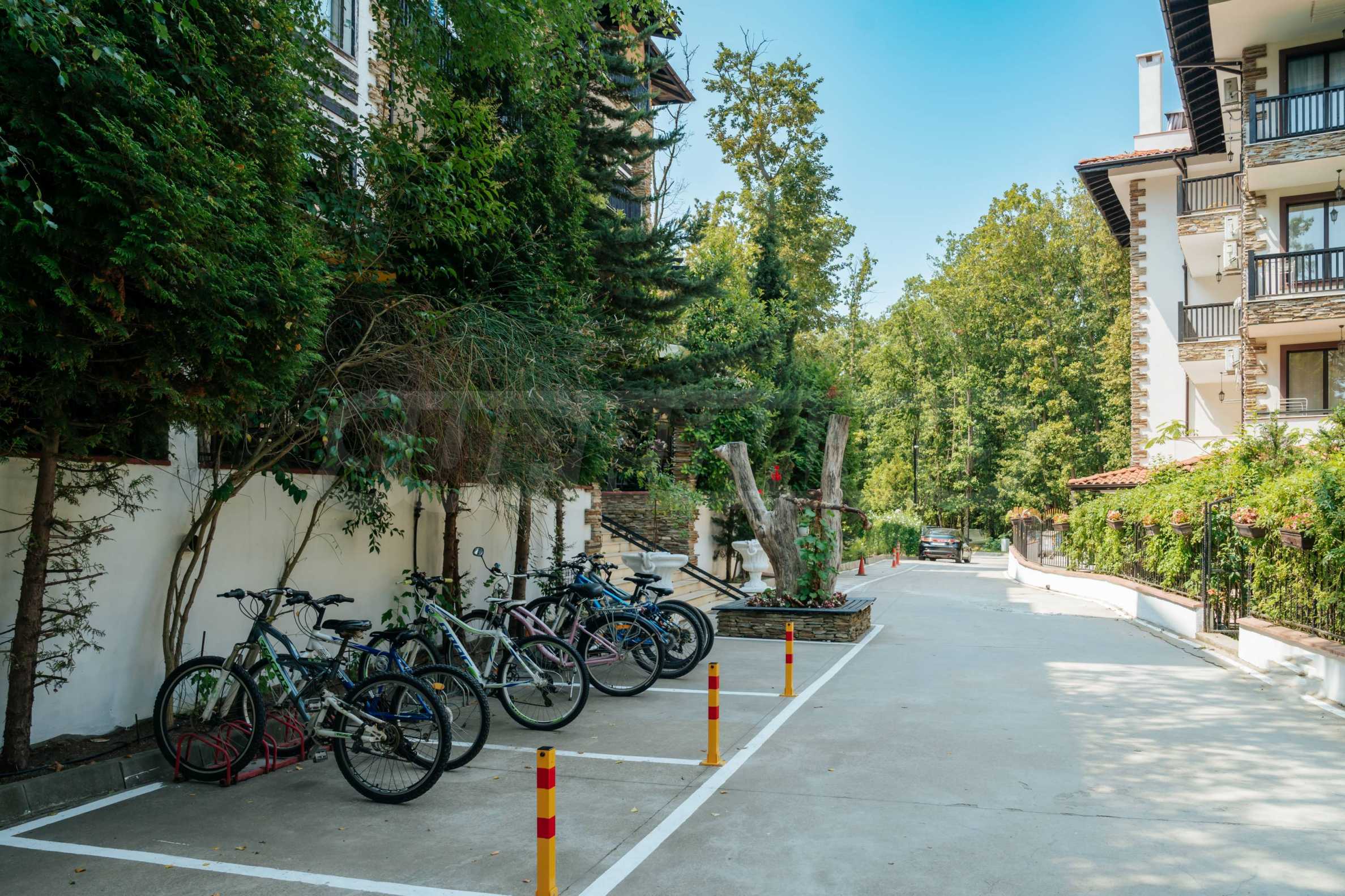 Апартаментът е част от петата фаза от строителството на целогодишния затворен комплекс, разположен в дъбовата гора, сред високи дървета, гъста зеленина, тишина и горския въздух, с лесен достъп до инфраструктурата и плажовете на Приморско. "Зеленият" комплекс предлага отлични удобства за обитаване и отдих, с богат ландшафт с цветя, храсти и дървета, както и прекрасни декорации, басейни и зони за отдих.
