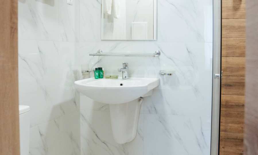 - подове – плочки и ламинат, врати – МДФ.