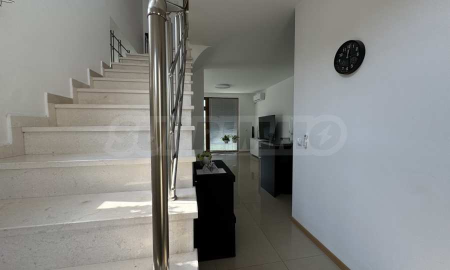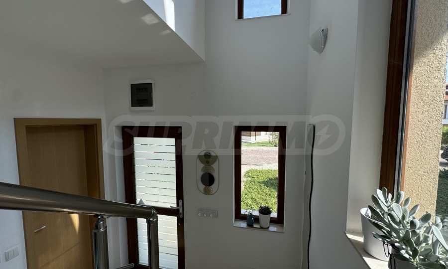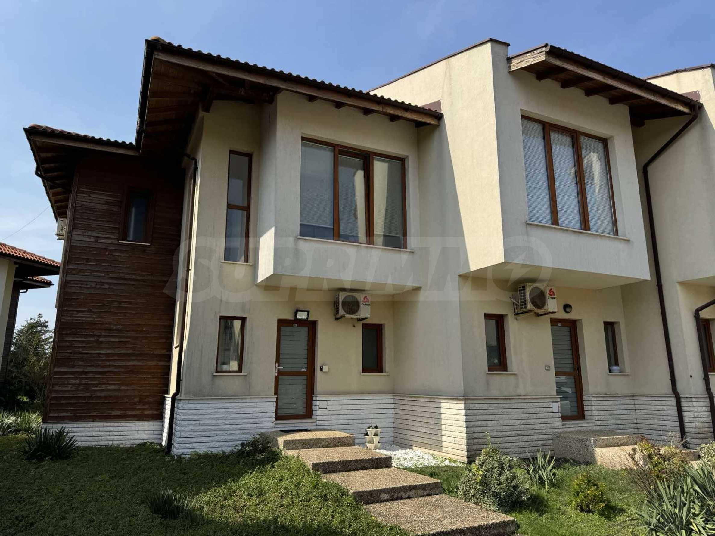 Имотът с РЗП от 118 кв.м е на два етажа и разполага с открит паркинг и собствен двор.