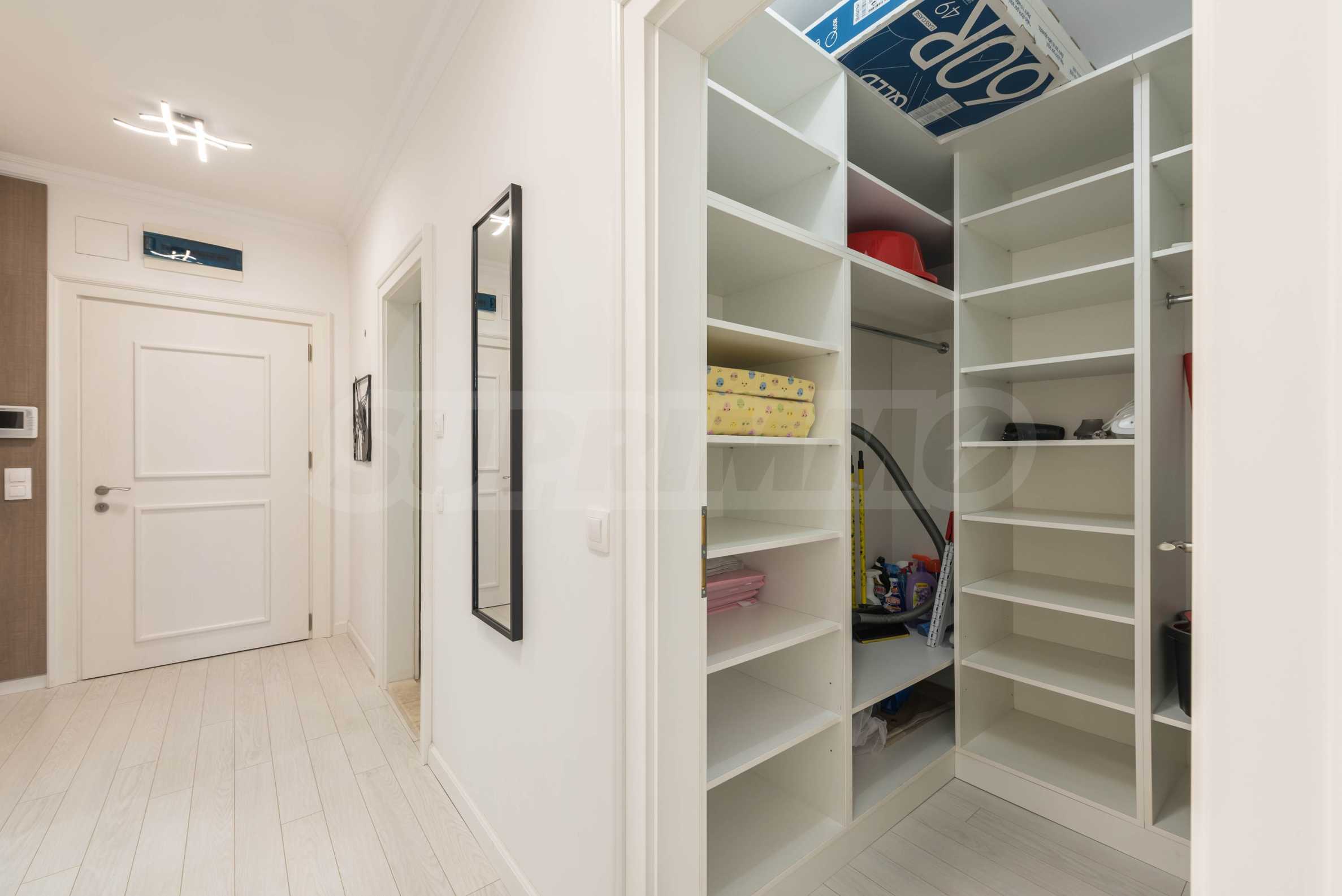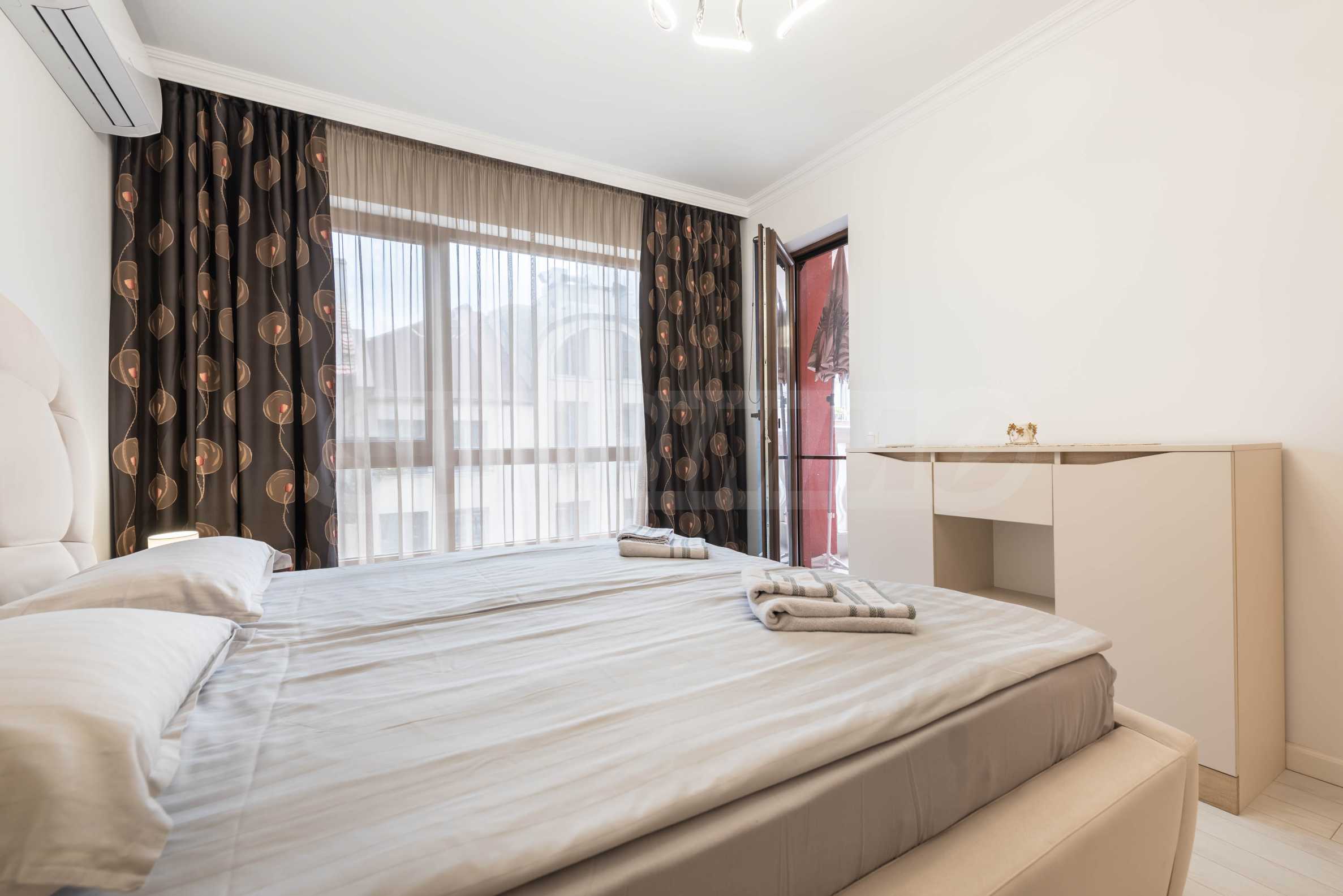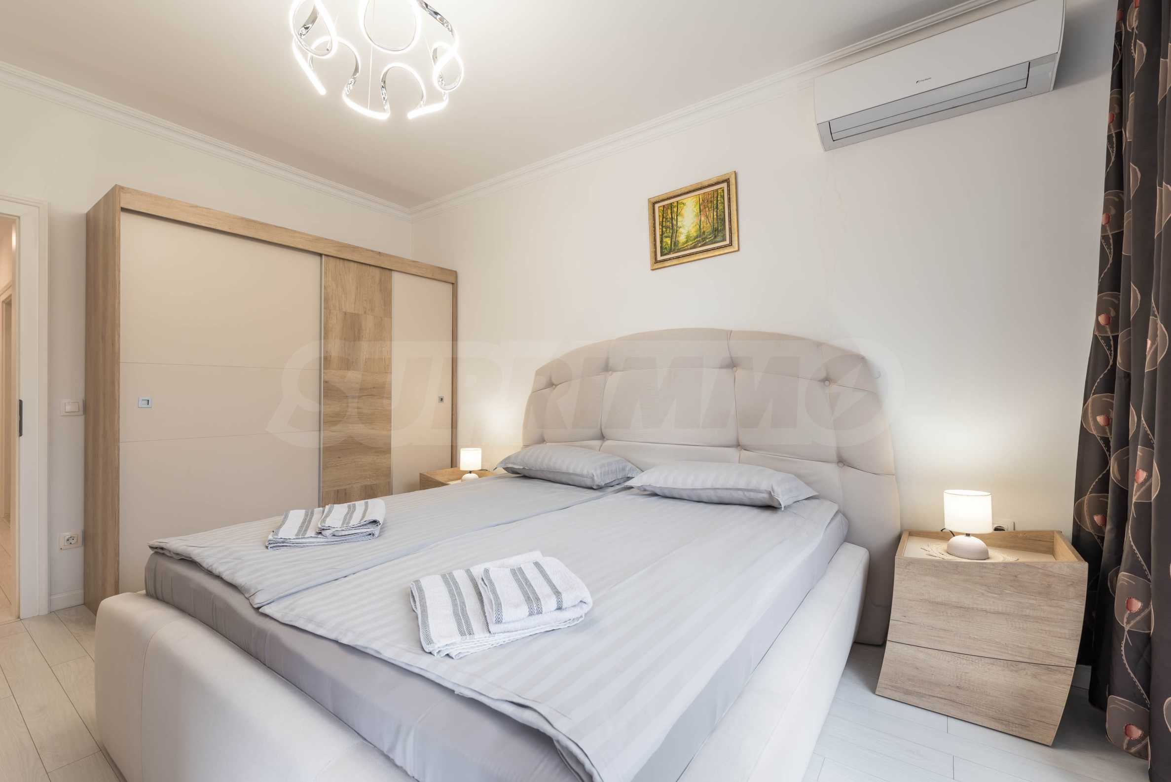 Жилището предлага всички комуникации и удобства за най-комфортния престой. На разположение в имота са електроуреди от висок клас, както и стилно обзавеждане, което създава усещането за уют, лукс и спокойствие. Отоплението е решено с климатици.