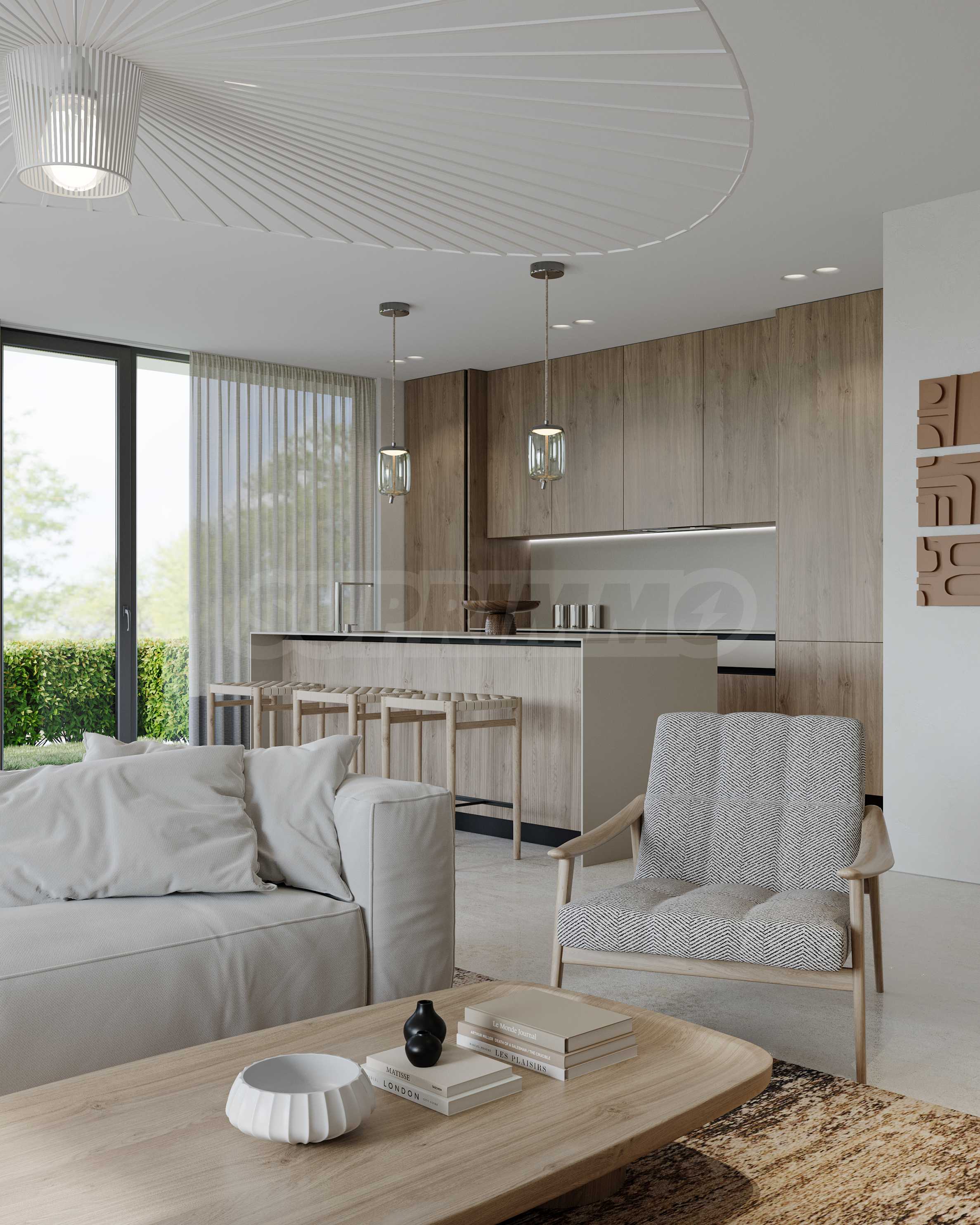 • на втора линия - 24 двуетажни редови къщи, общо 8 структури по три броя, с опция за самостоятелен басейн, с двор и обособени паркоместа;