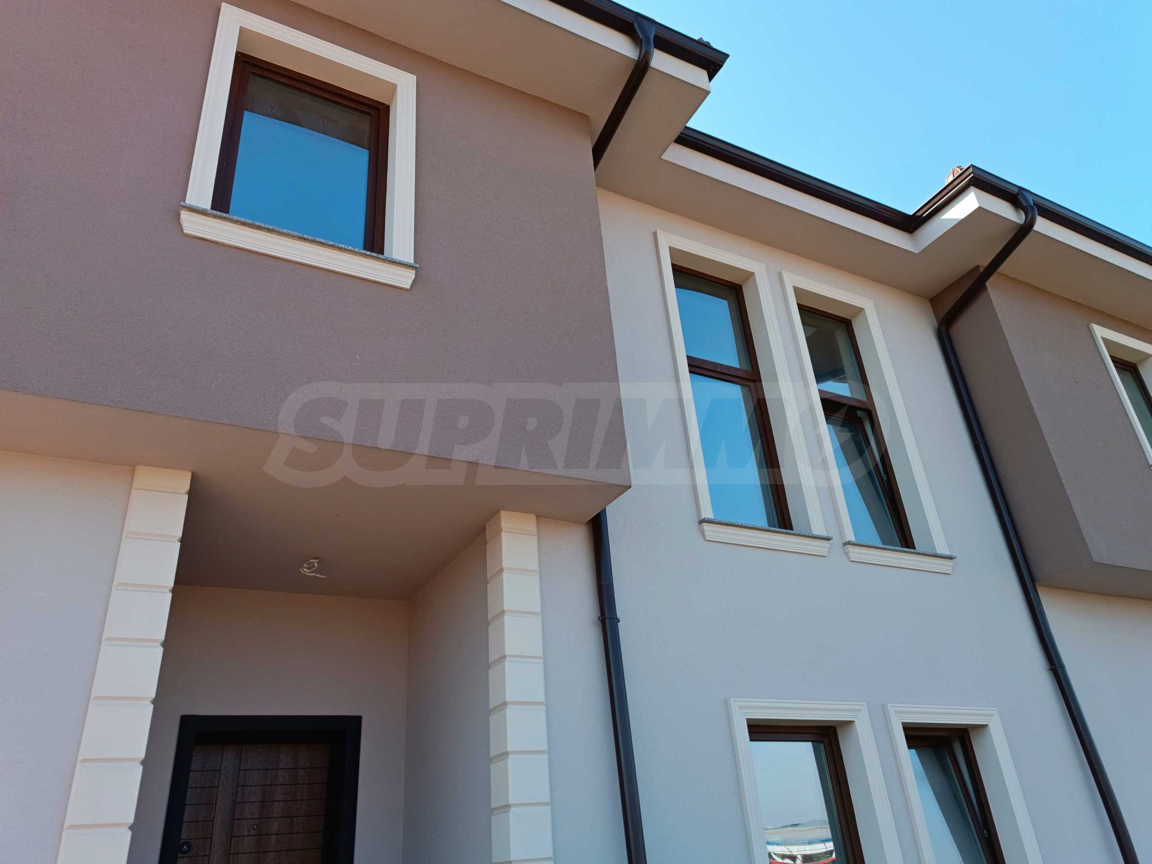 Къщата с РЗП от 159.24 кв.м разполага със самостоятелен двор от 79.87 кв.м и веранда от 10.22 кв.м.