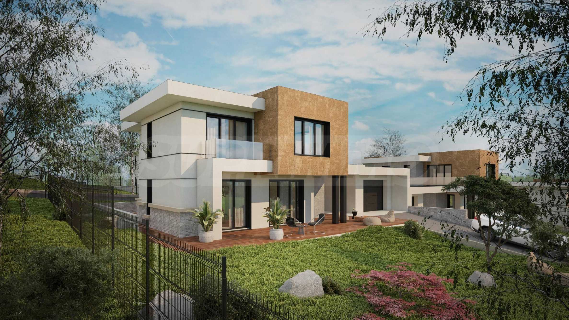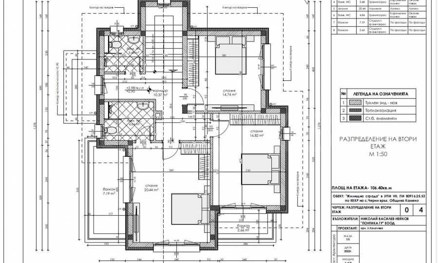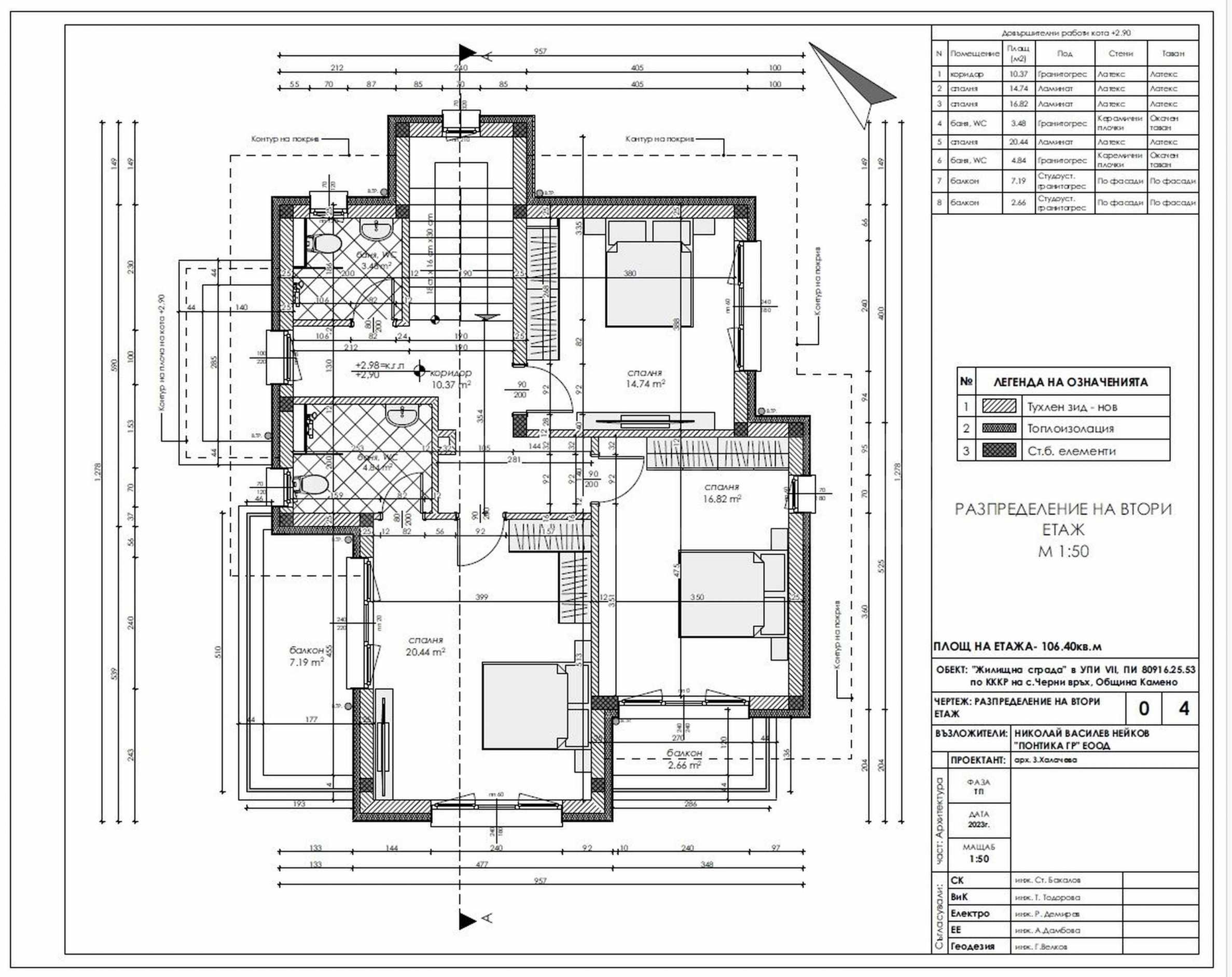 - Етаж 2: три спални, две бани с тоалет, три тераси.