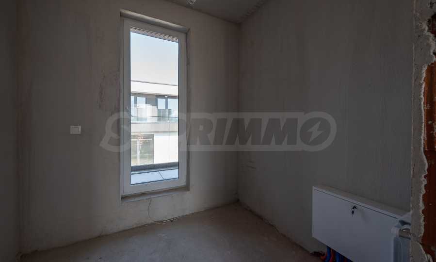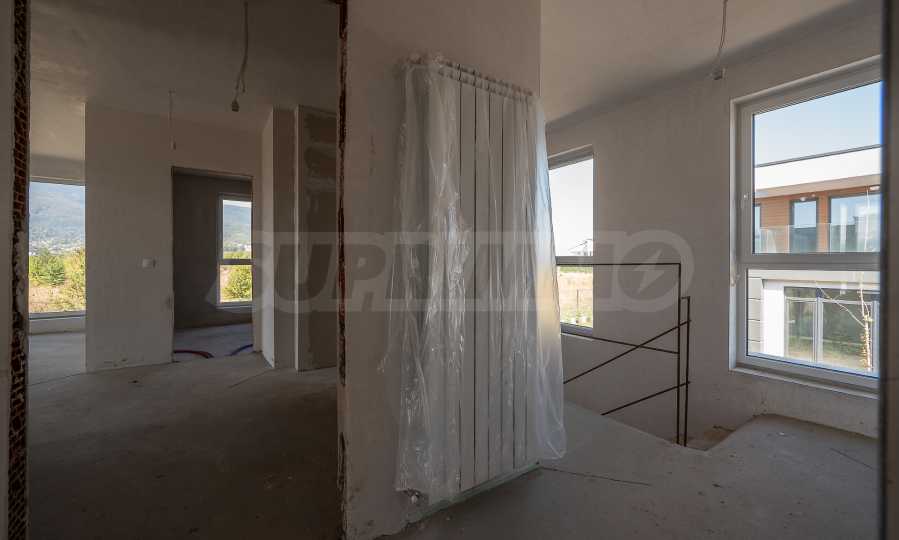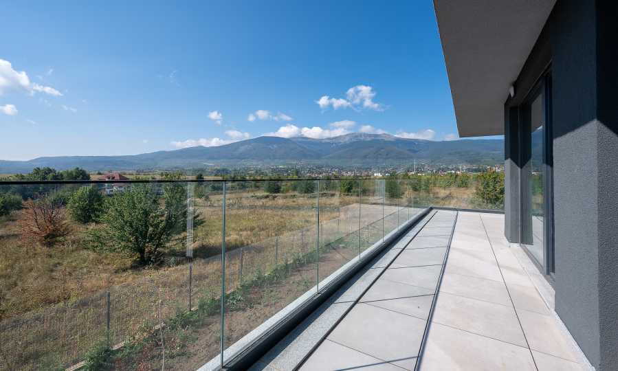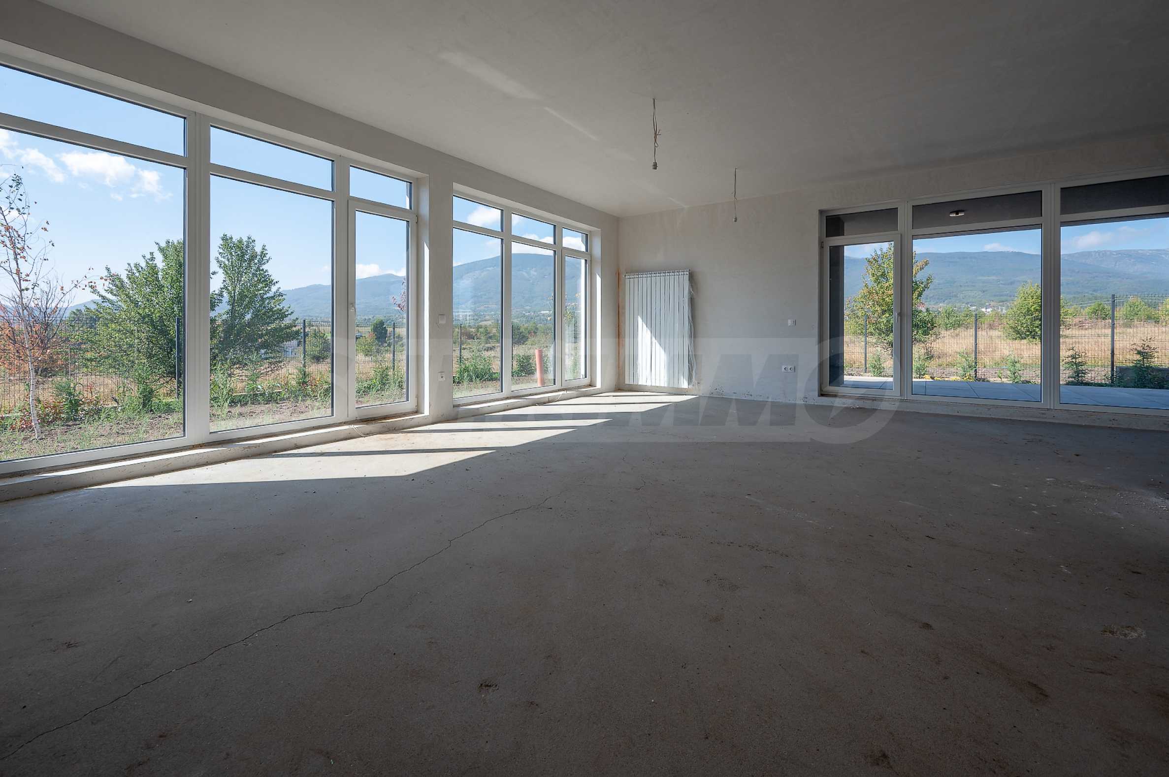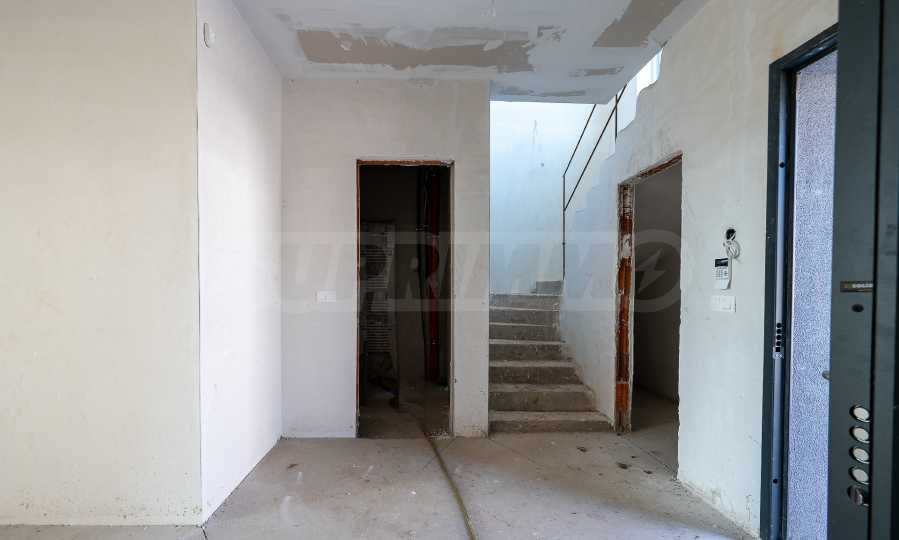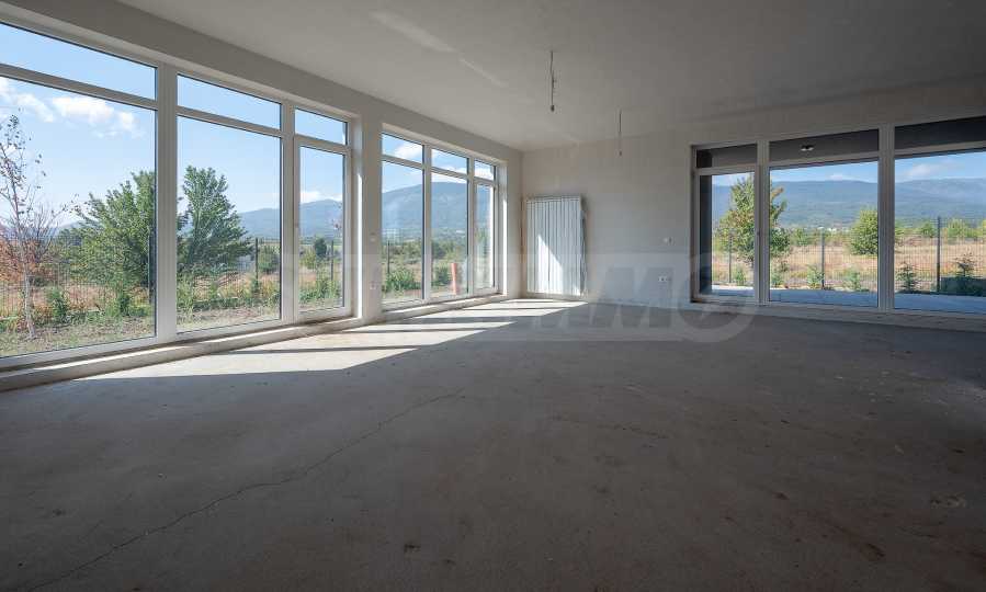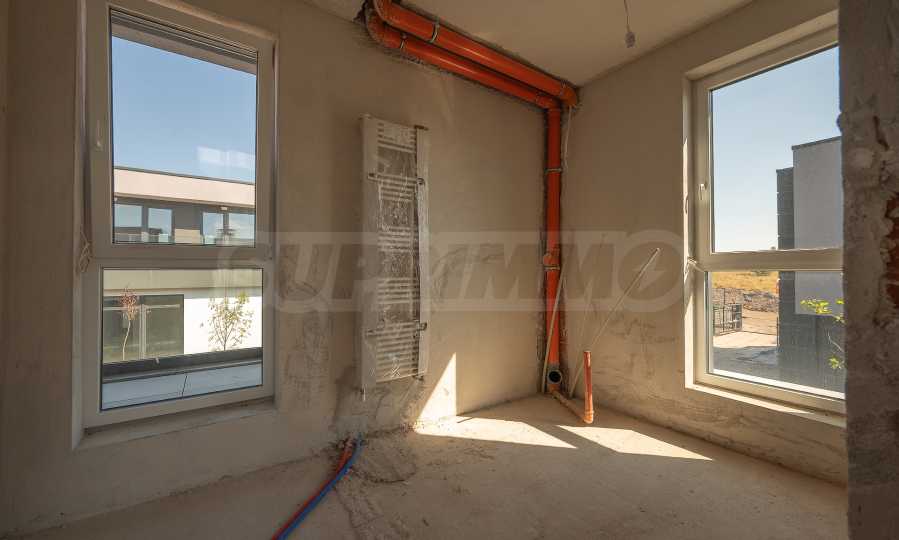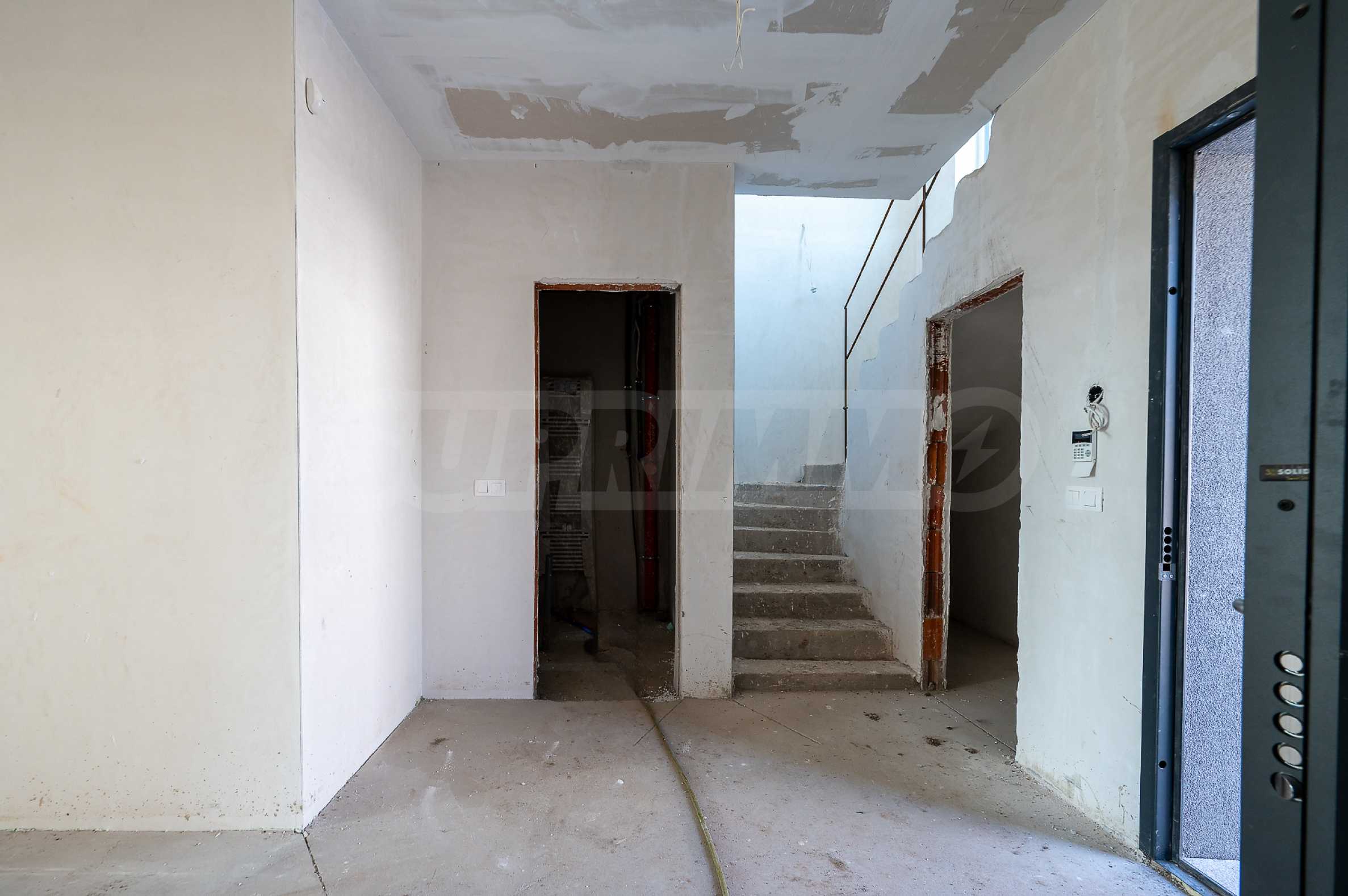 Пространствата са проектирани с високи тавани – 3 метра на първото ниво и 2,90 метра на второто, което осигурява изключителна светлина. Интериорът е завършен по БДС, с шпакловка на стените и замаска на подовете. Дограмата е висок клас PVC с височина от 2,40 до 2,70 метра, с троен стъклопакет и нискоемисионно стъкло за оптимална енергийна ефективност.