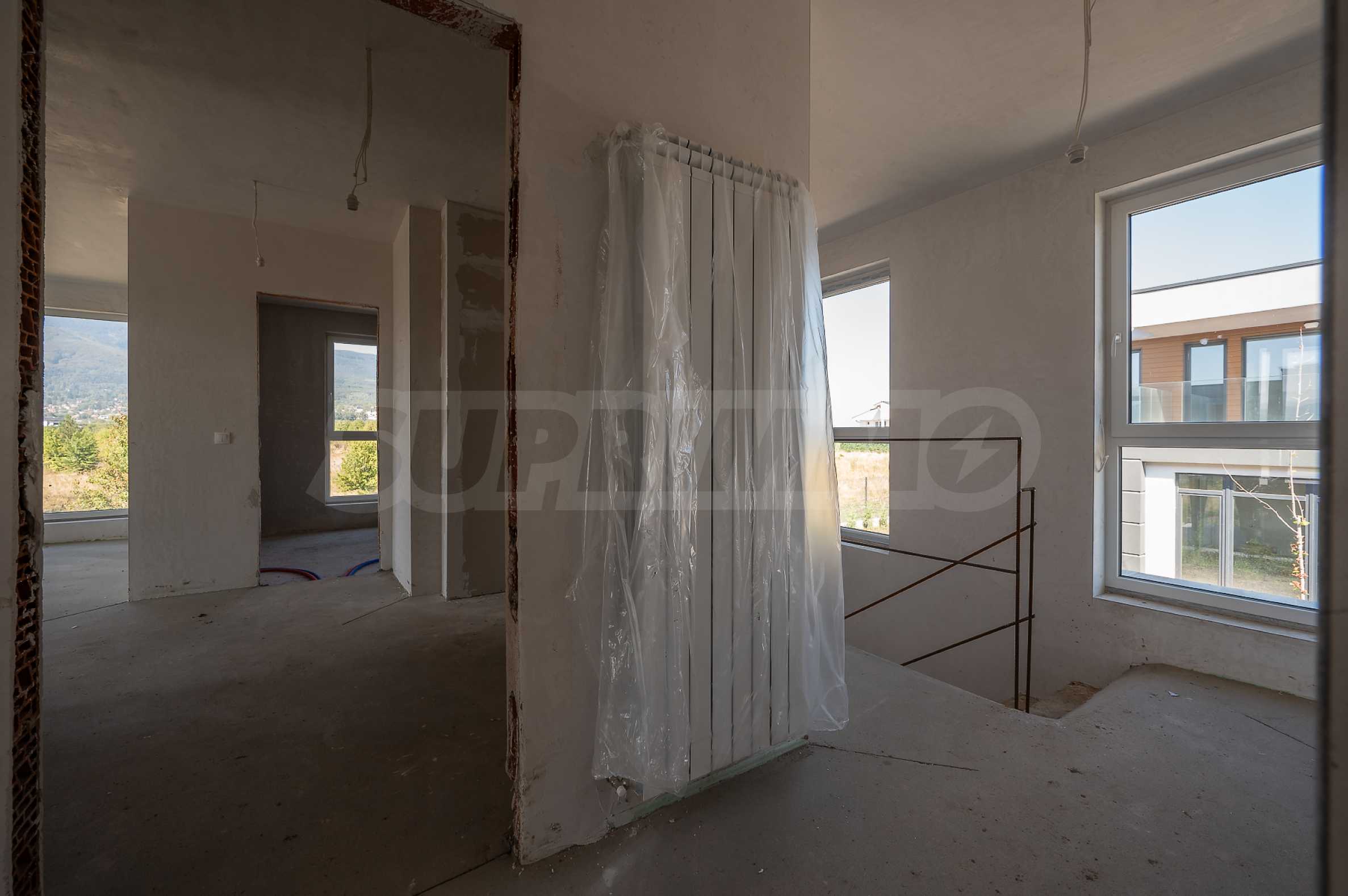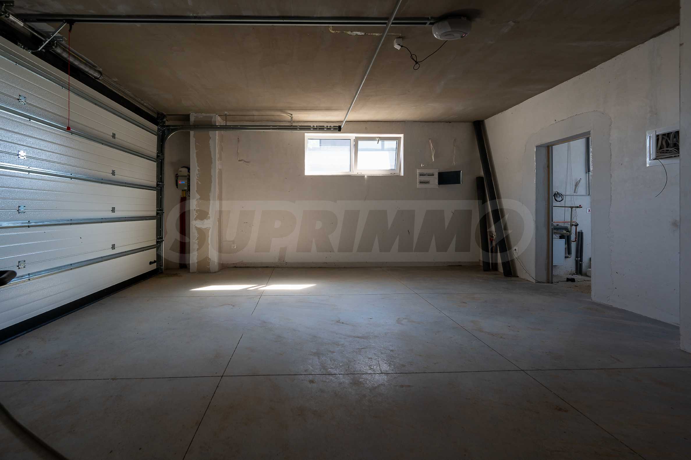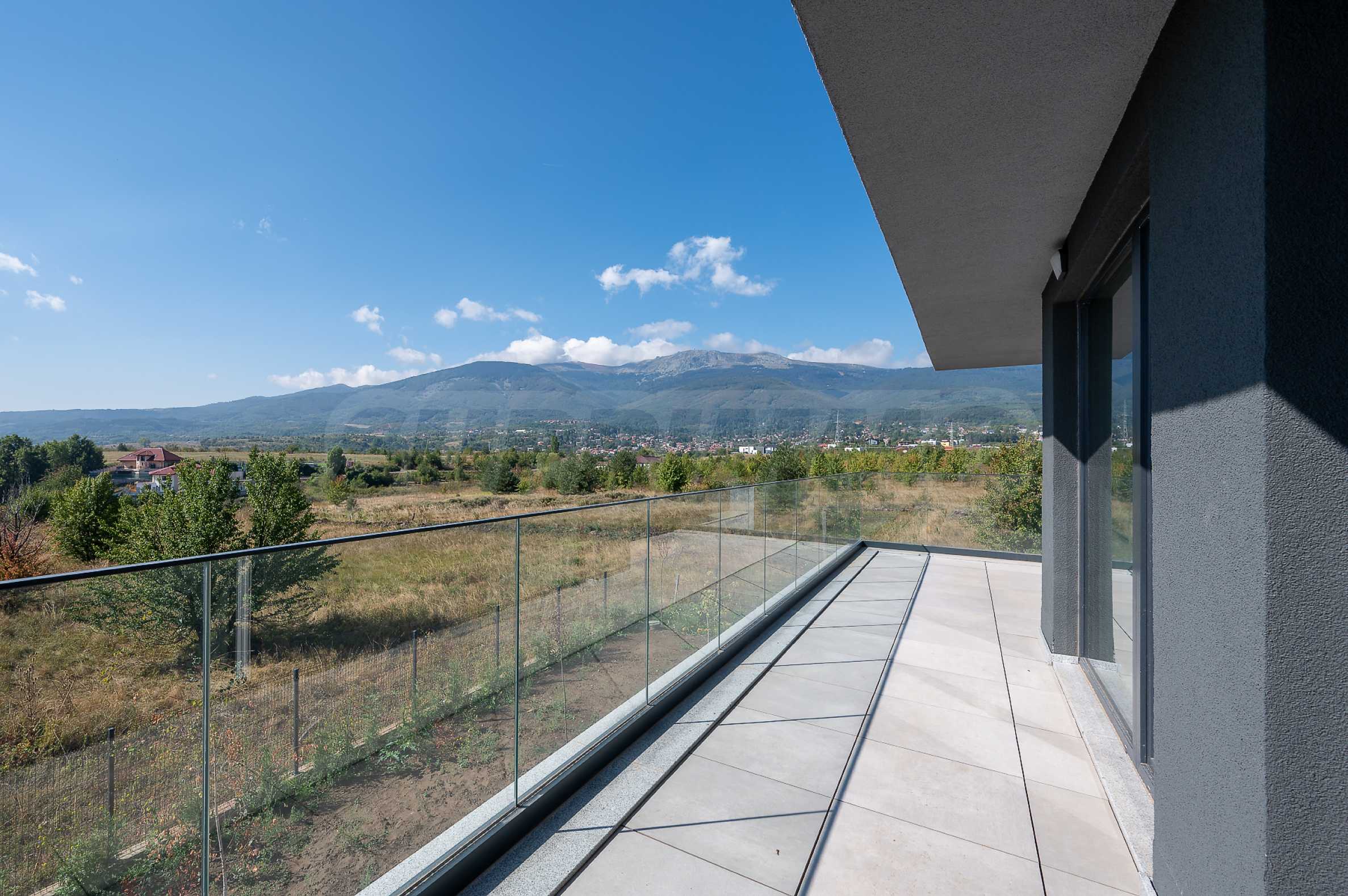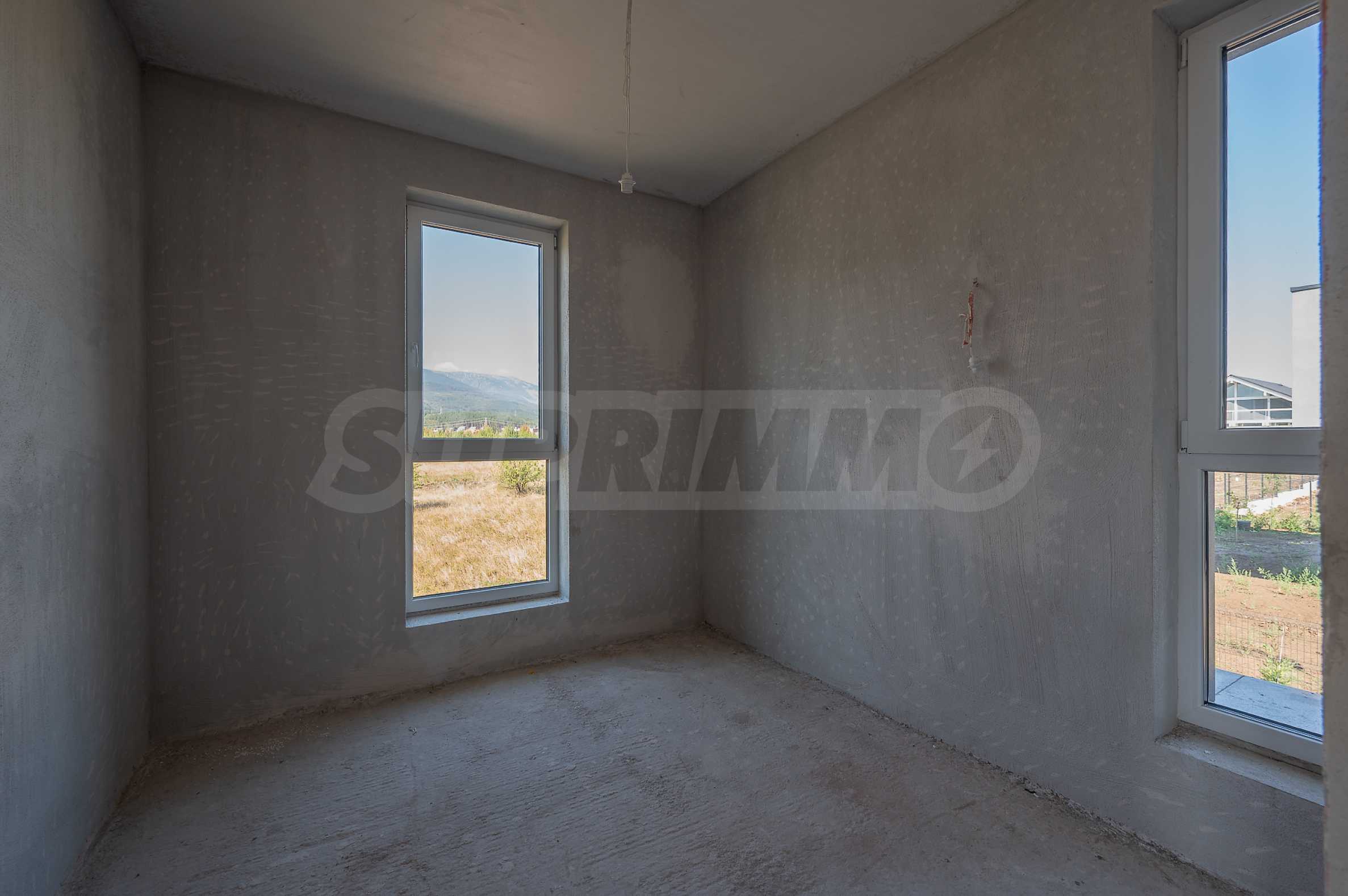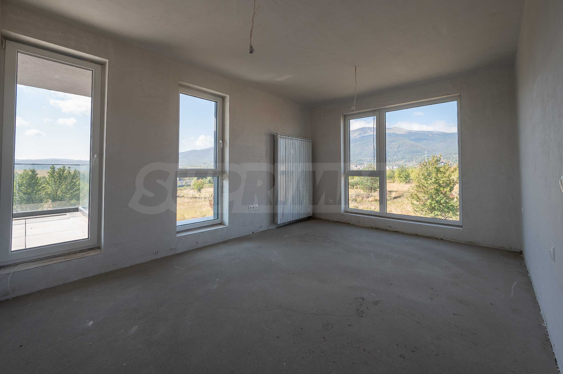 Пространствата са проектирани с високи тавани – 3 метра на първото ниво и 2,90 метра на второто, което осигурява изключителна светлина. Интериорът е завършен по БДС, с шпакловка на стените и замаска на подовете. Дограмата е висок клас PVC с височина от 2,40 до 2,70 метра, с троен стъклопакет и нискоемисионно стъкло за оптимална енергийна ефективност.