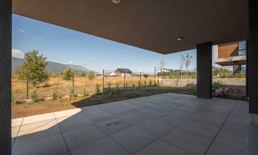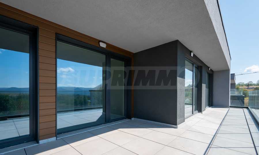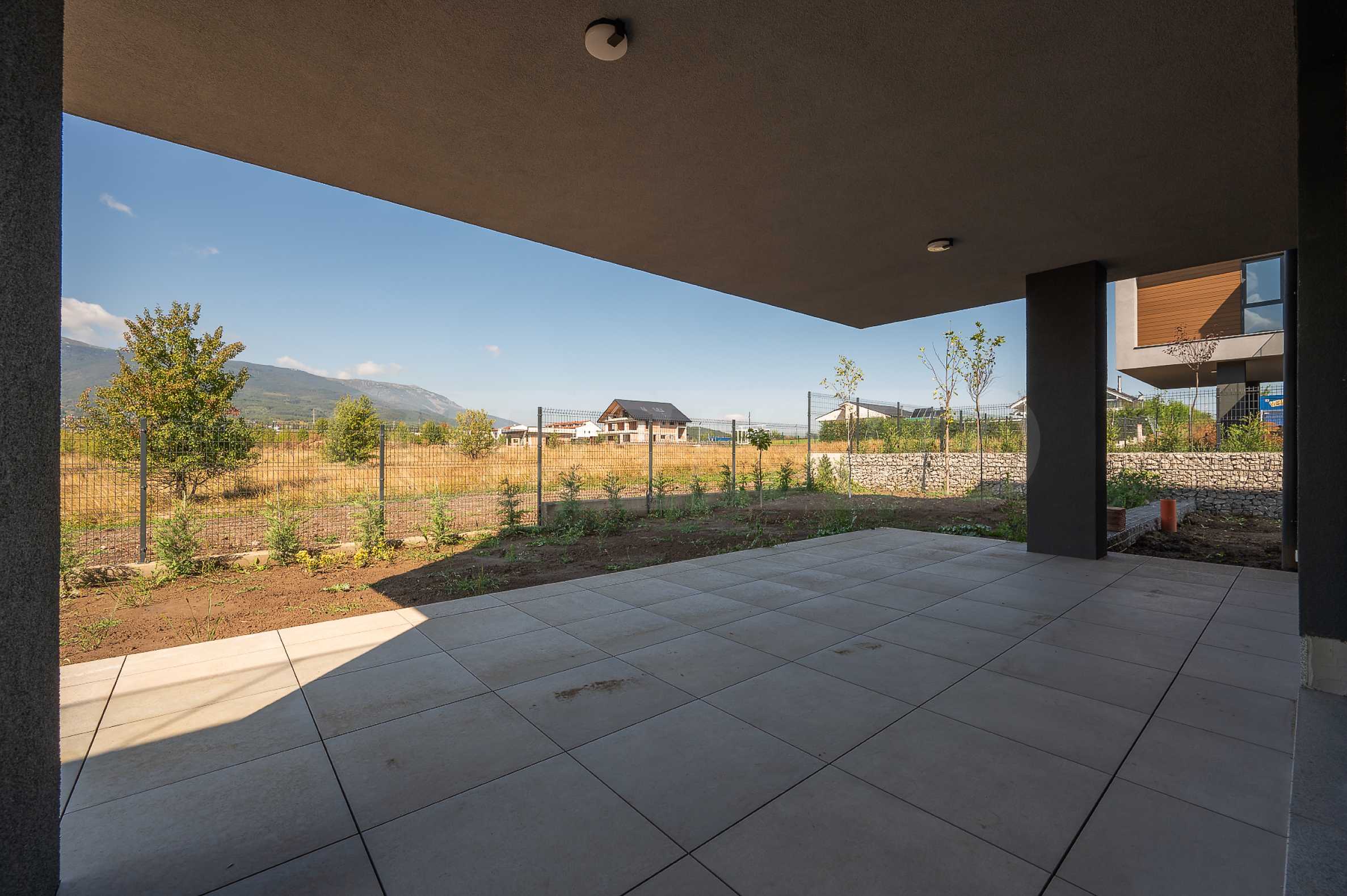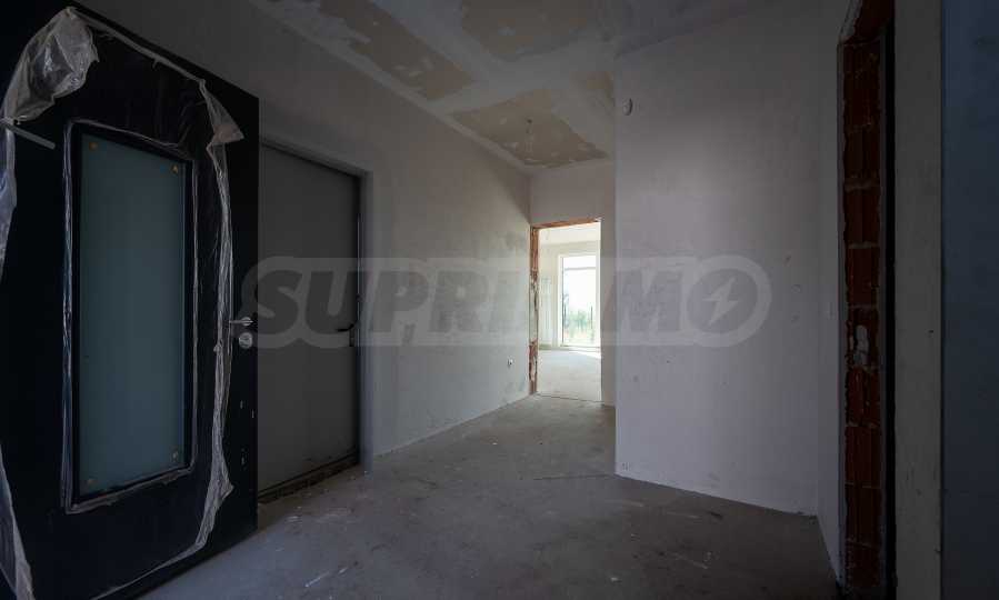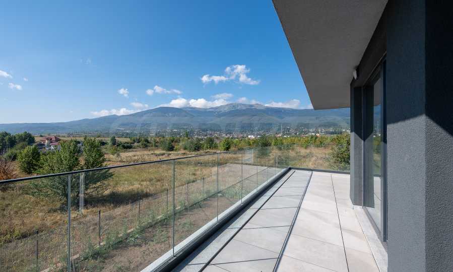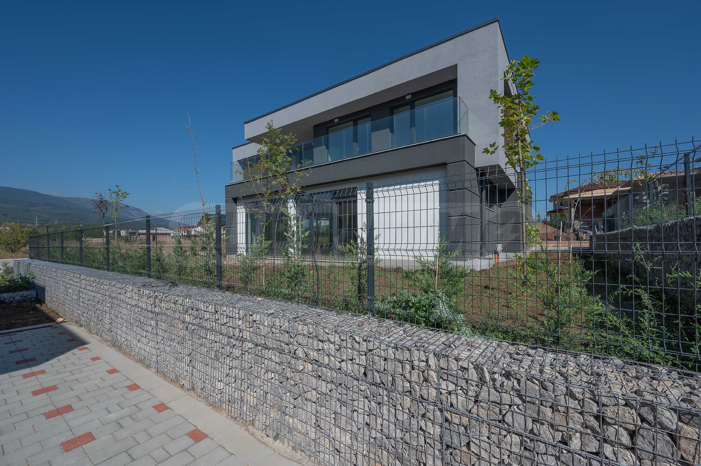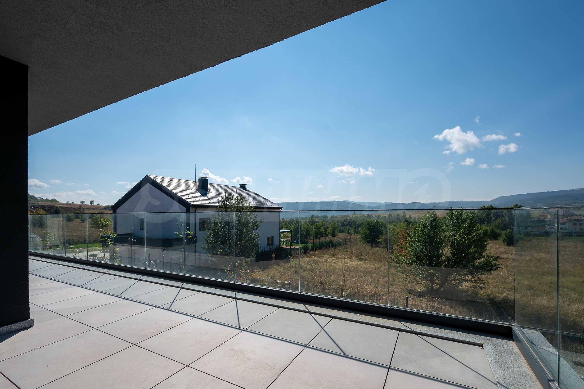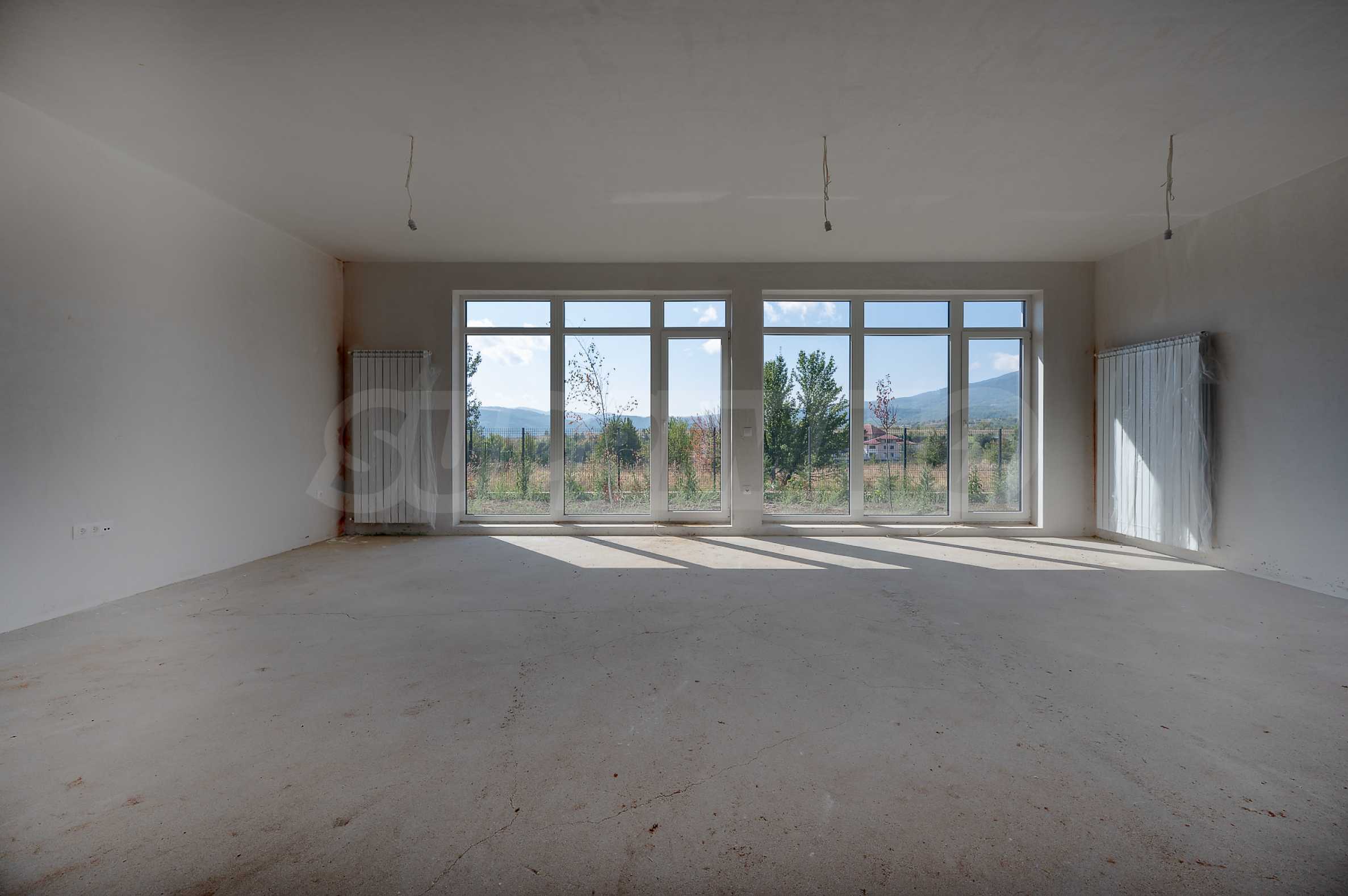 Пространствата са проектирани с високи тавани – 3 метра на първото ниво и 2,90 метра на второто, което осигурява изключителна светлина. Интериорът е завършен по БДС, с шпакловка на стените и замаска на подовете. Дограмата е висок клас PVC с височина от 2,40 до 2,70 метра, с троен стъклопакет и нискоемисионно стъкло за оптимална енергийна ефективност.