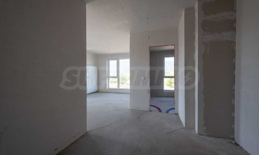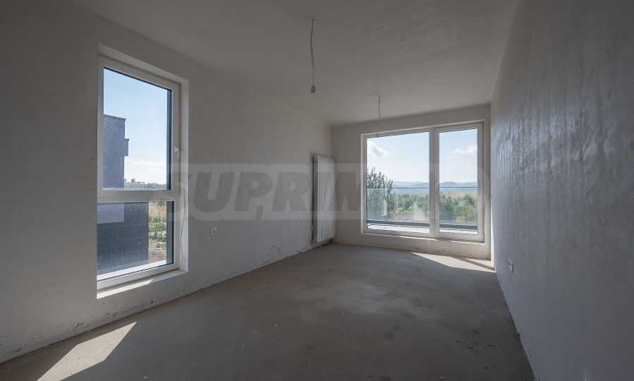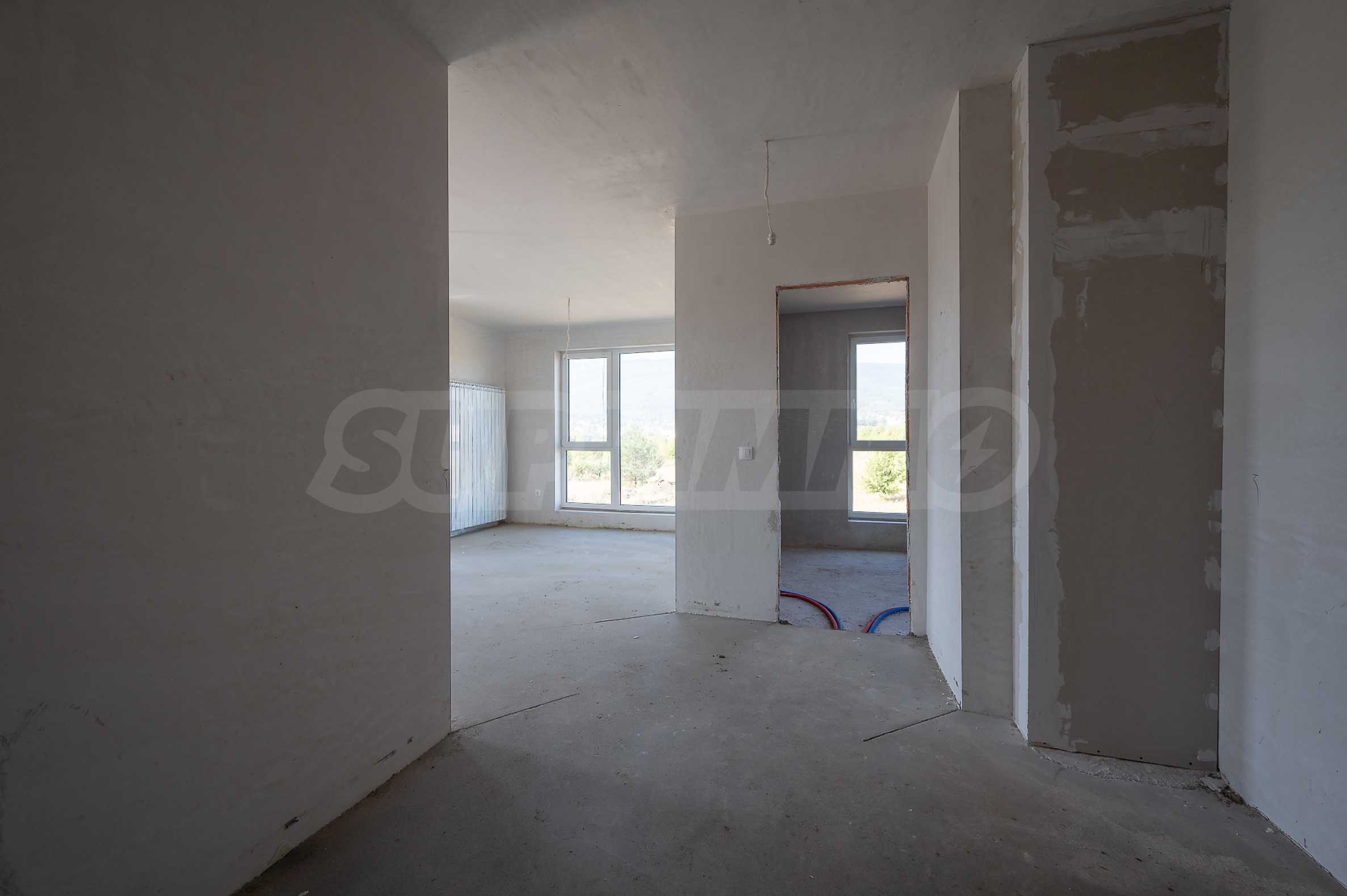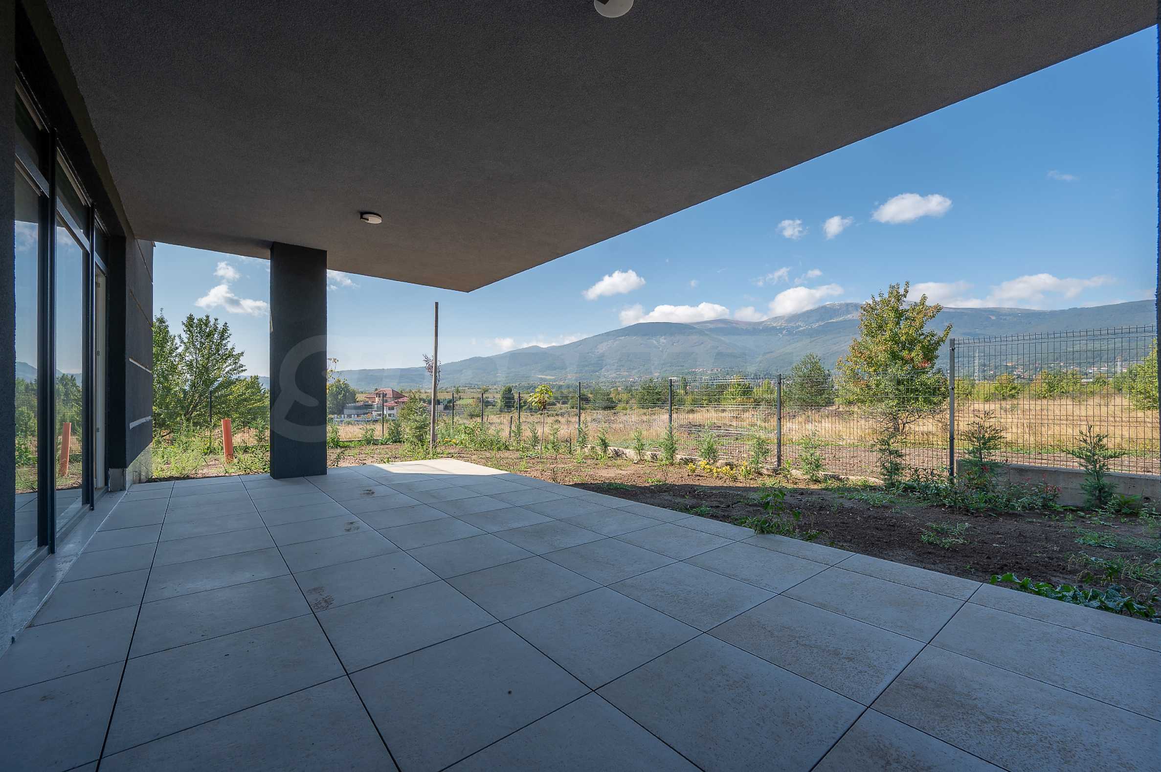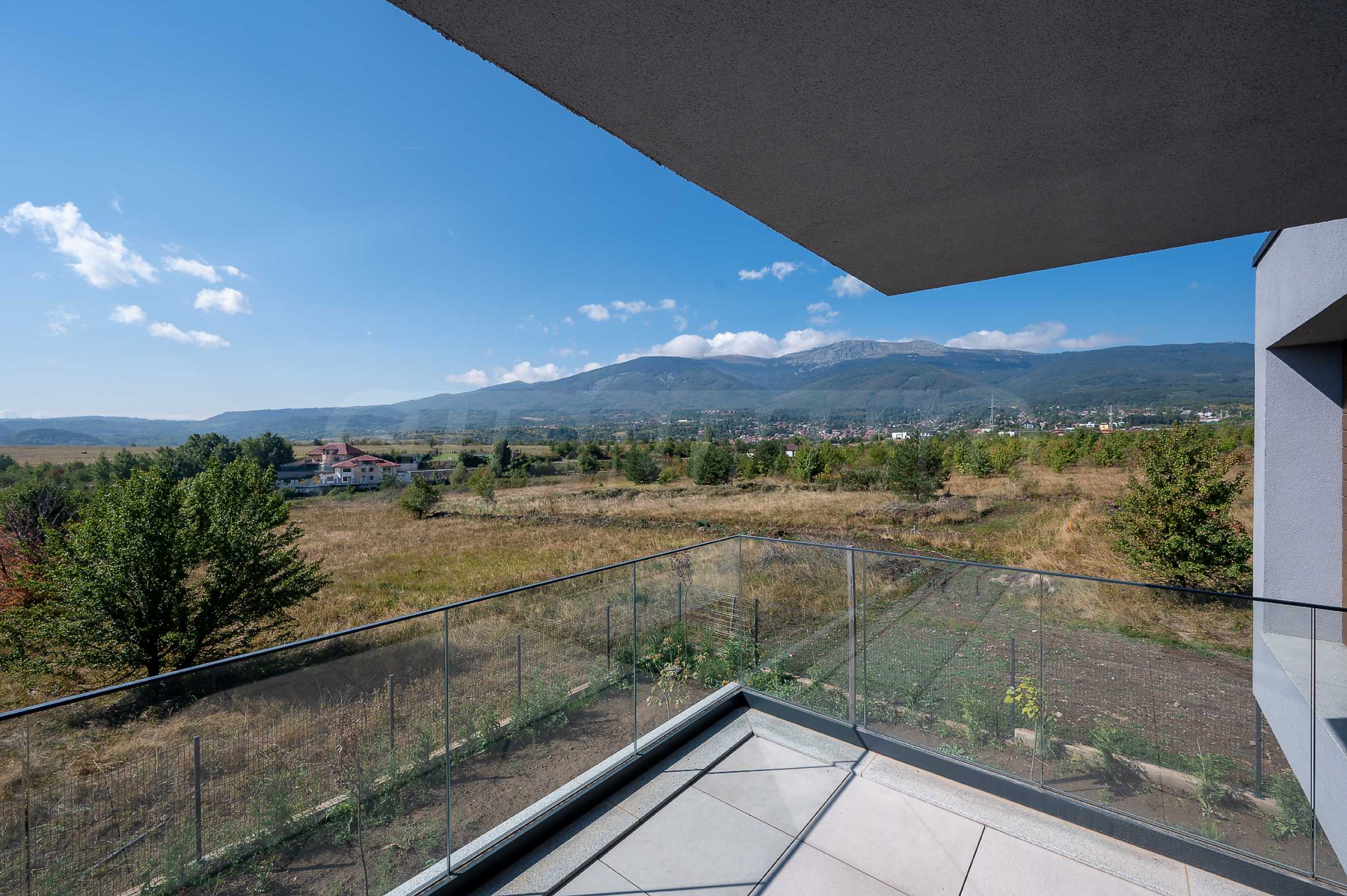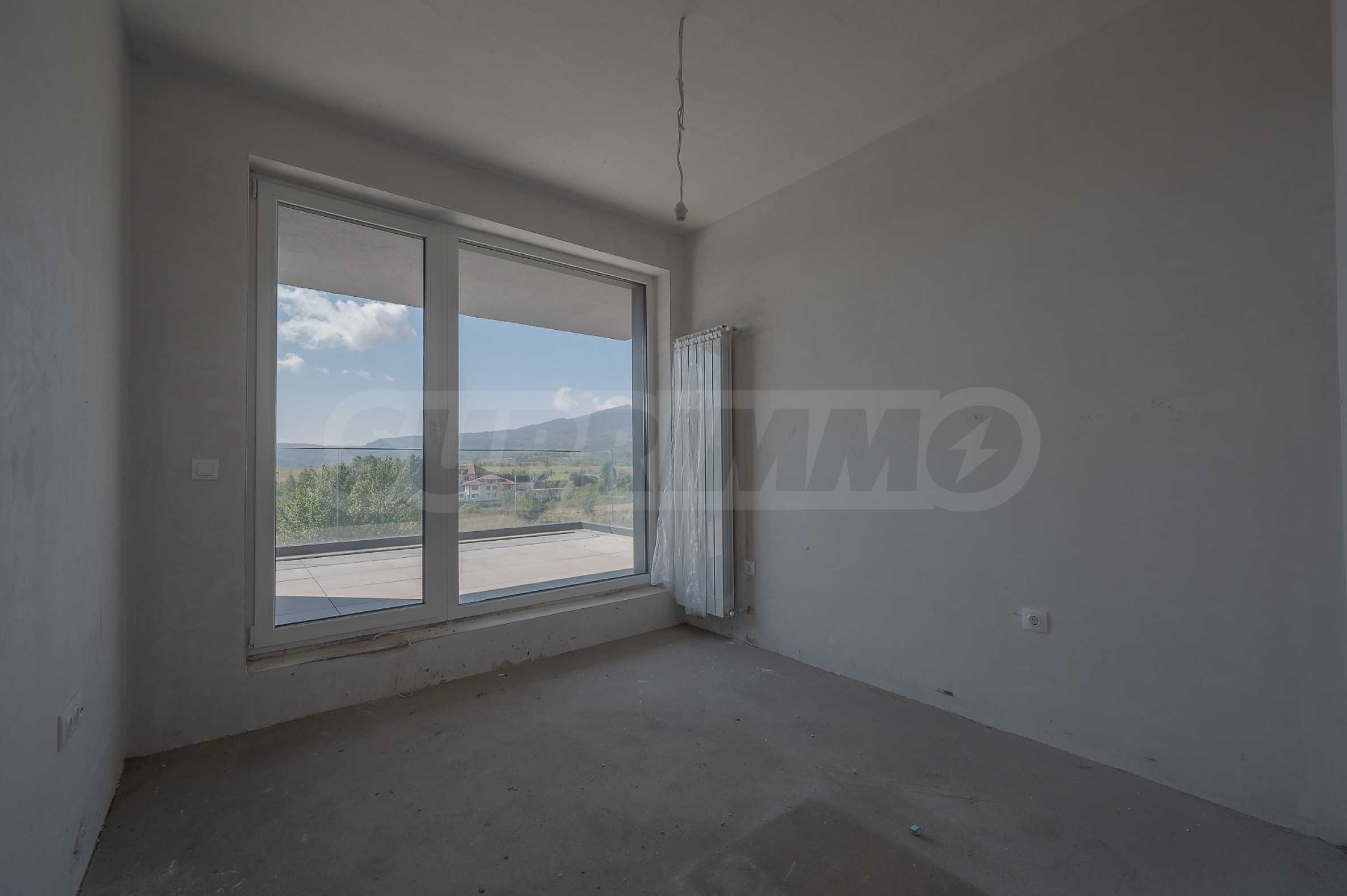 Пространствата са проектирани с високи тавани – 3 метра на първото ниво и 2,90 метра на второто, което осигурява изключителна светлина. Интериорът е завършен по БДС, с шпакловка на стените и замаска на подовете. Дограмата е висок клас PVC с височина от 2,40 до 2,70 метра, с троен стъклопакет и нискоемисионно стъкло за оптимална енергийна ефективност.