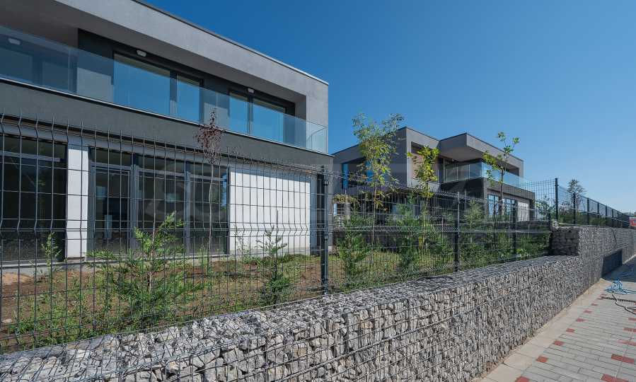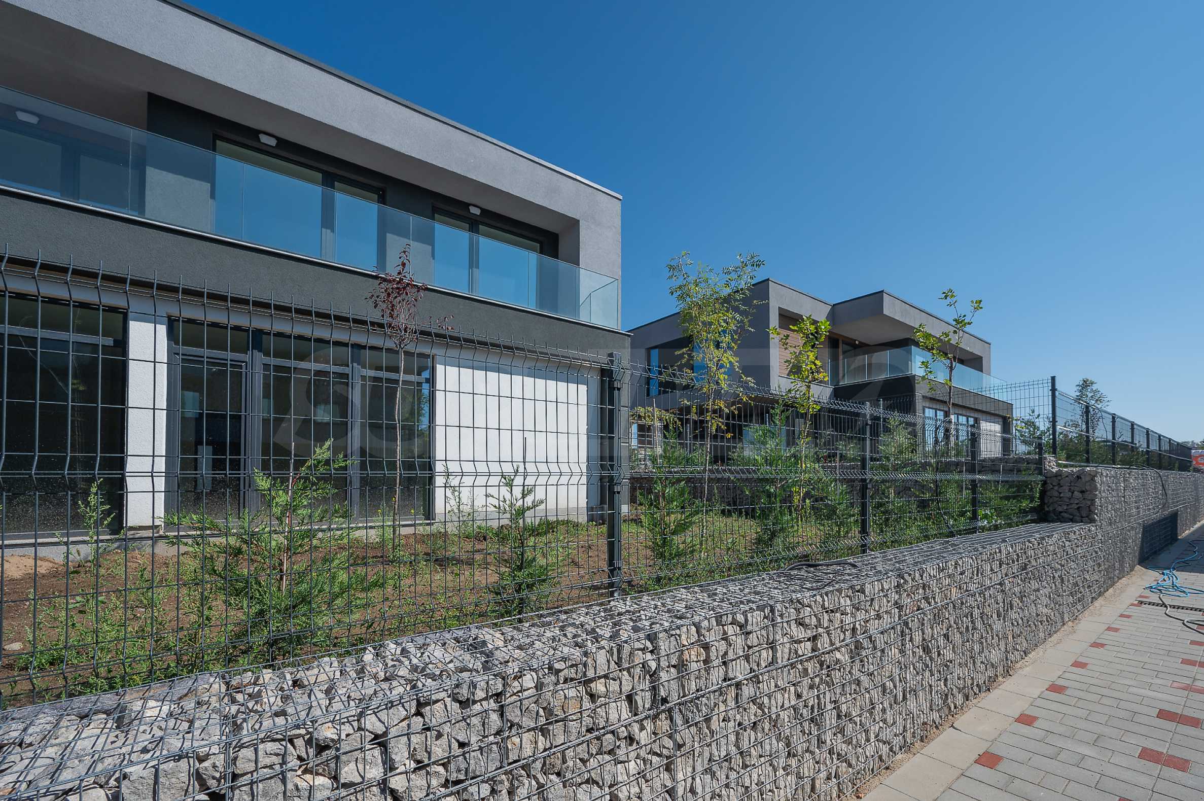 Къщите предлагат разгъната застроена площ от 328,87 кв.м, разпределена на два етажа: 152,66 кв.м на първия и 176,21 кв.м на втория. Всяка къща разполага със собствен двор от 340кв.м, обособен с растителност и камъни за допълнителна уединеност.