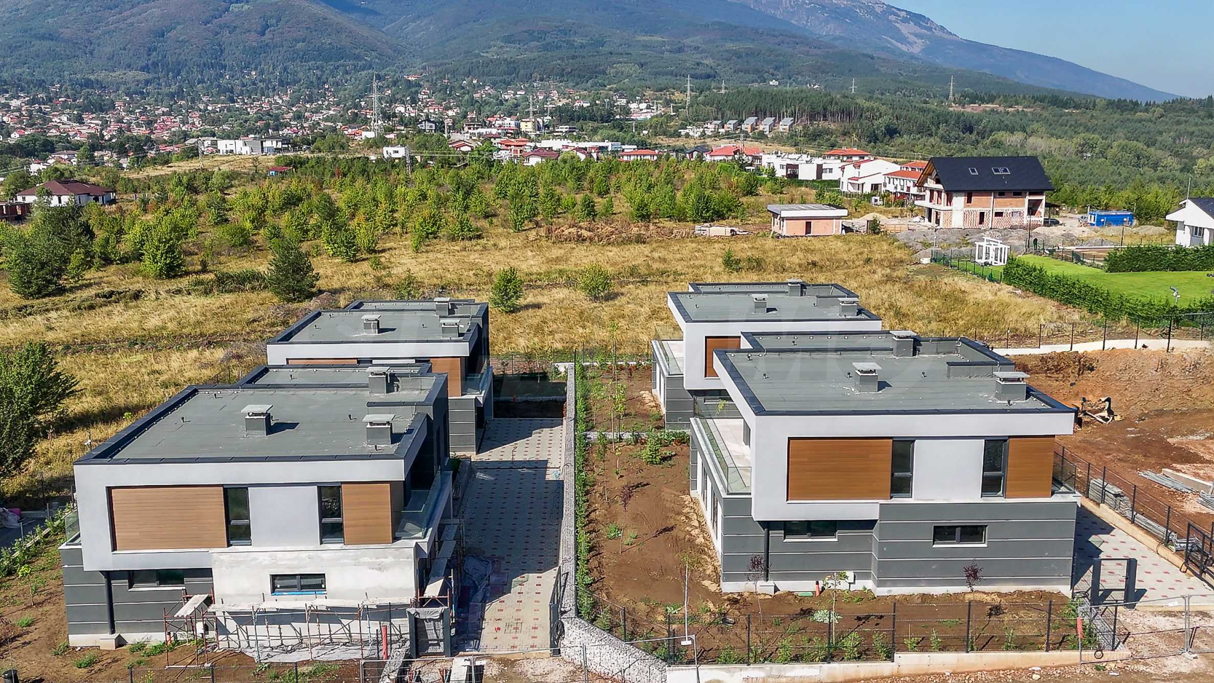 Къщите разполагат с външна вентилируема топлоизолация на откритите тераси и покрива, а той е завършен с армиран бетон, който осигурява необходимия наклон за отводняване чрез външни водосточни тръби.