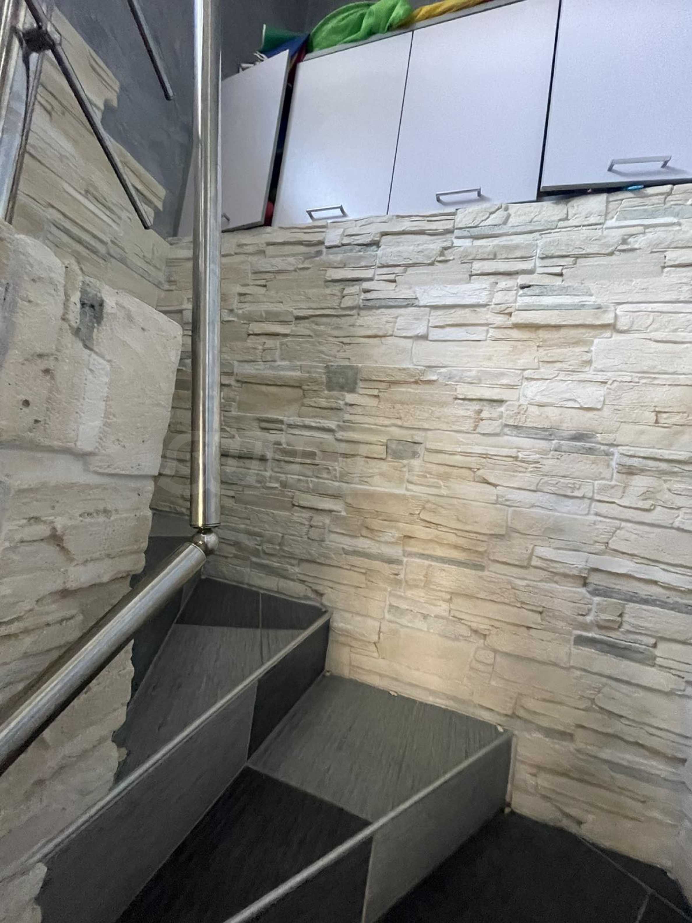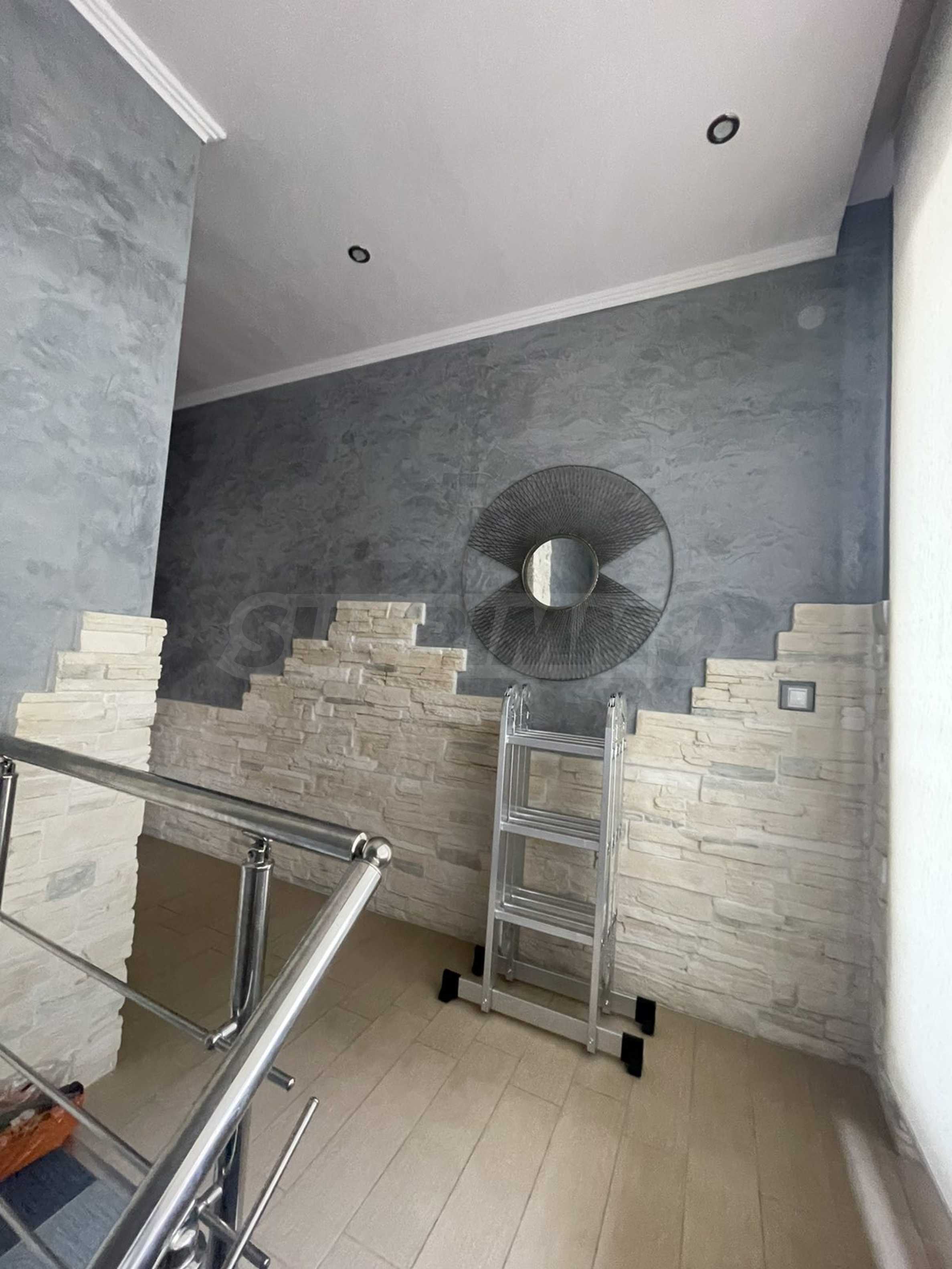 - втори етаж - голям коридор, който води до две големи спални и разбира се, частично остъклена тераса, която е с три входа, от коридора и двете спални. На втория етаж се намира модерна баня с тоалетна.