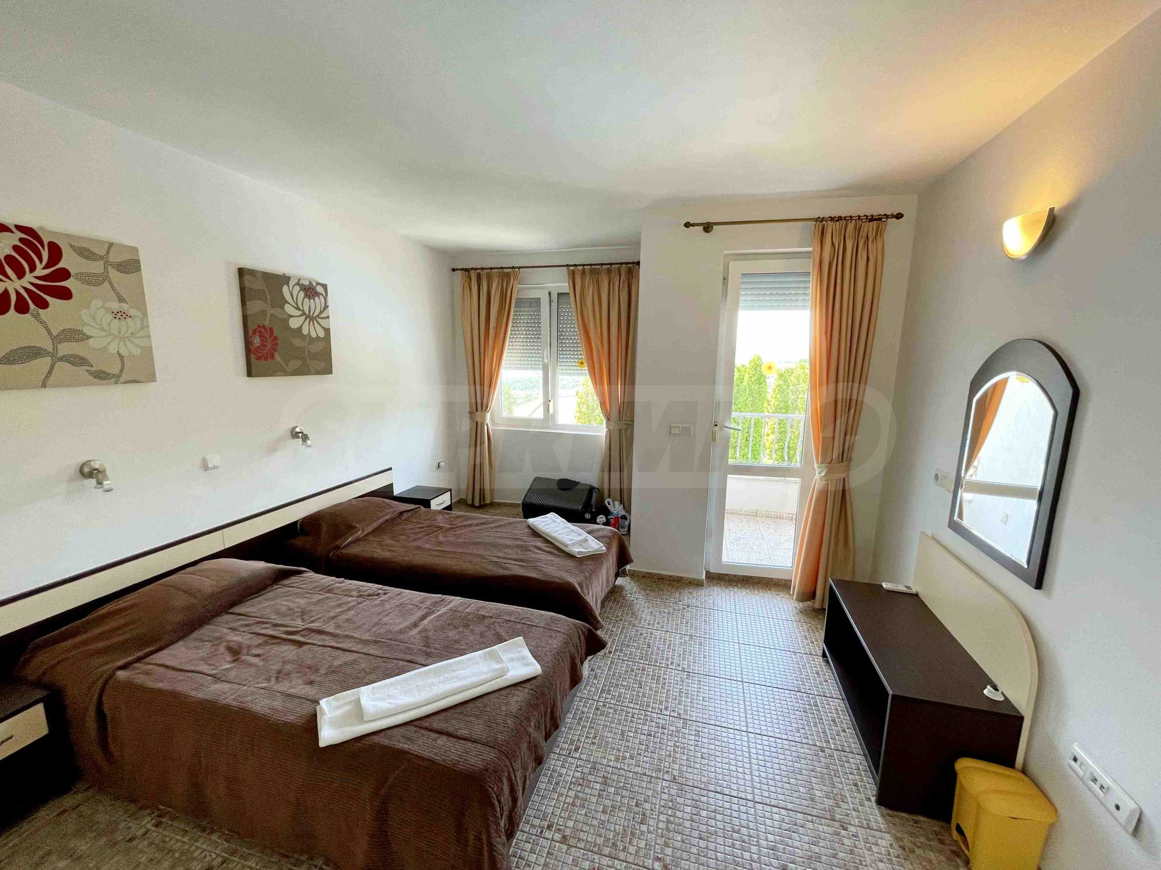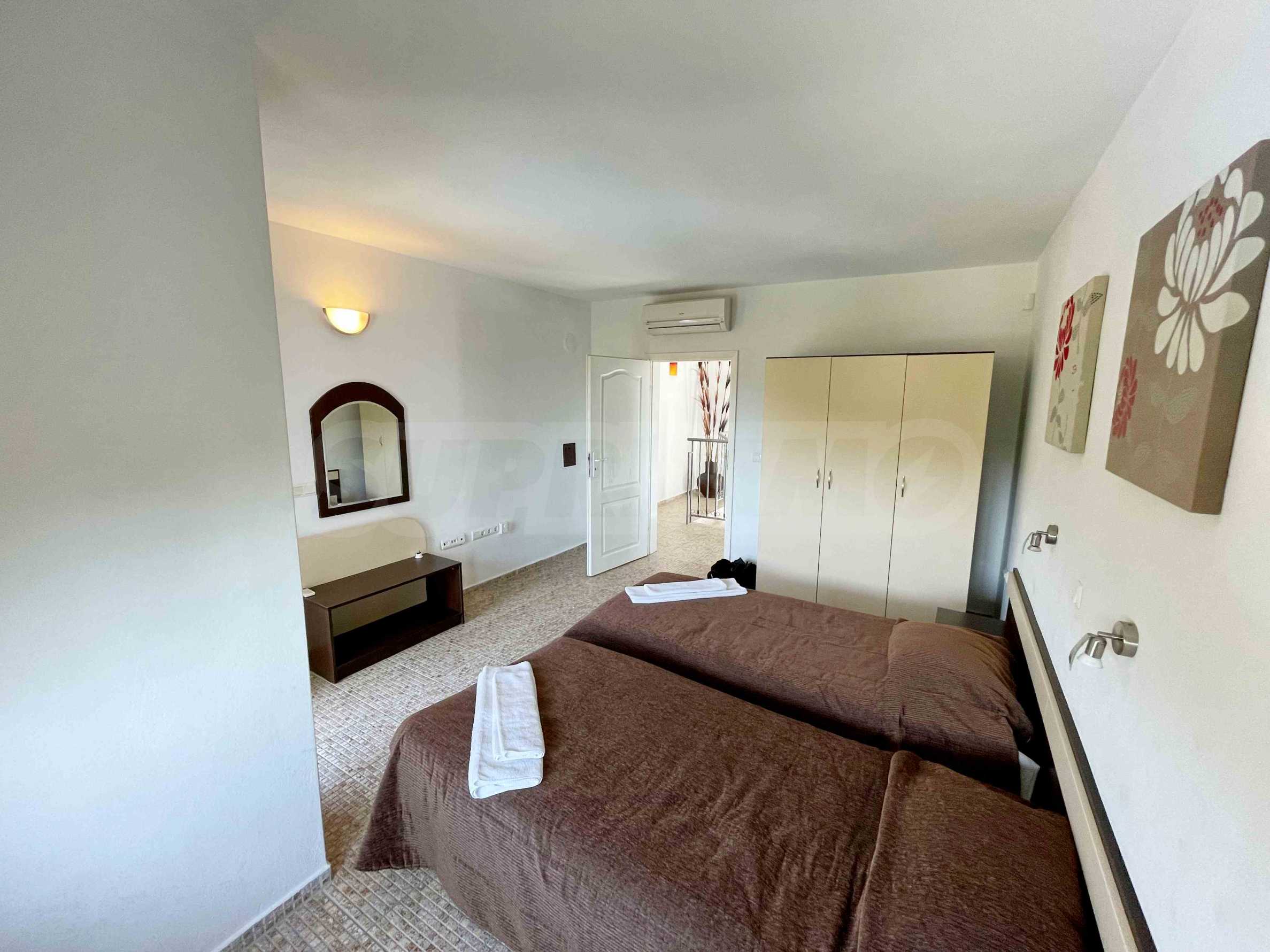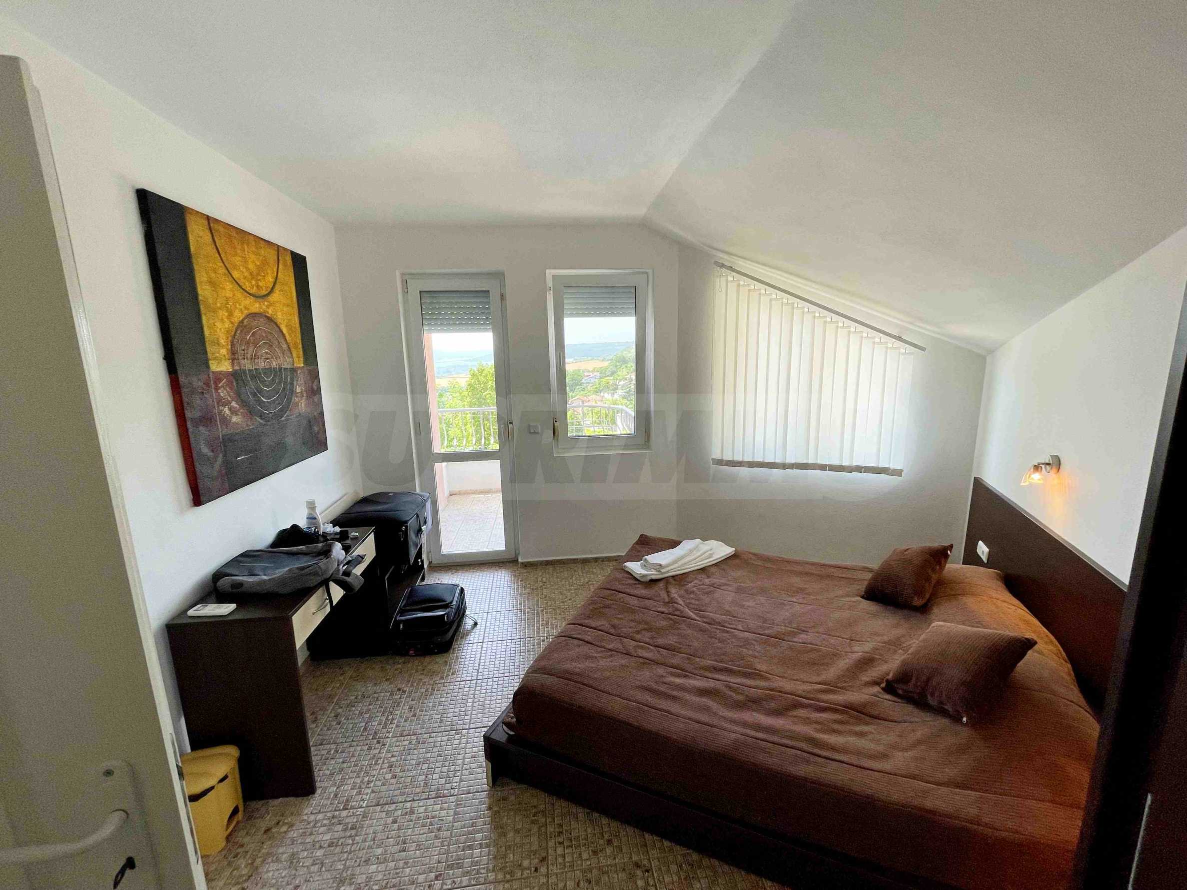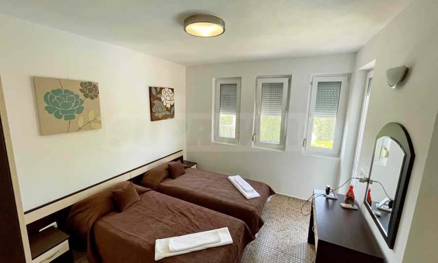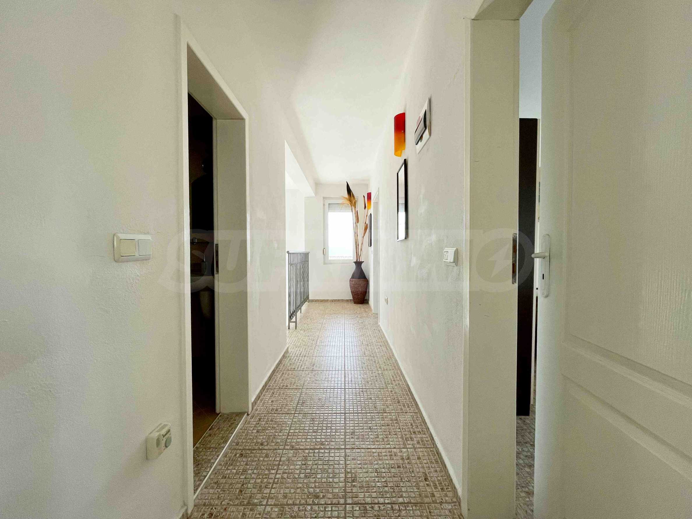 - втори етаж - коридор, три спални и баня с тоалетна с естествена вентилация. Мастър-спалнята разполага с индивидуална баня. Дневната и двете спални са обърнати на юг, което гарантира отлични ослънчаване и гледка към морето.