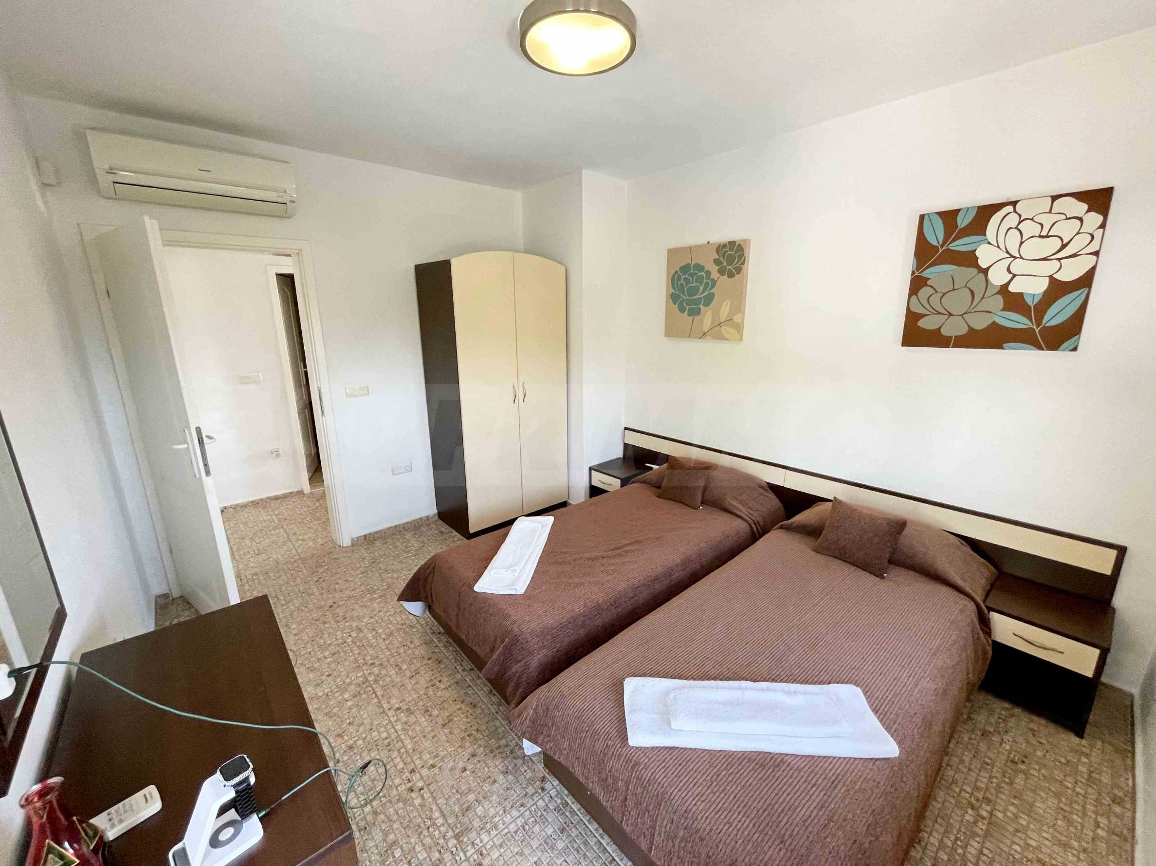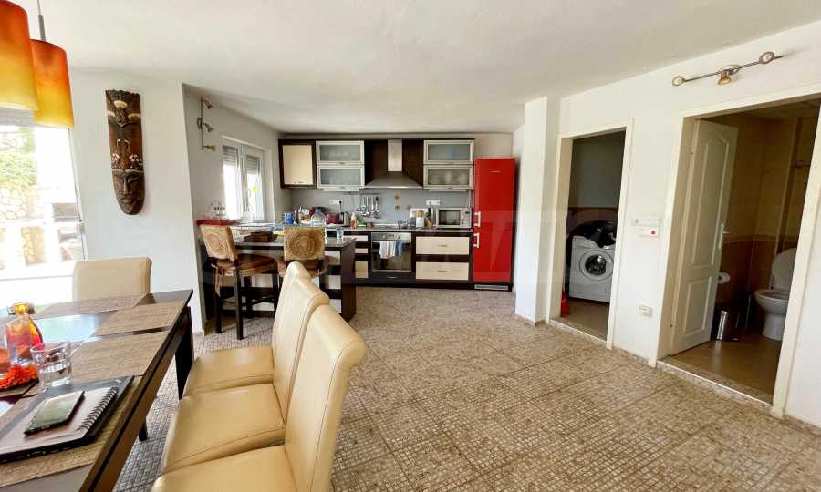 Къщата е изцяло обзаведена и оборудвана с всичко необходимо за живеене като мебели и ел. уреди - телевизор, фурна с готварски плот, аспиратор, хладилник, пералня и микровълнова печка. Всяка стая е климатизирана.