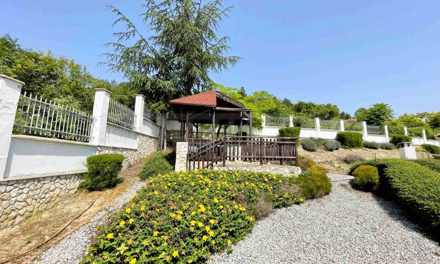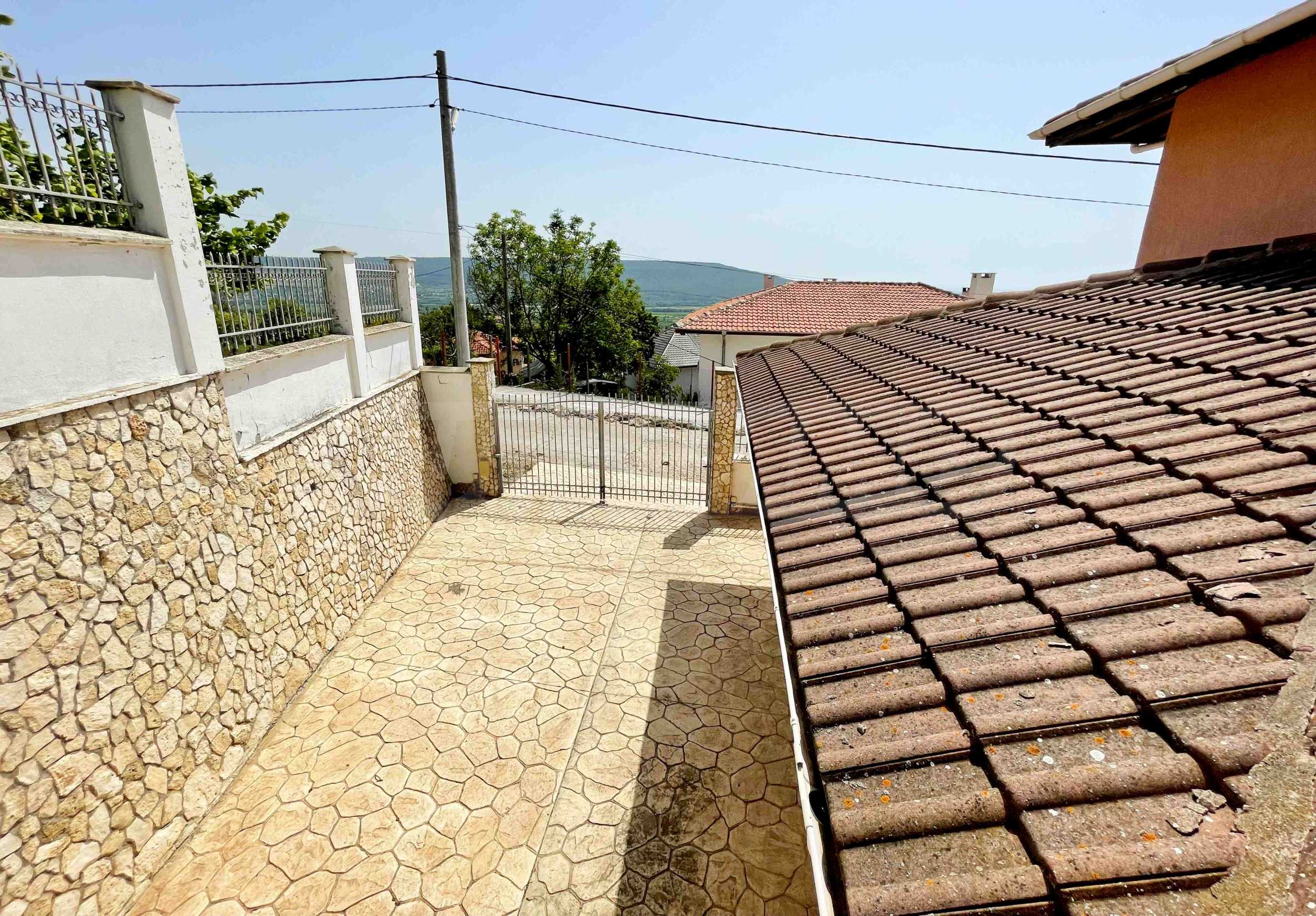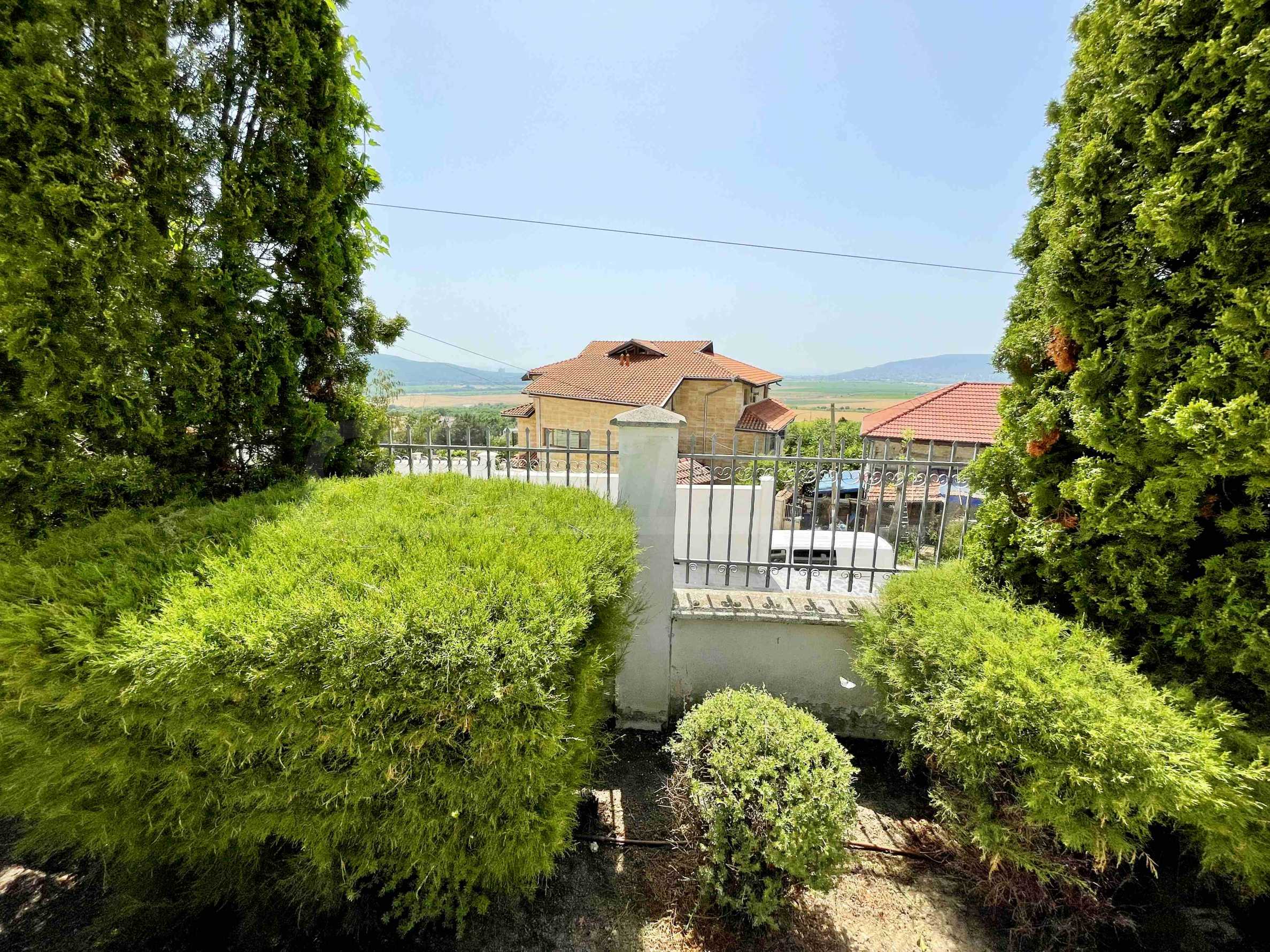 Имотът е построен през 2007 г., на два етажа, с РЗП от 183 кв.м и двор от 700 кв.м. Разполага с подход за автомобили към площадка, на която могат да паркират две коли.