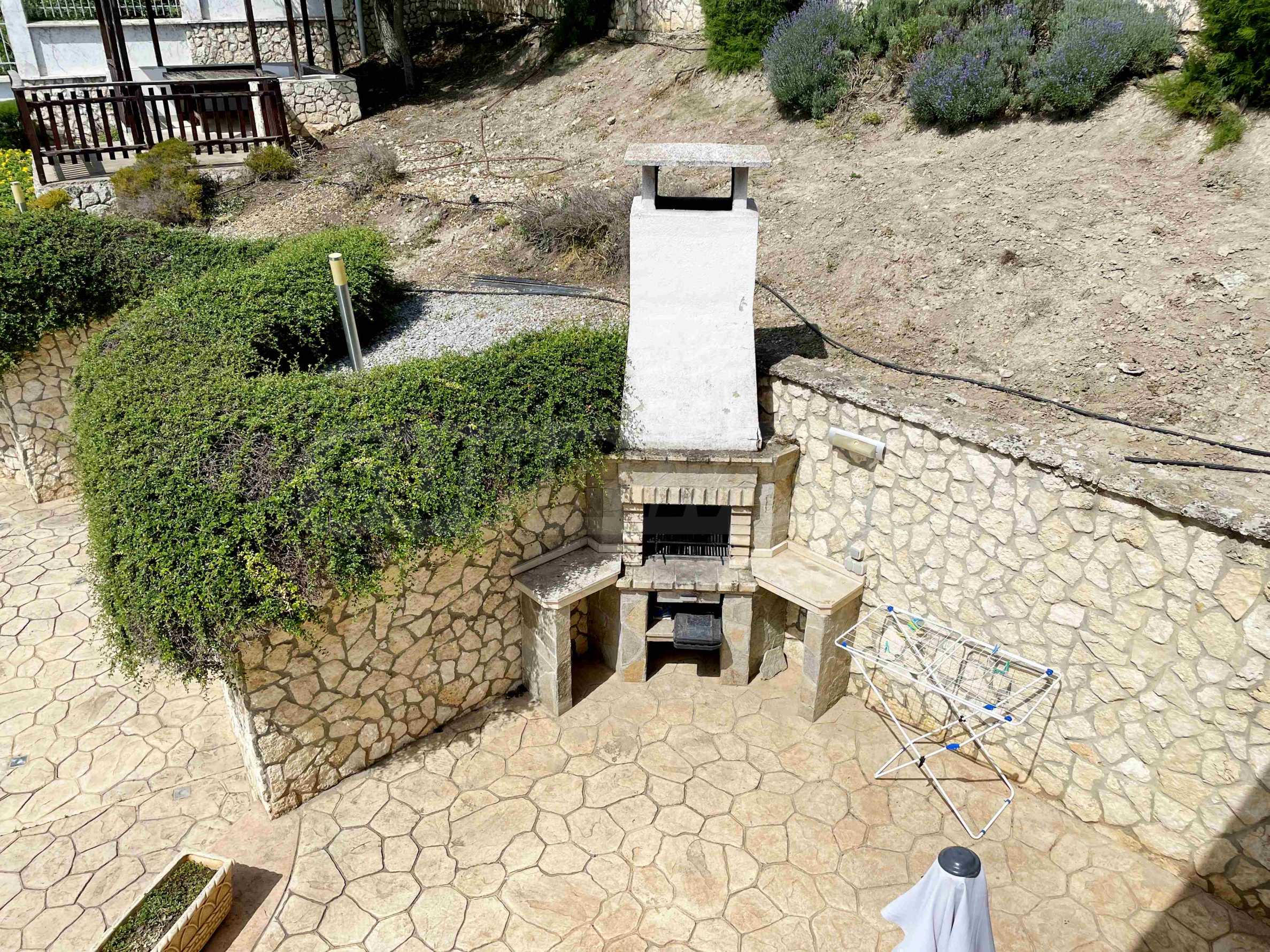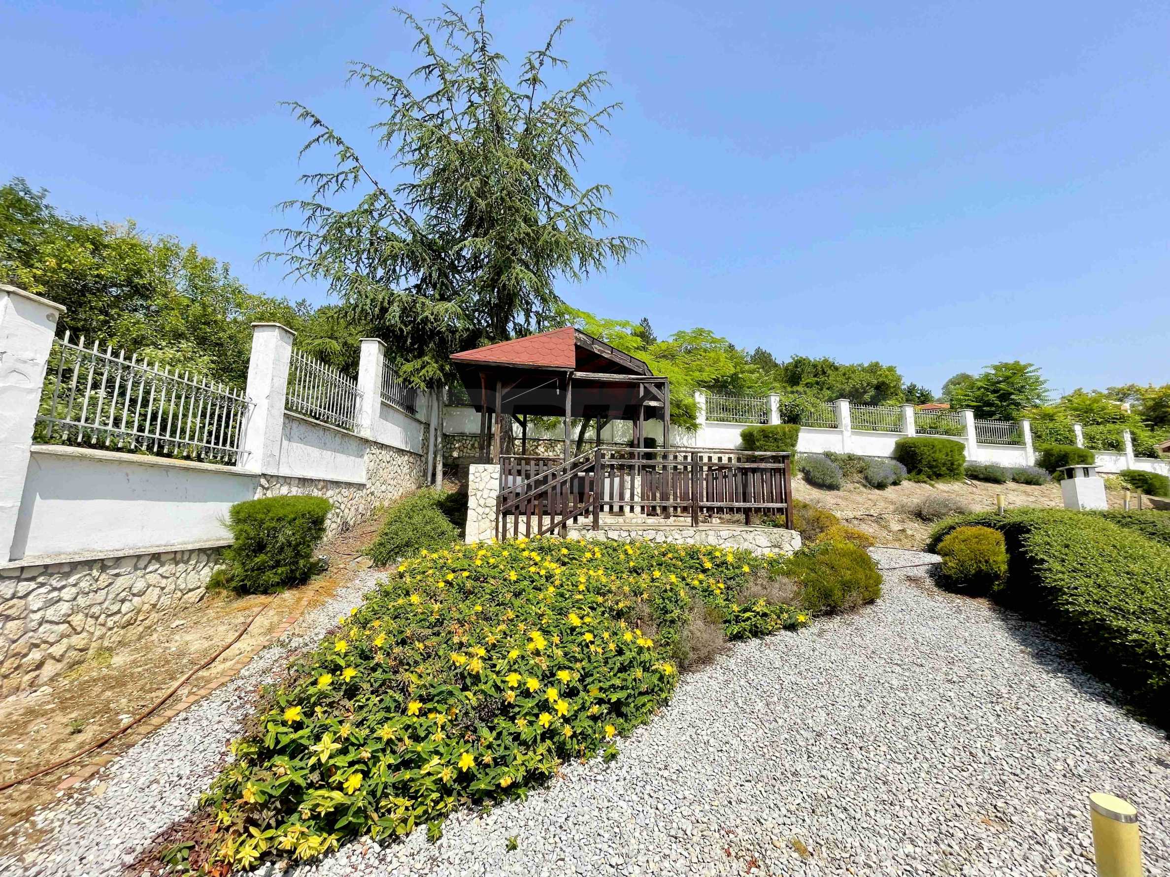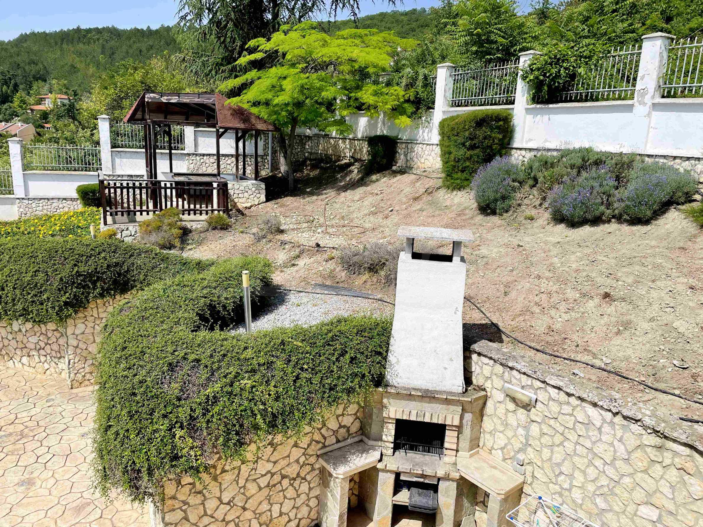 Имотът е построен през 2007 г., на два етажа, с РЗП от 183 кв.м и двор от 700 кв.м. Разполага с подход за автомобили към площадка, на която могат да паркират две коли.
