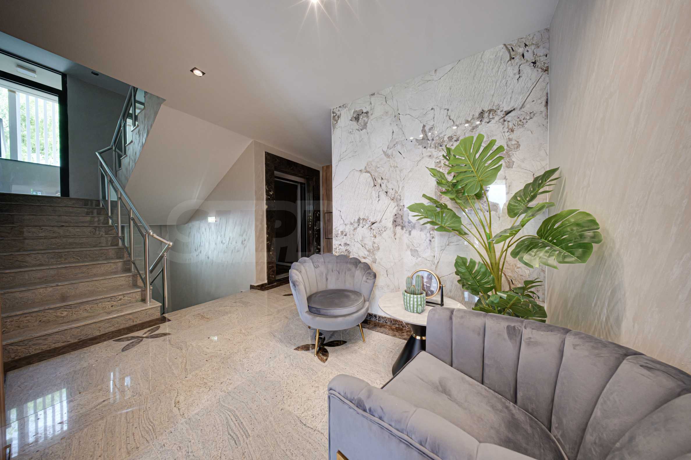 - фоайе и общи части по специален интериорен проект с изцяло каменно вътрешно оформление - мрамор и оникс;
